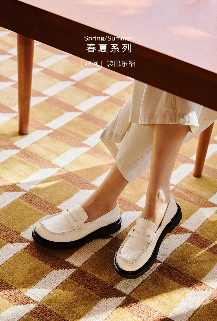 对面duimian春季新款英伦风小皮鞋袋鼠乐福鞋