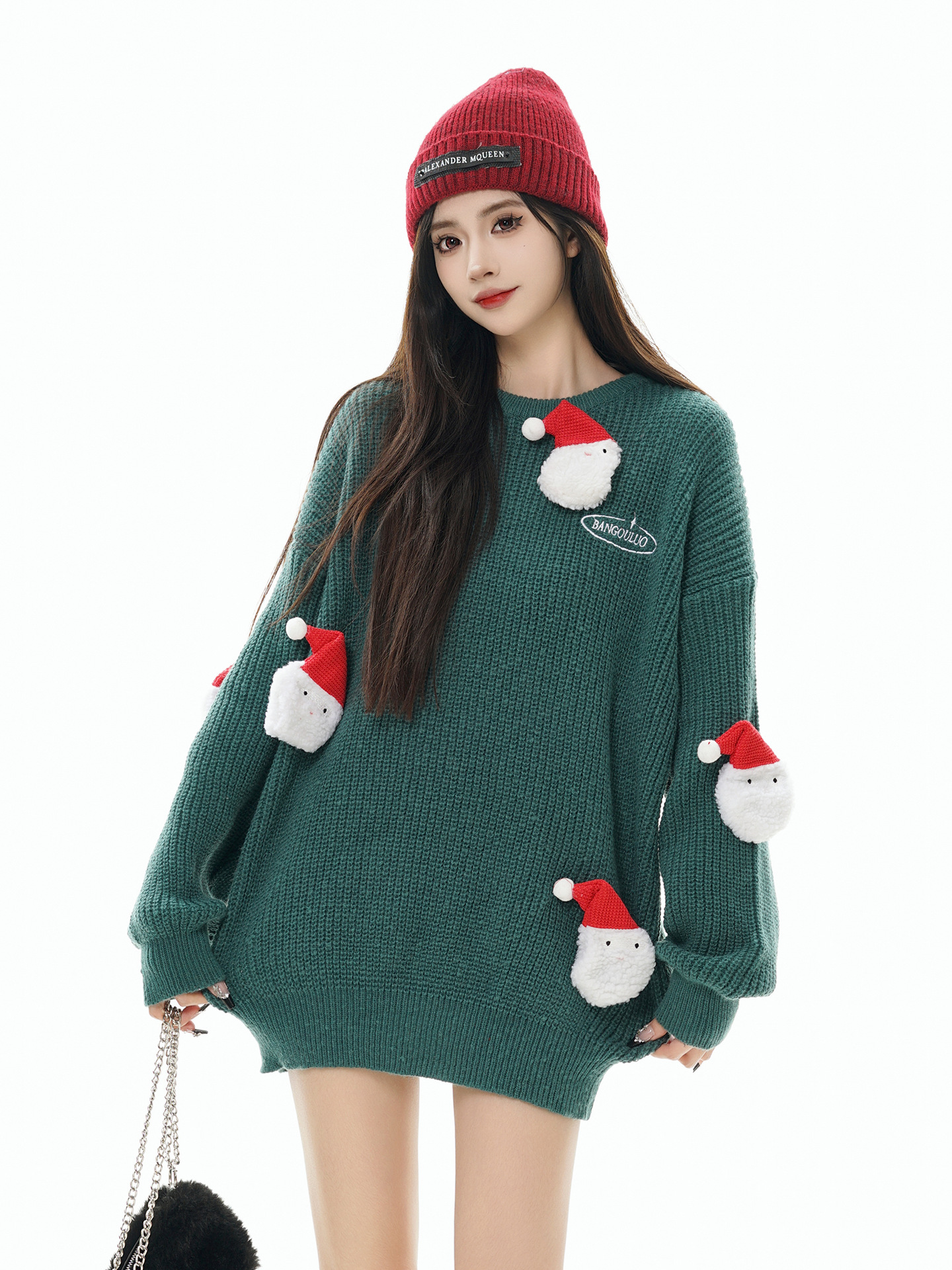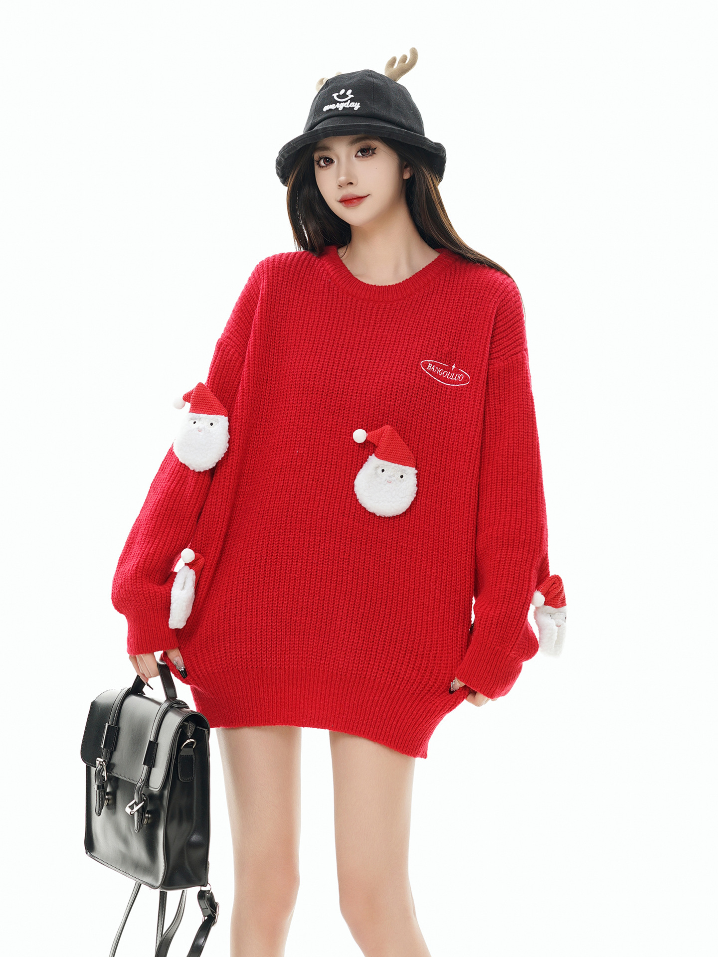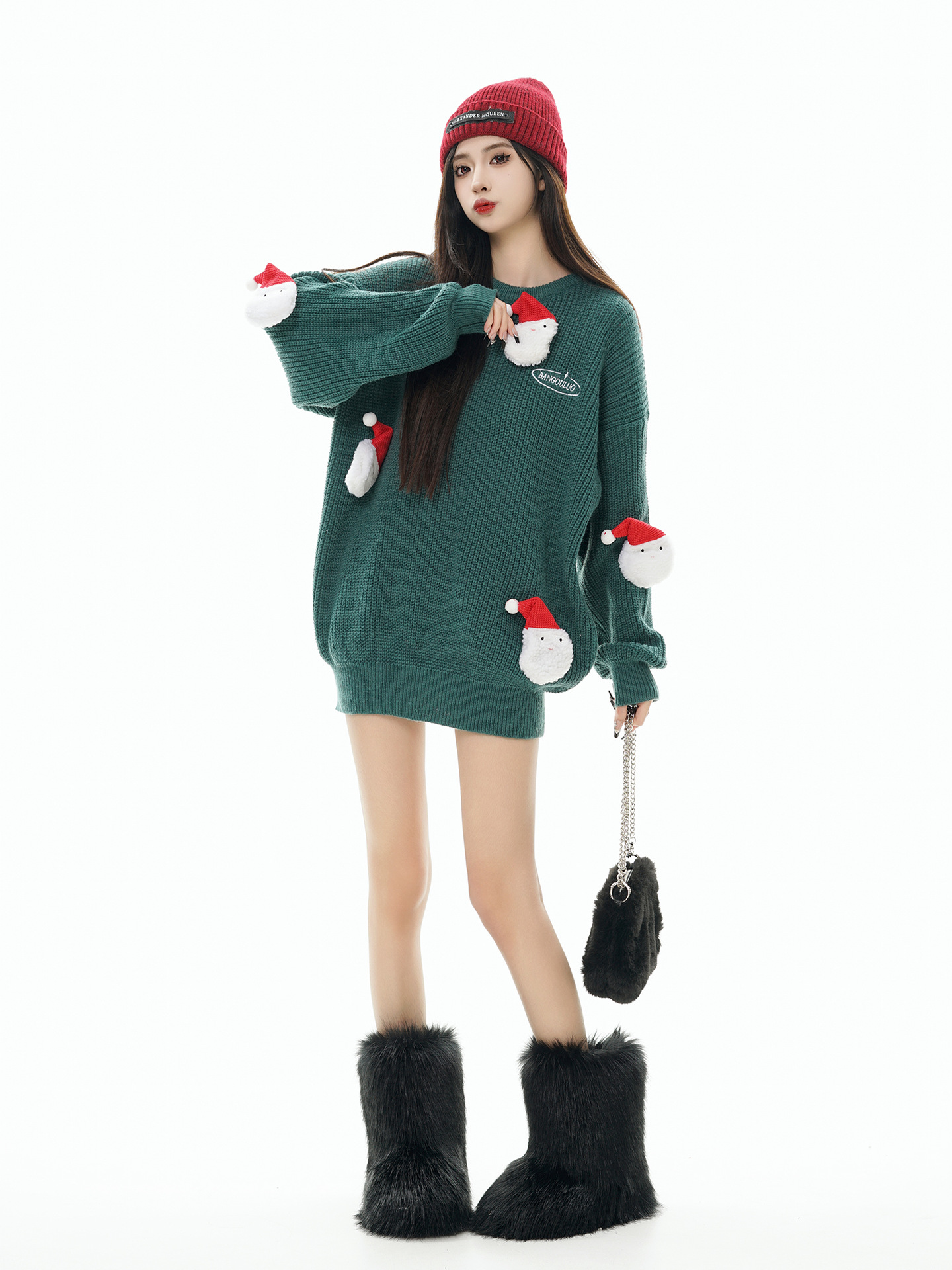 【服饰专场】秋冬新款实拍宽松美式复古圣诞风立体公仔套头毛衣