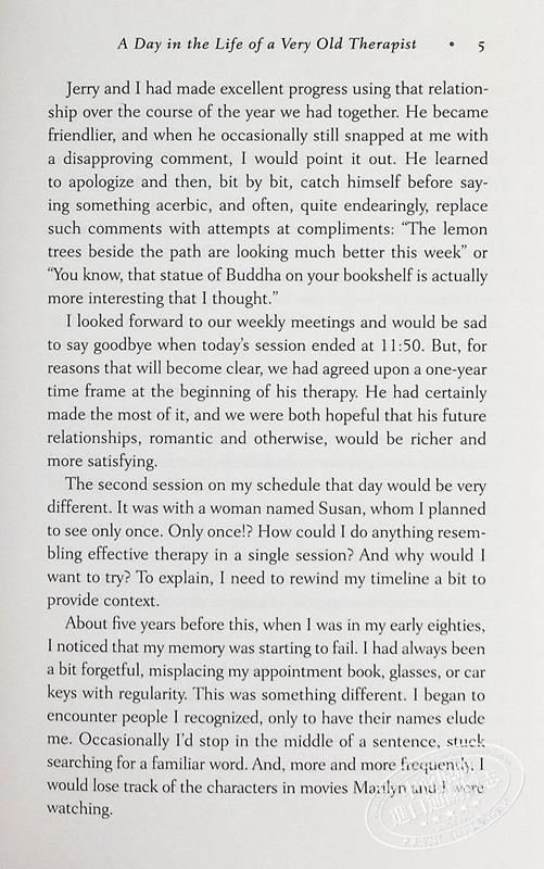 面对 93 岁的记忆丧失,以及一场将日常生活转移到线上的疫情的影响,传奇心理治疗师和畅销书作家欧文·亚隆 (Irvin Yalom) 被迫彻底重新考虑他与患者会面的形式。但亚隆博士并没有在变化面前认输,而是直面这些新现实带来的限制,并彻底改变了他的实践。亚隆博士想知道,他自己的实践是否可以深入关注患者和医生之间一小时的一次性会面中可以完成的工作——采用更加协调一致的“此时此地”方法。当他开始这些一次性的会面时,这位受人爱戴的专业治疗师发现自己可以在更短的时间内与新患者进行更深入的交流,而无需未来预约的缓冲。