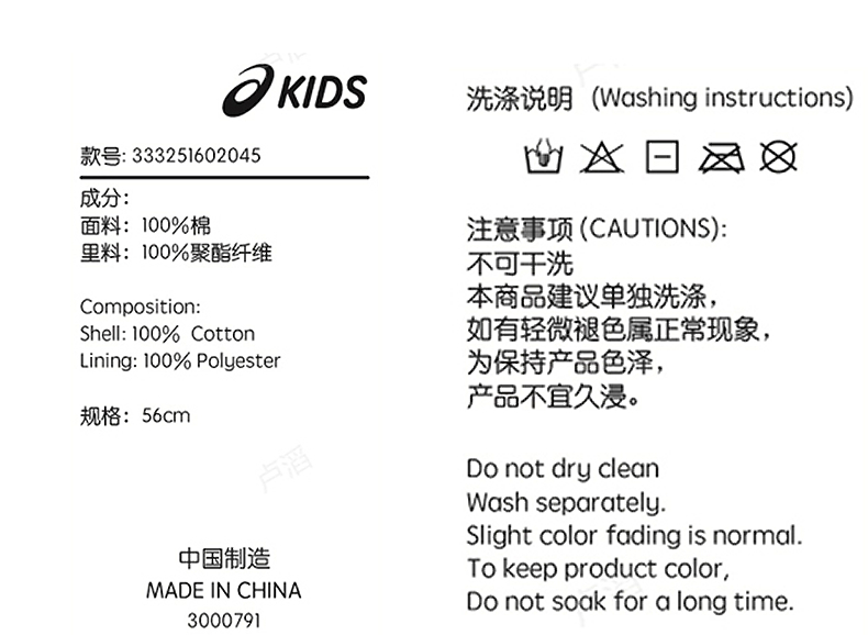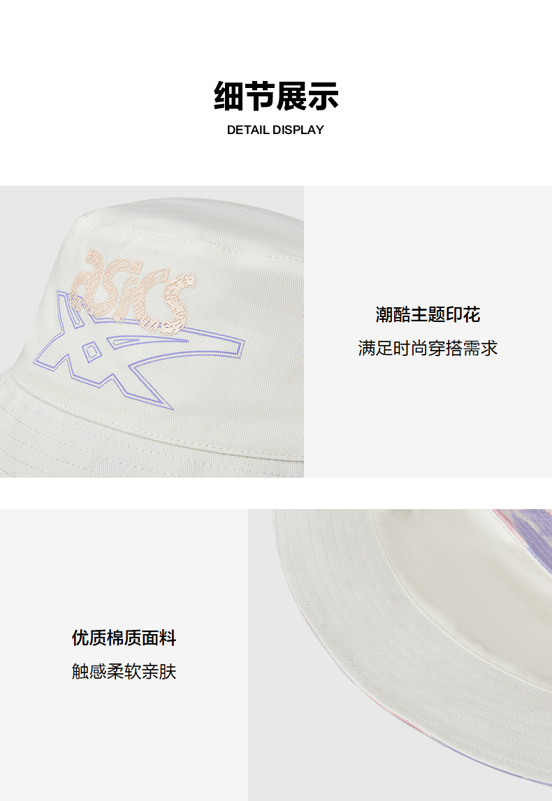 ASICS/亚瑟士儿童2025年新款潮流满印渔夫帽两面戴设计抗皱耐磨