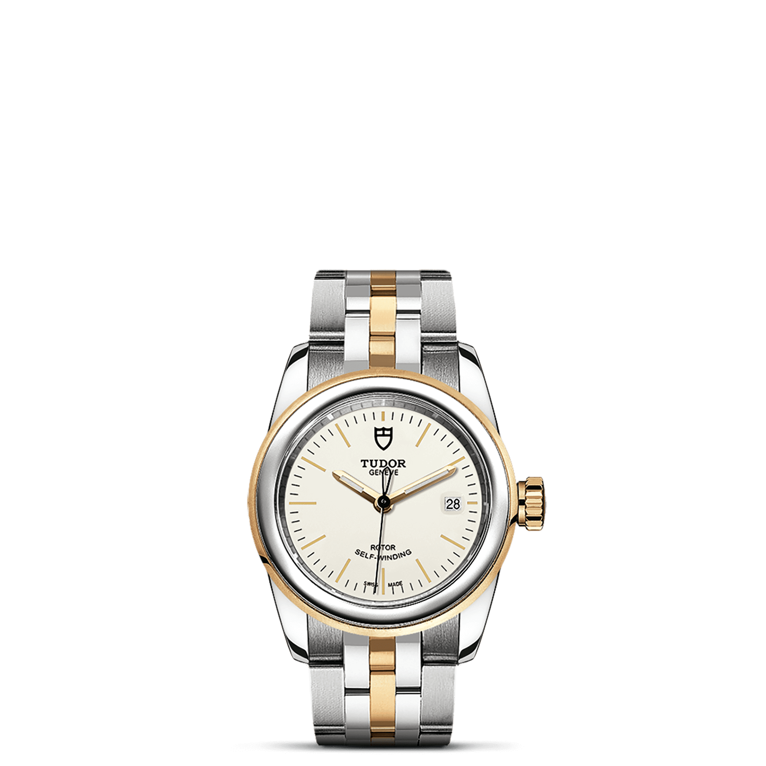 旋入式上链錶冠,饰以帝舵表标志;精钢覆有0.1毫米18K黄金薄层