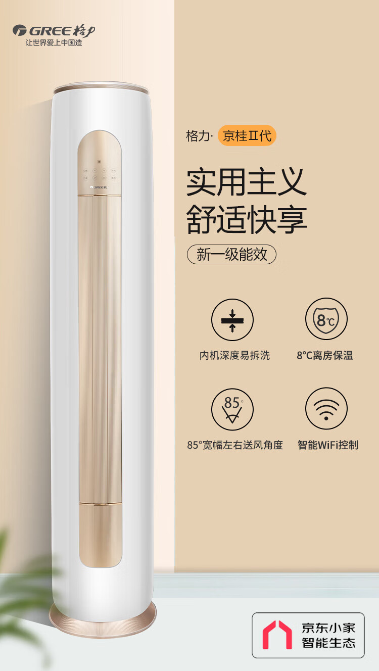 国补到手价 5760 元 格力3匹 京桂II 变频一级空调柜机 智能操控 56℃高温自洁 85°宽幅送风 8℃离房保温 5挡风速 KFR-72LW/(72587)FNhAd-B1(JDWIFI)