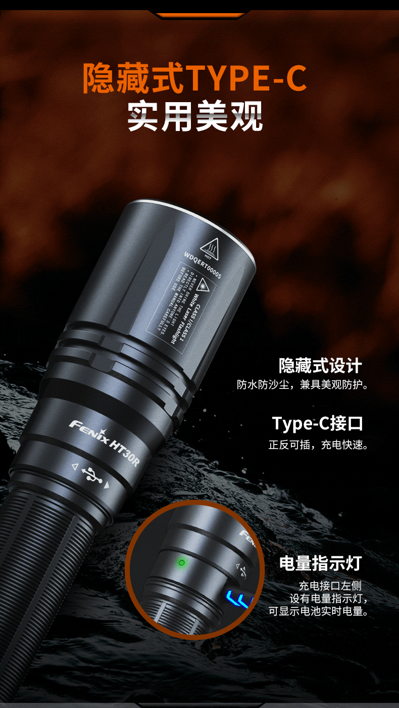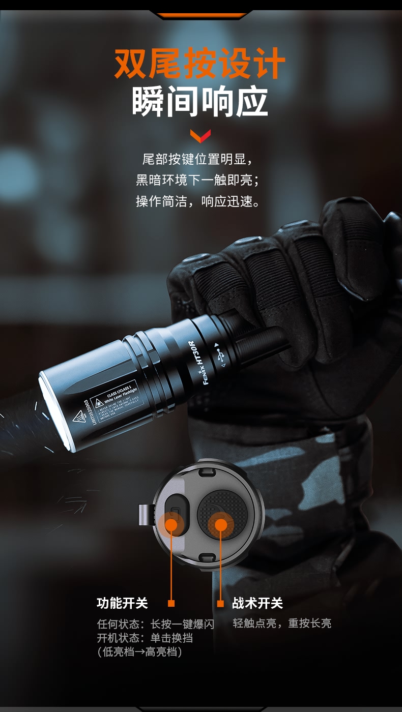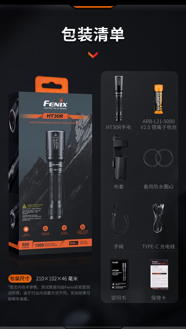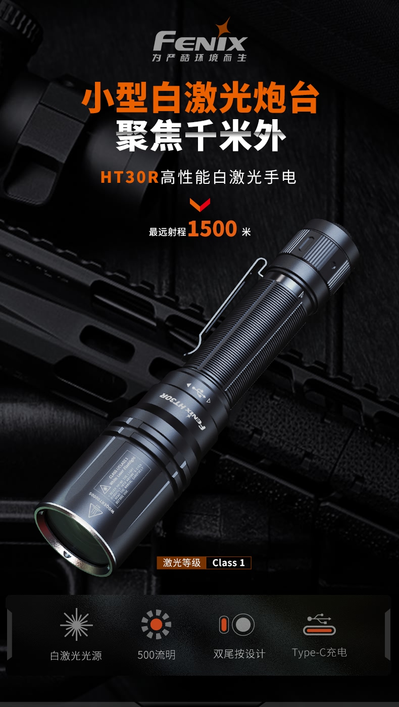 Fenix菲尼克斯HT30R白激光远射户外超亮强光战术多功能充电手电筒