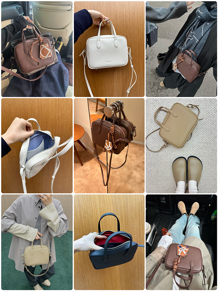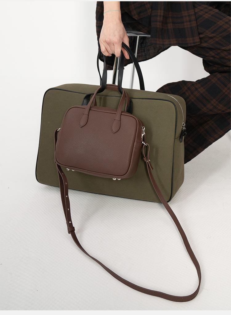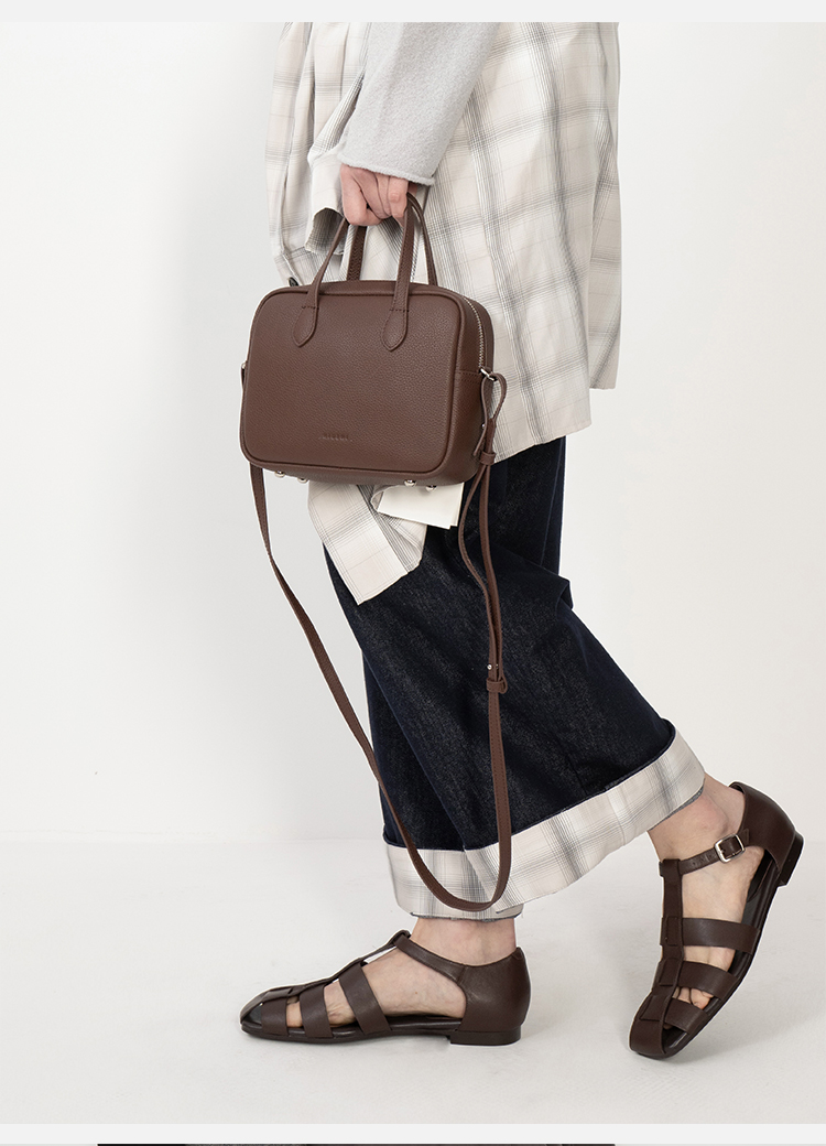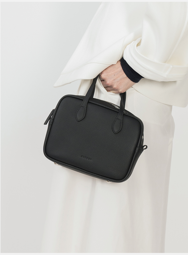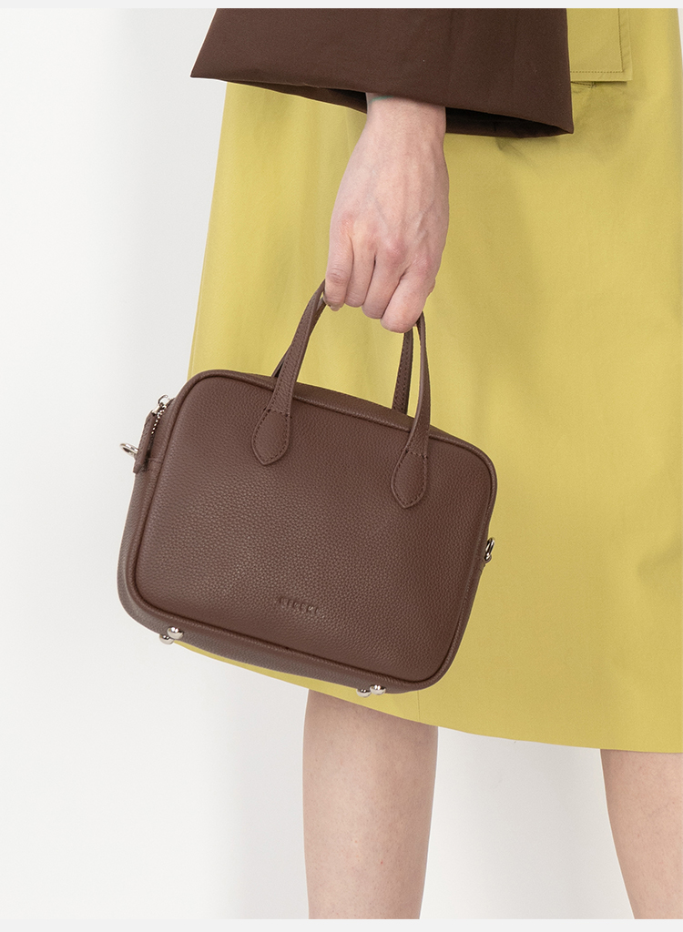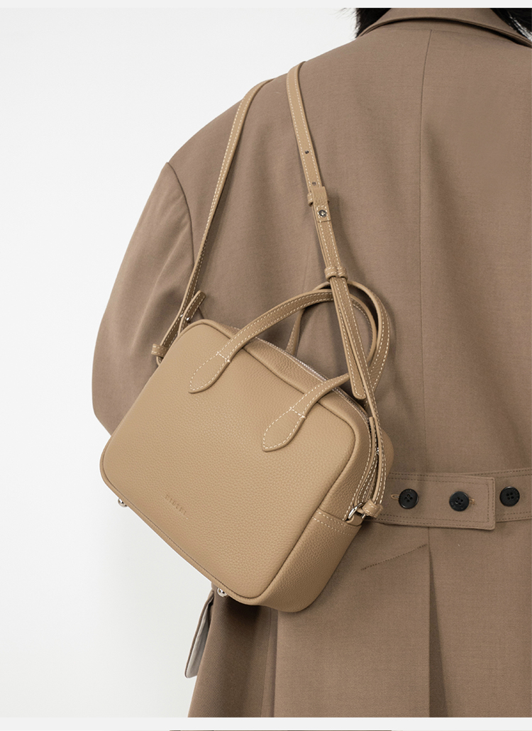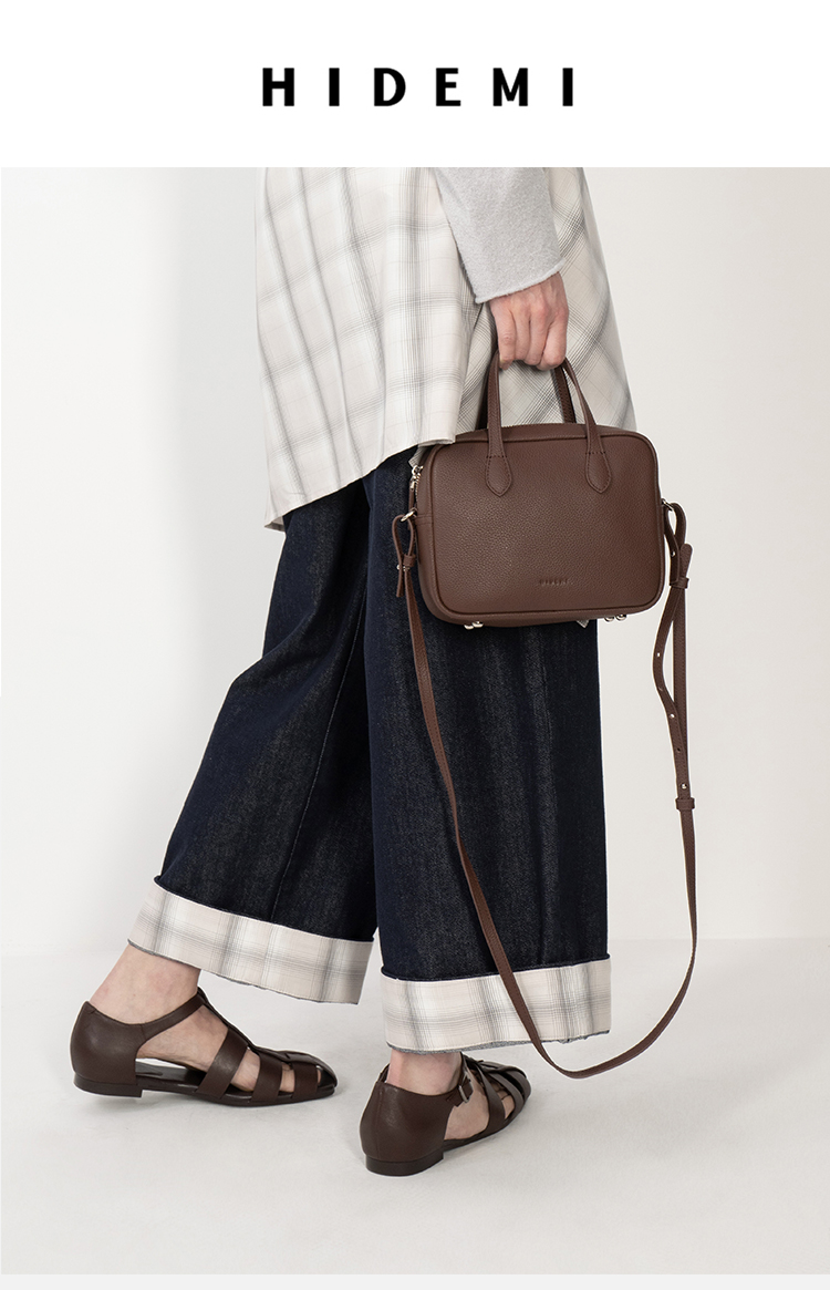 HIDEMI进口荔枝牛皮togo皮波士顿可拆卸多功能斜跨手提包小号
