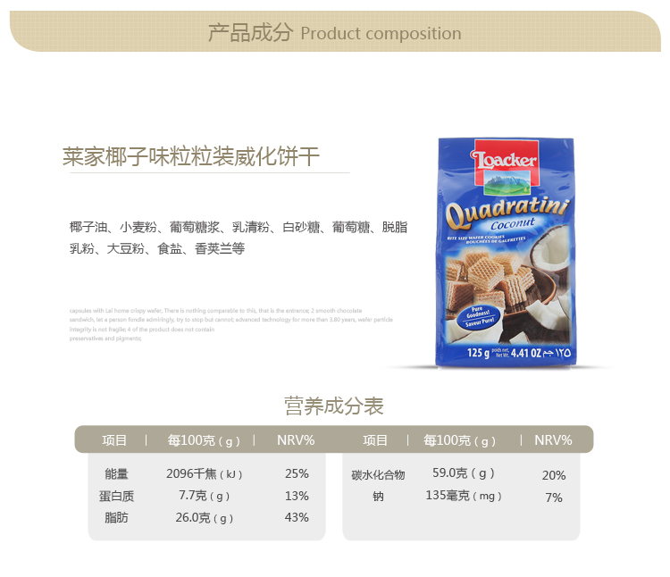 loacker 莱家 粒粒装 威化 椰子味 袋装