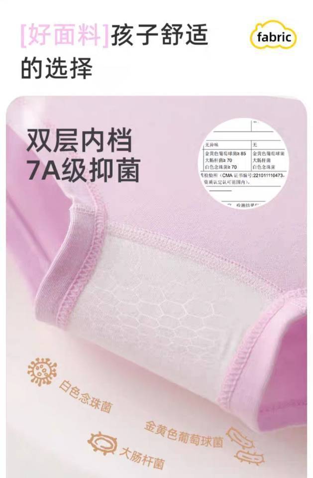 ✅女童款 有三角款/平脚款可选 里裆设计是双层里裆 里面添加艾草纤维素,有较强的抗菌的作用 超多可爱的印花,符合宝贝们的喜爱 95%棉+5%氨纶,宝贝穿上后无比舒适