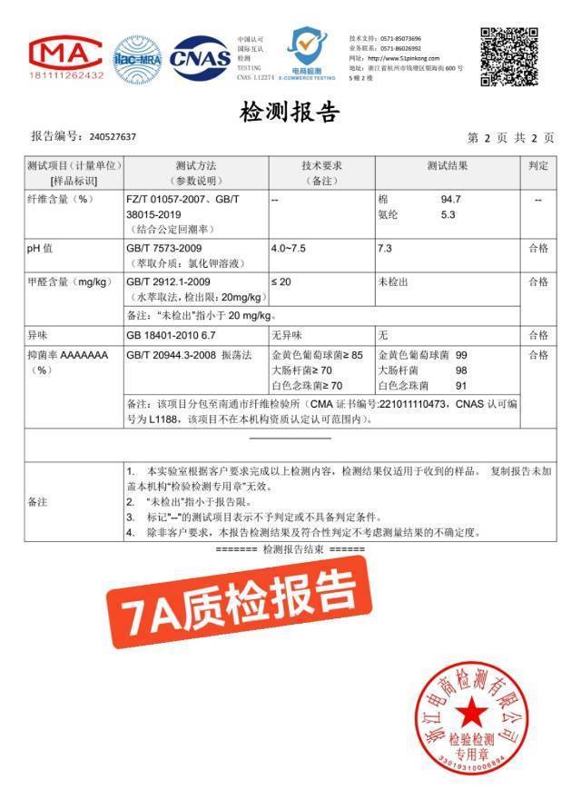 🔺7A级抗拒抑菌裆 U型立体呵护 检验确认 7A抗菌标准 (抑菌率) 大肠杆菌 ≥92% 白色念珠球菌 ≥91% 金黄色葡萄球菌 ≥90% 保护好宝宝的隐私部位~