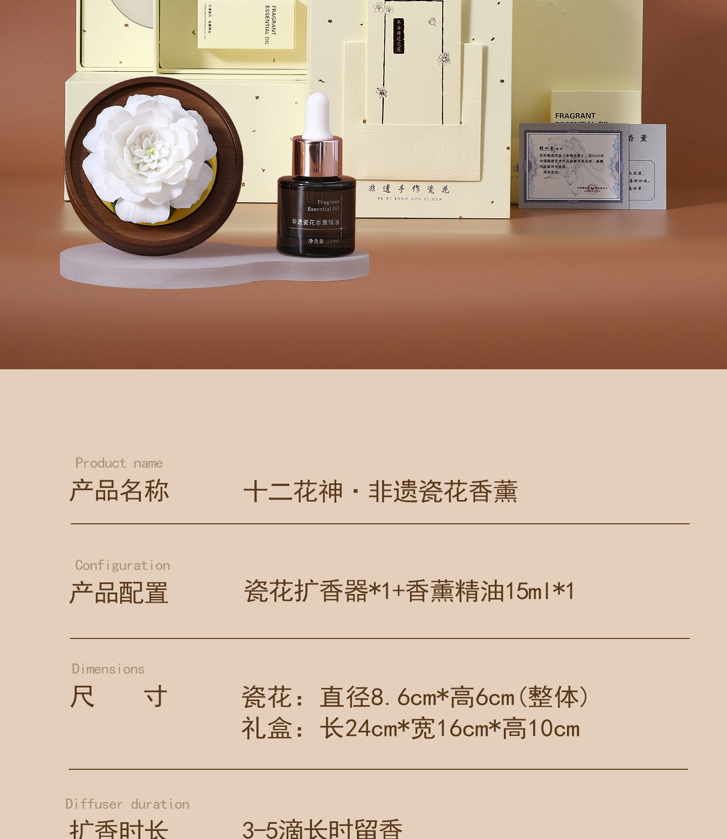 情人节好礼【非遗瓷花香薰❗一朵永不凋零的花】陶瓷花香薰工艺品虎头茉莉扩香器高级感摆件送朋友生日礼物。rf