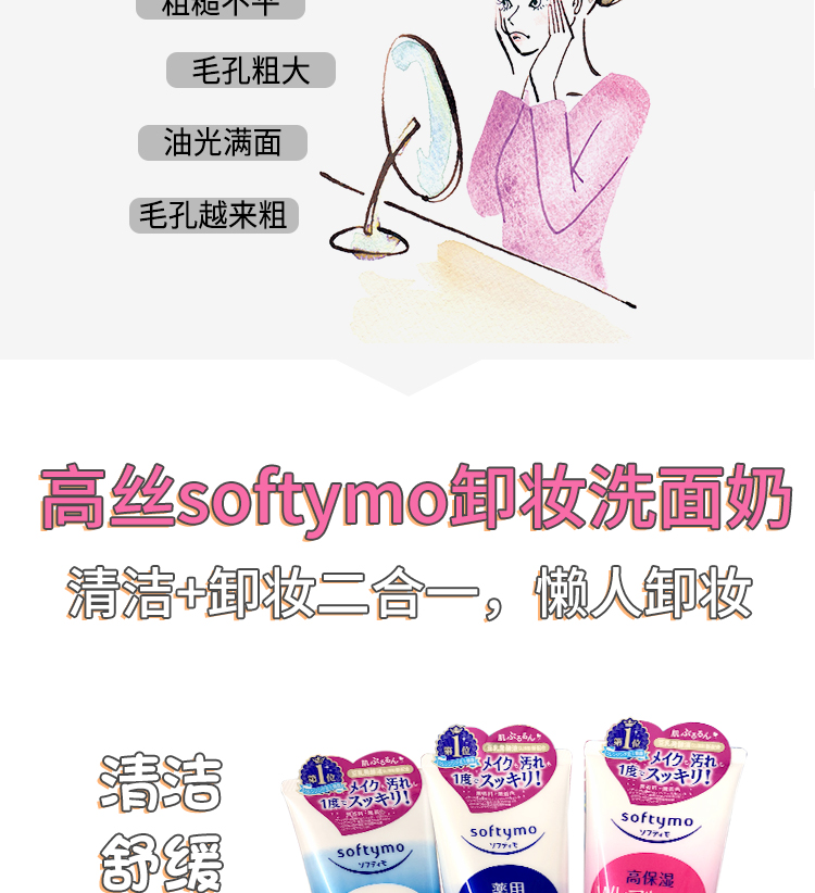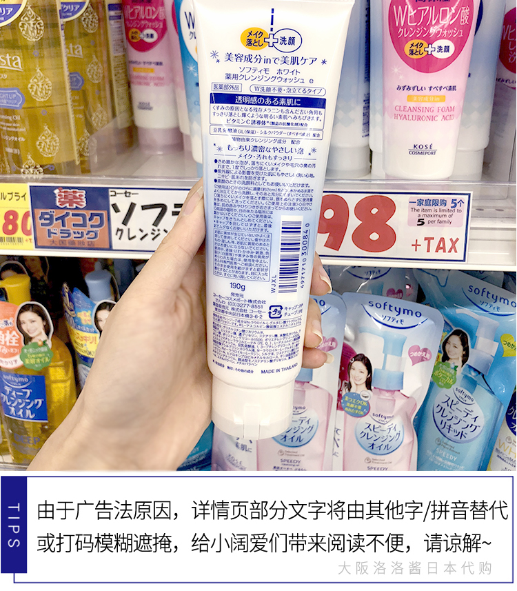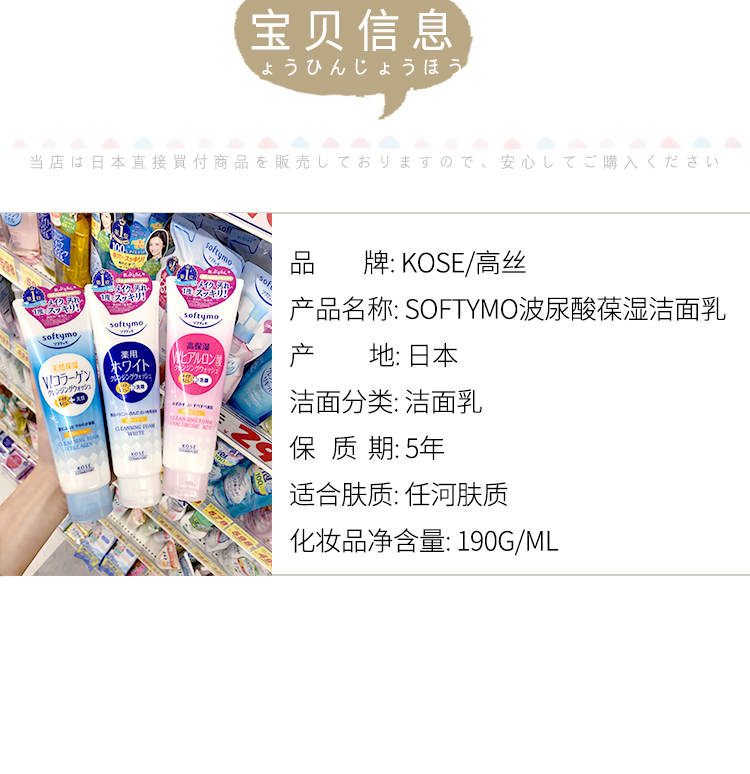 【爆款超低价预售 急单慎拍】日本KOSE高丝softymo卸妆洗面奶洁面乳女玻尿酸温和深层清洁190g