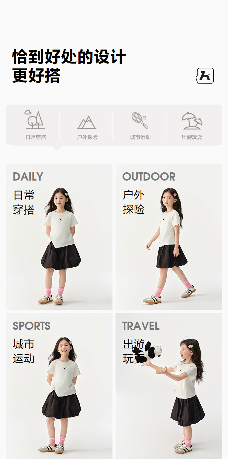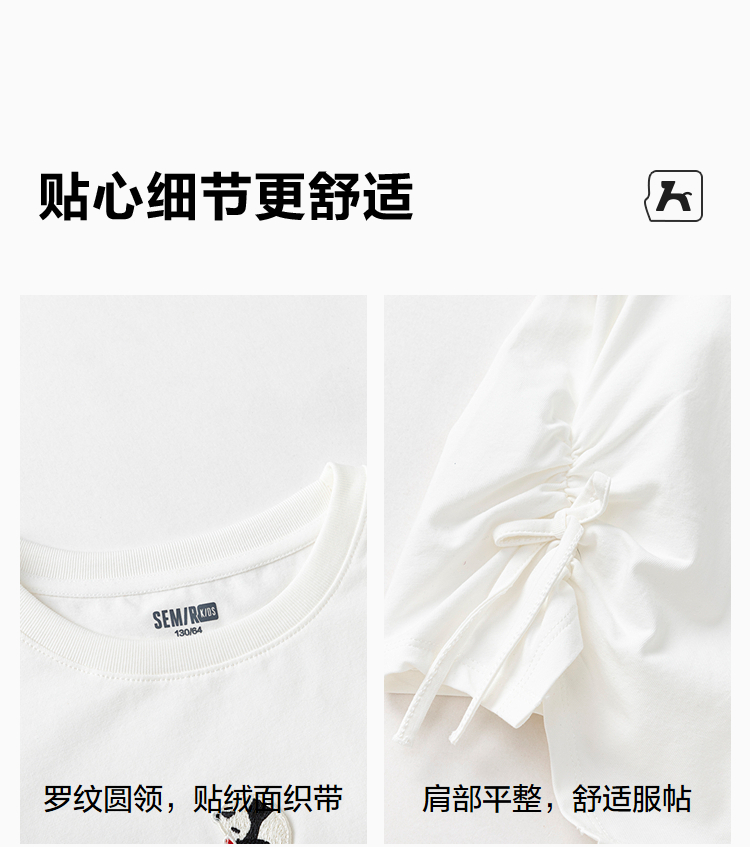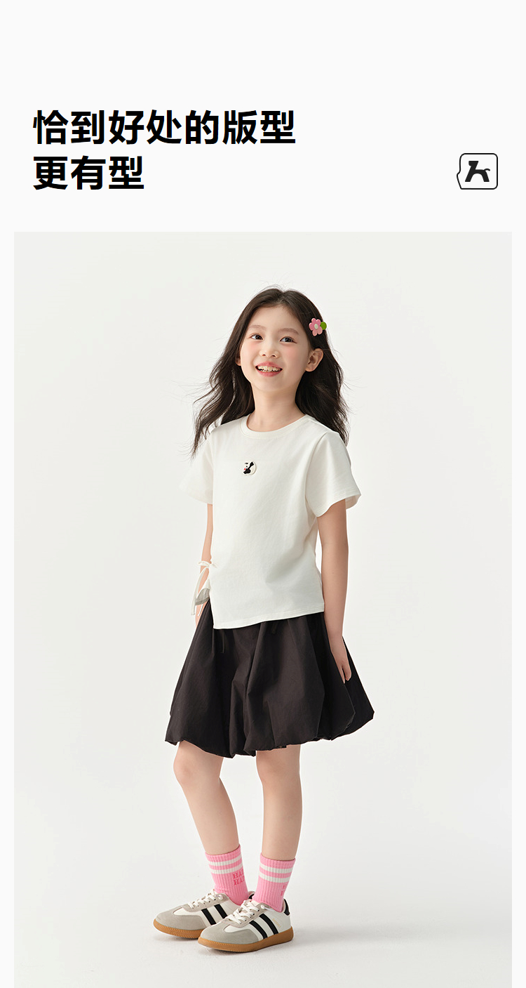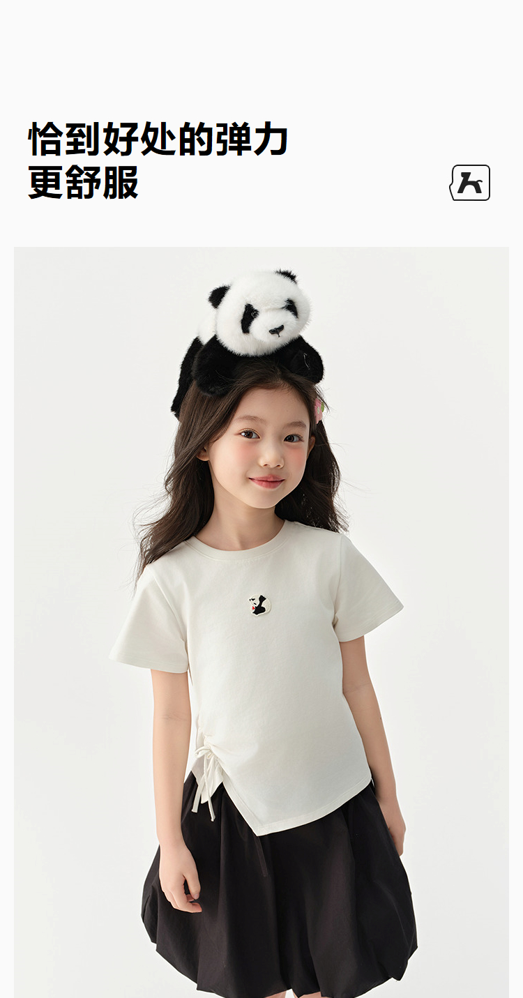 森马儿童短袖T恤2025夏新款女童可盐可甜熊猫刺绣上衣抽褶蝴蝶结