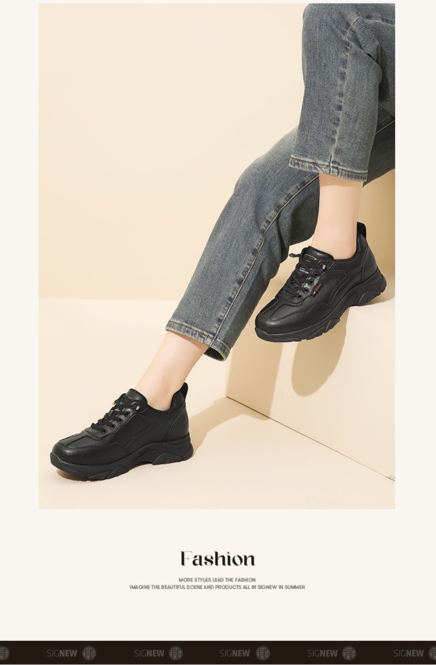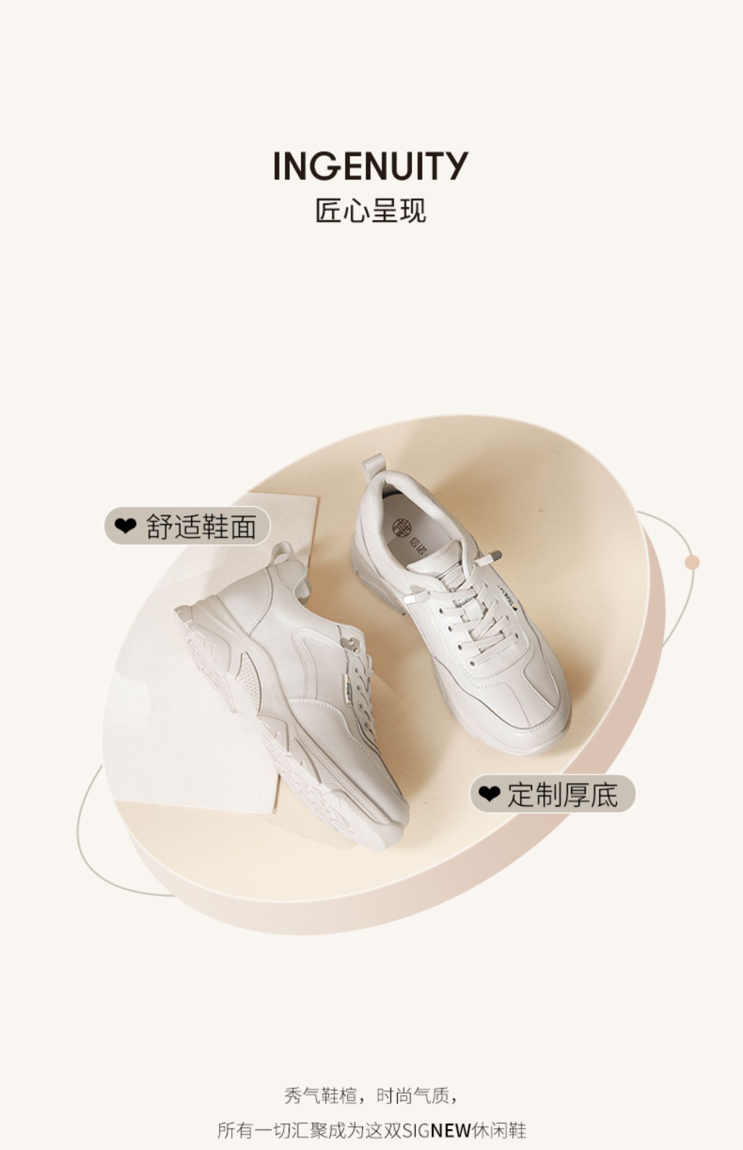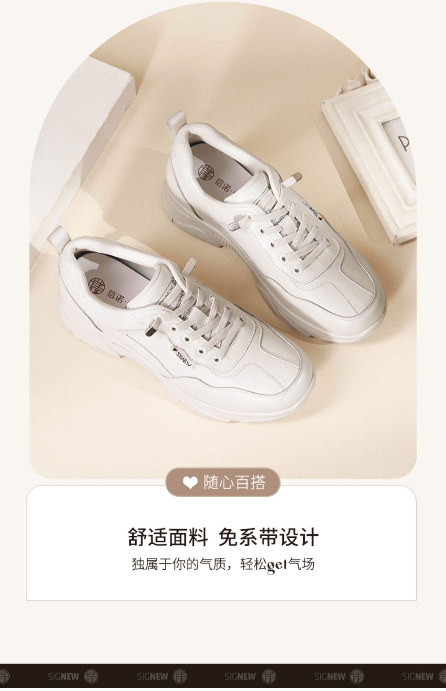 信诺休闲运动鞋女2024年春季厚底老爹鞋真皮软底舒适春秋妈妈鞋子24C1981-1