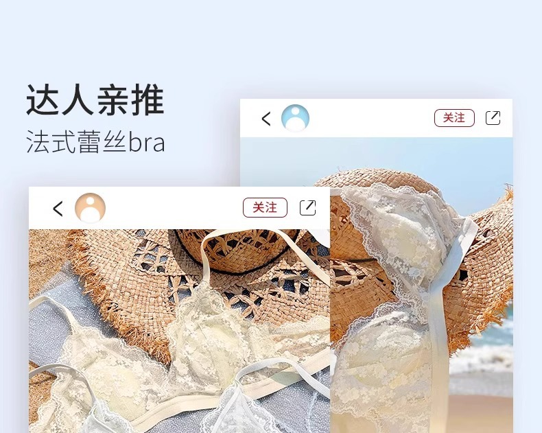 【GZ】无忧购49元2件法式序曲超薄蕾丝内衣透气亲肤兔耳杯文胸(截单后7天发货)