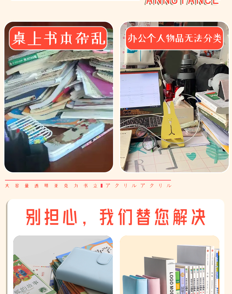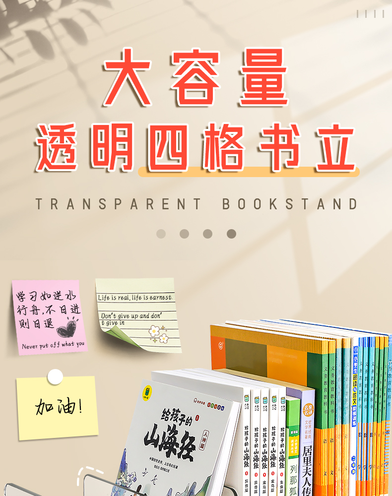 开学季福利!亚克力书立架阅读架书夹桌上书架桌面固定书本收纳神器透明置物架分隔板书本立架课桌收纳学生书挡架放书夹