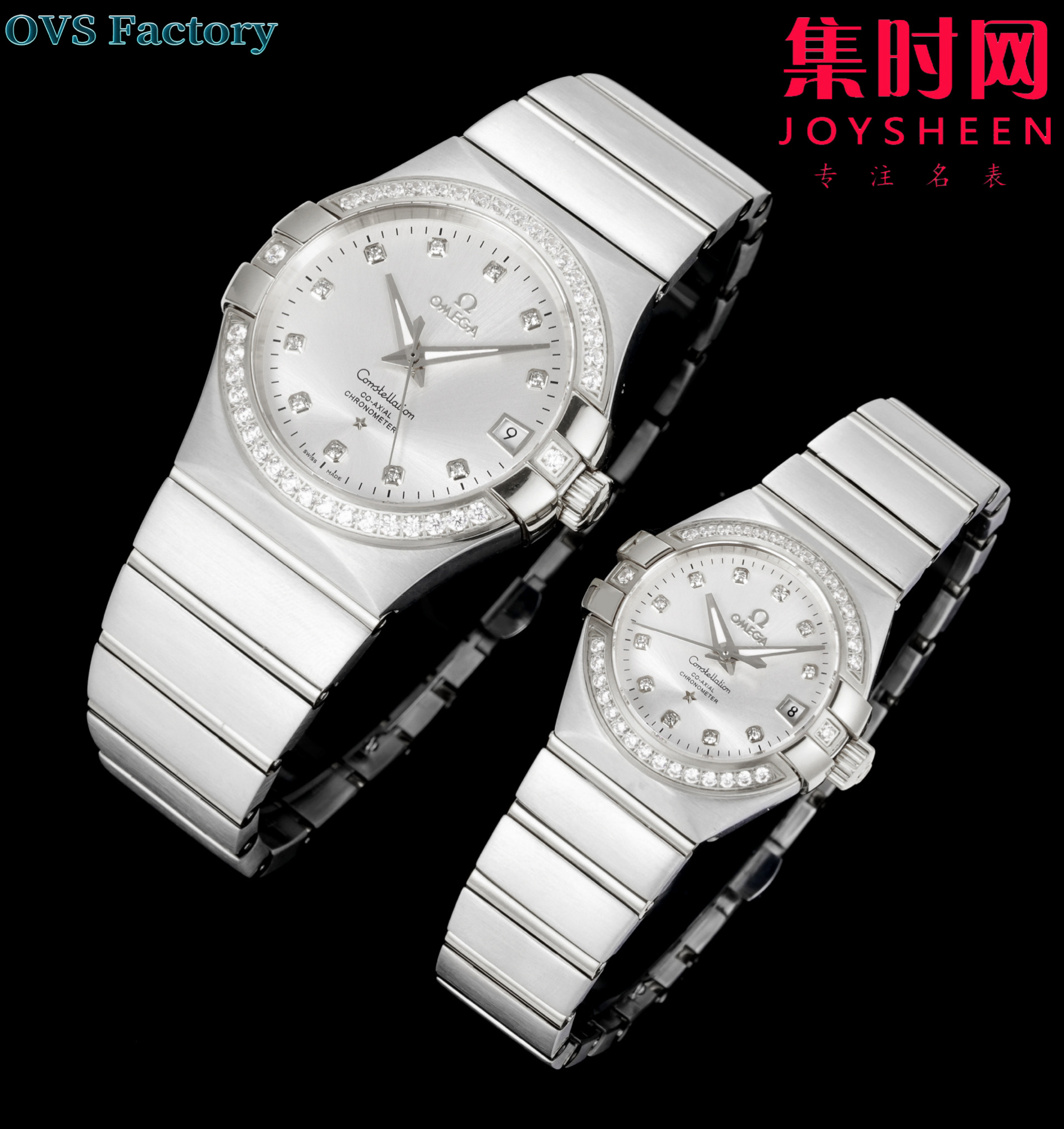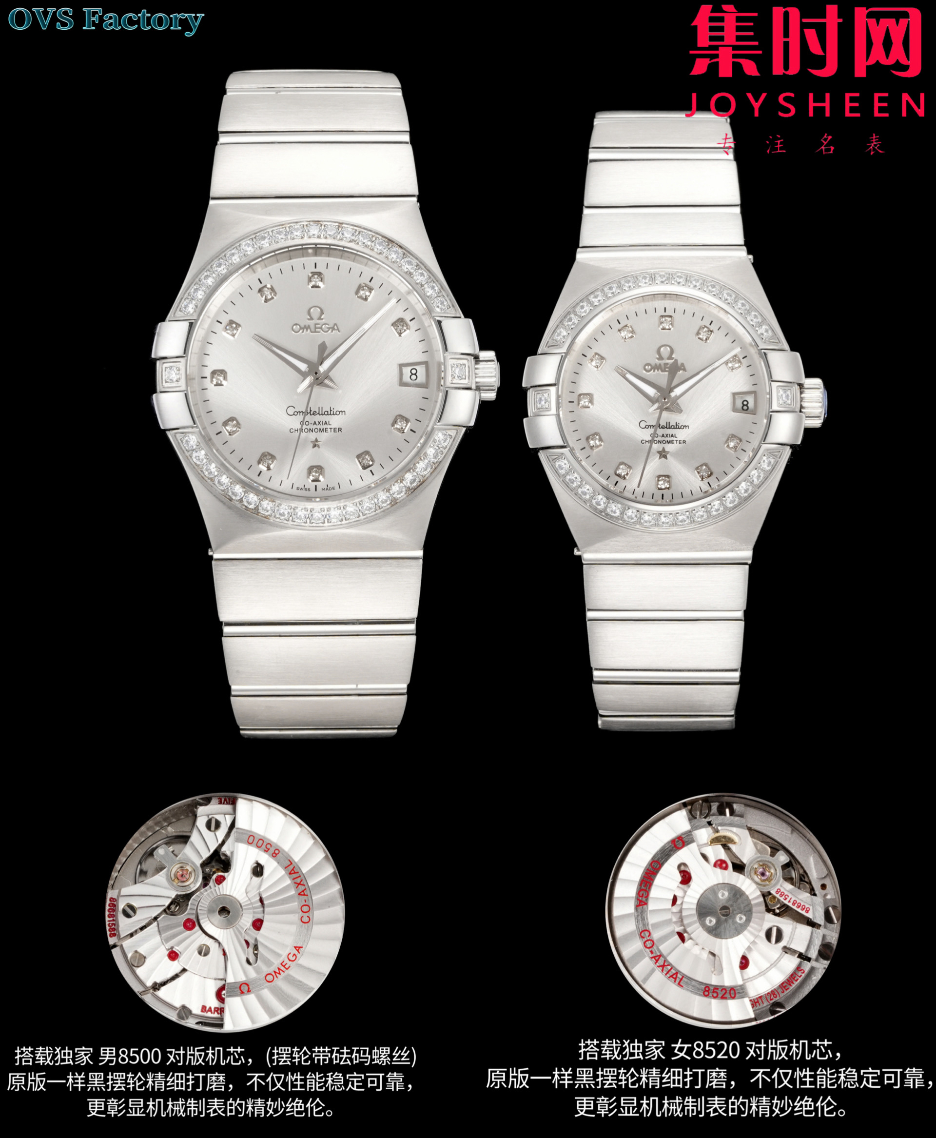 经典传承,卓越新生——欧米茄OVS星座情侣系列 情侣机械腕表 对版摆轮带砝码螺丝 双T黑摆轮 表盘尺寸:男款38mm 女款27mm