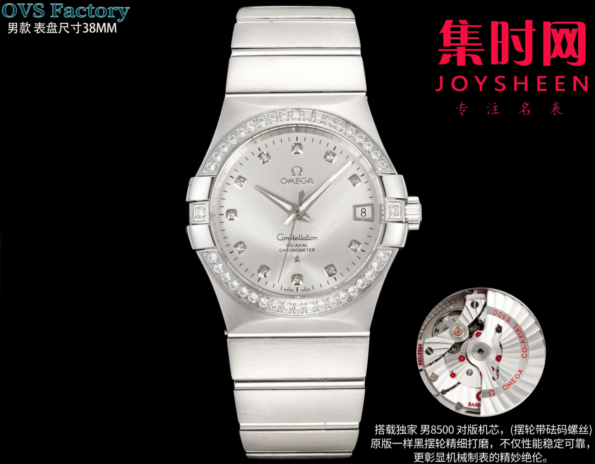 经典传承,卓越新生——欧米茄OVS星座情侣系列 情侣机械腕表 对版摆轮带砝码螺丝 双T黑摆轮 表盘尺寸:男款38mm 女款27mm 商品图8