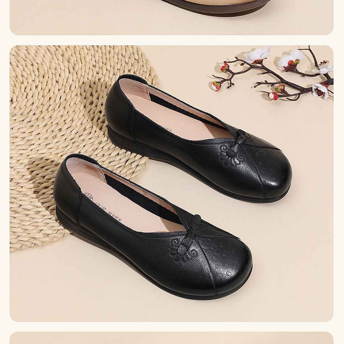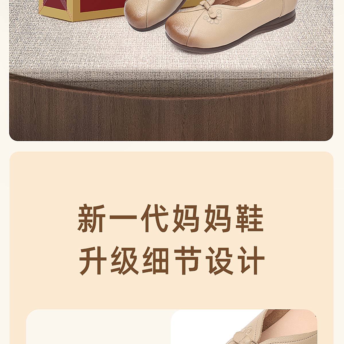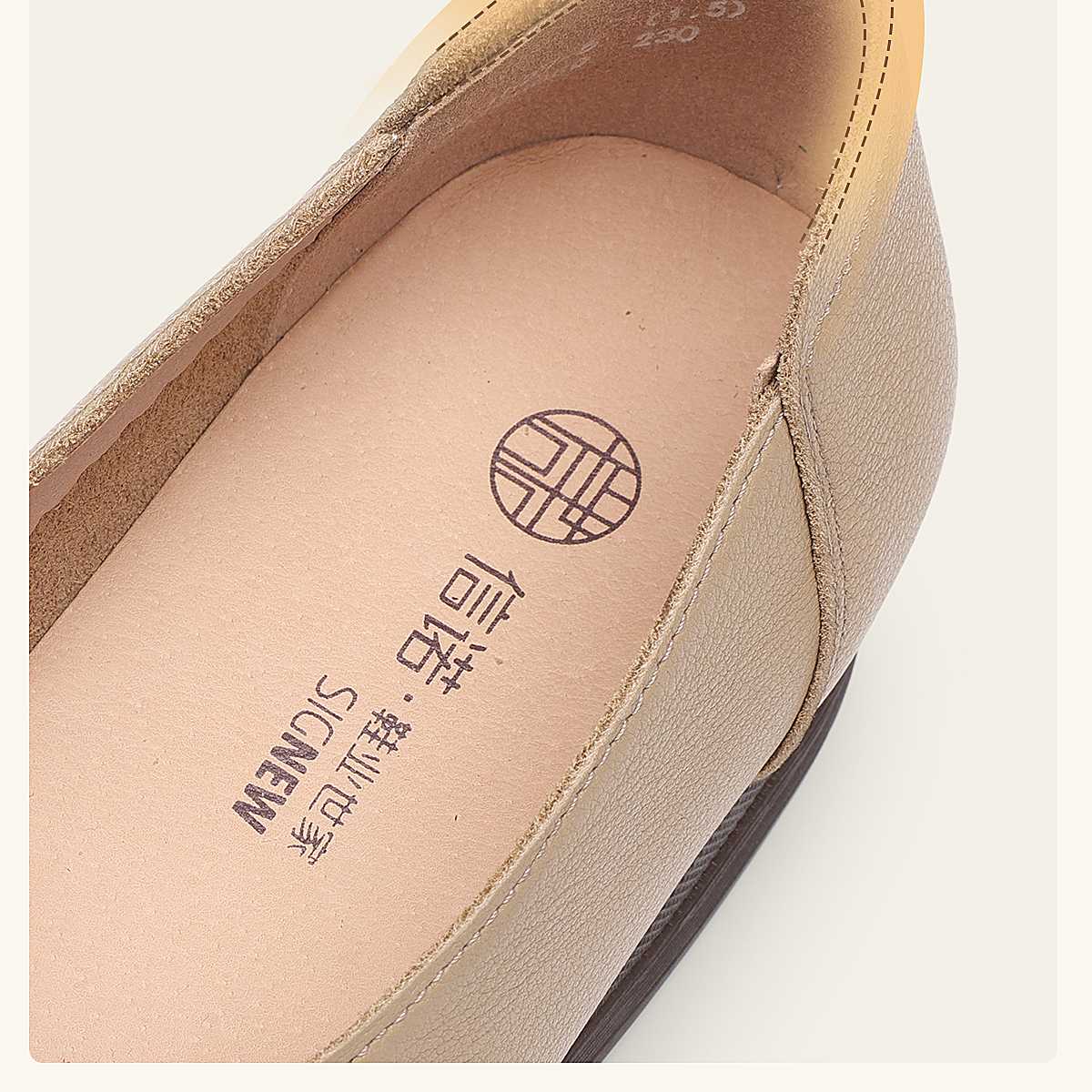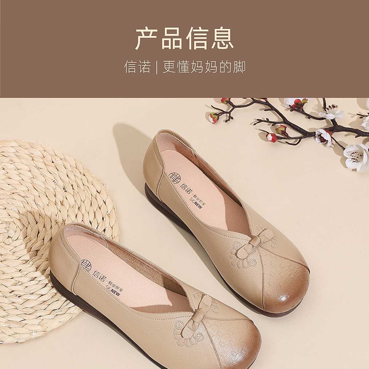真皮妈妈鞋女休闲风平底浅口单鞋舒适软底一脚蹬奶奶鞋6C1527-5