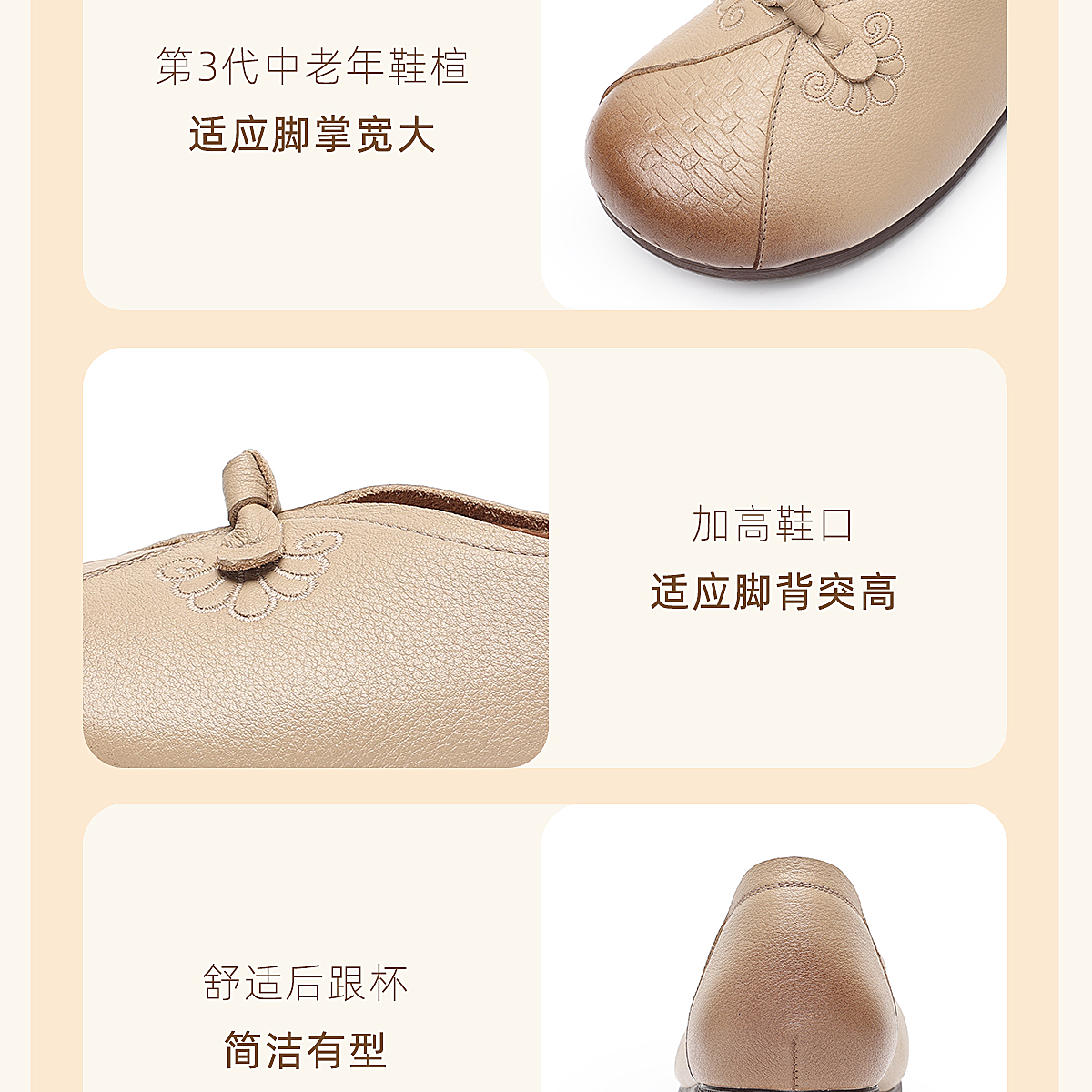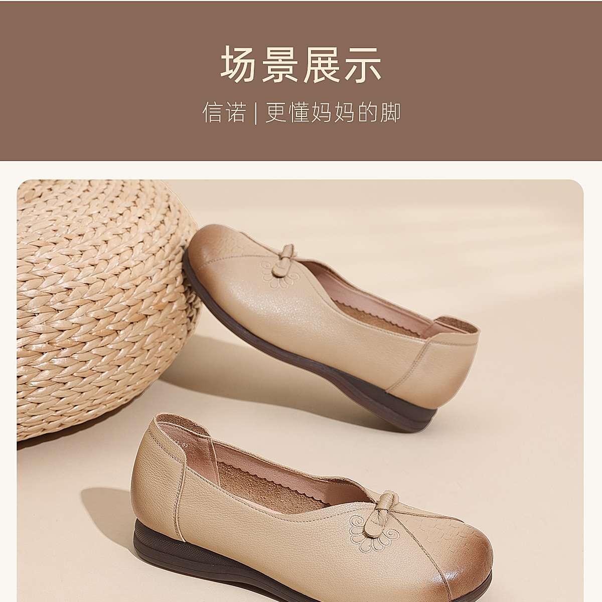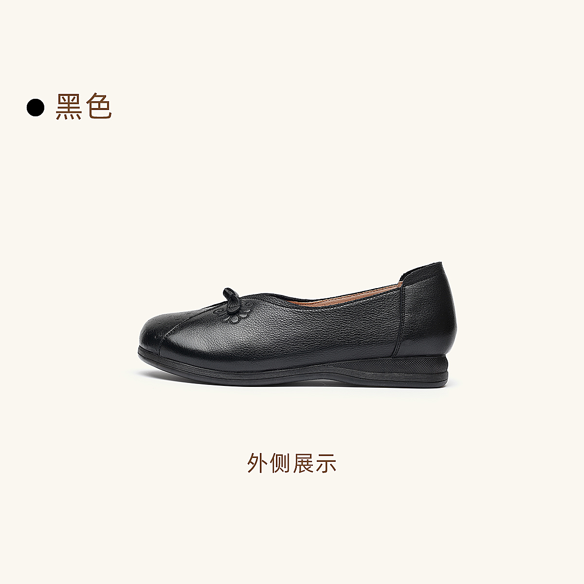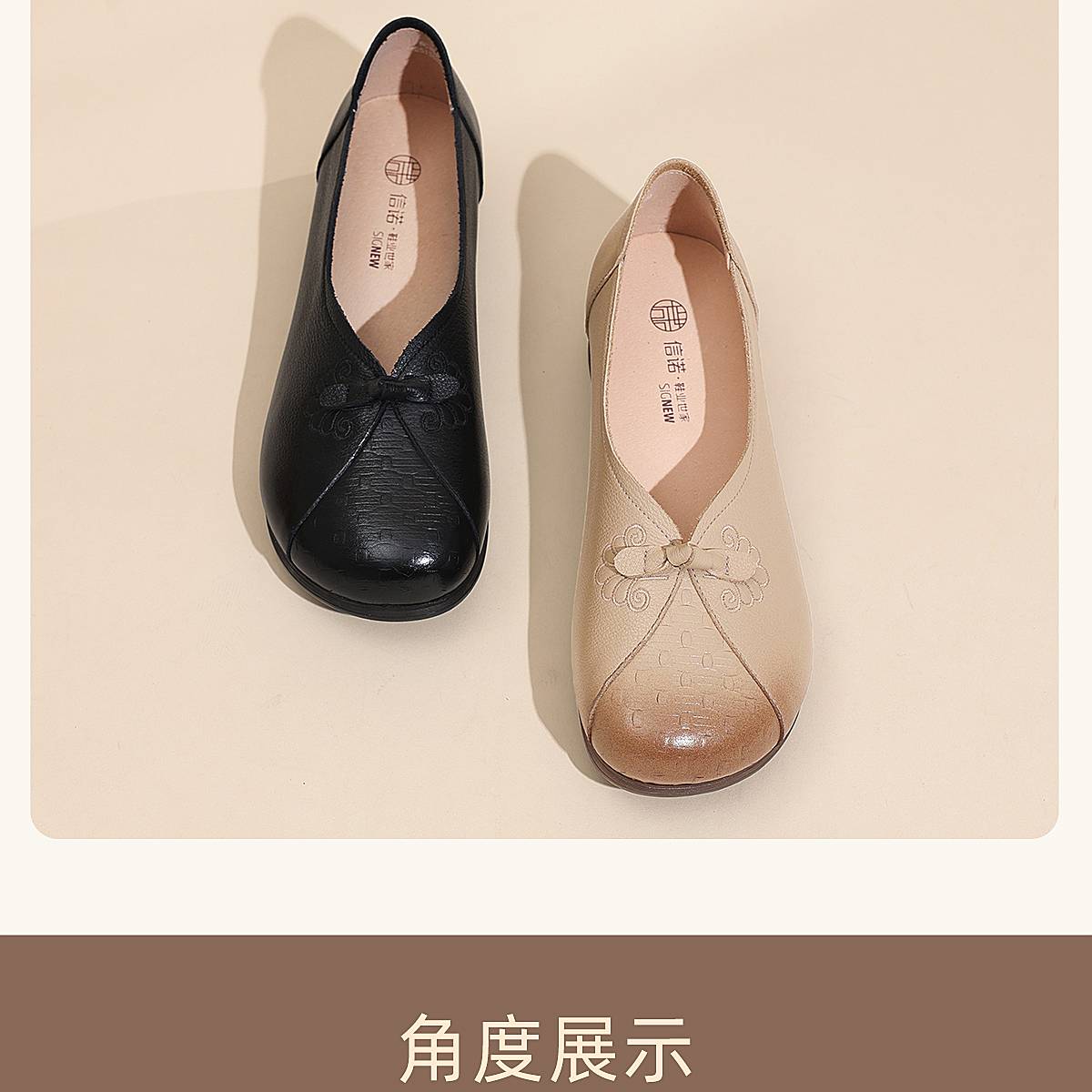 真皮妈妈鞋女休闲风平底浅口单鞋舒适软底一脚蹬奶奶鞋6C1527-5