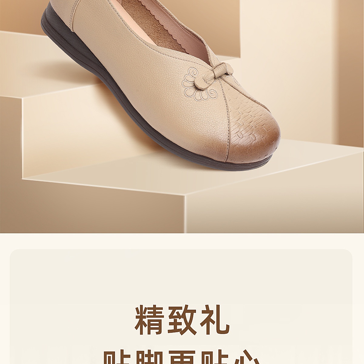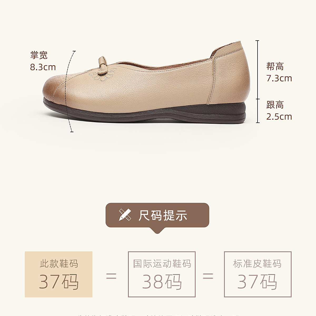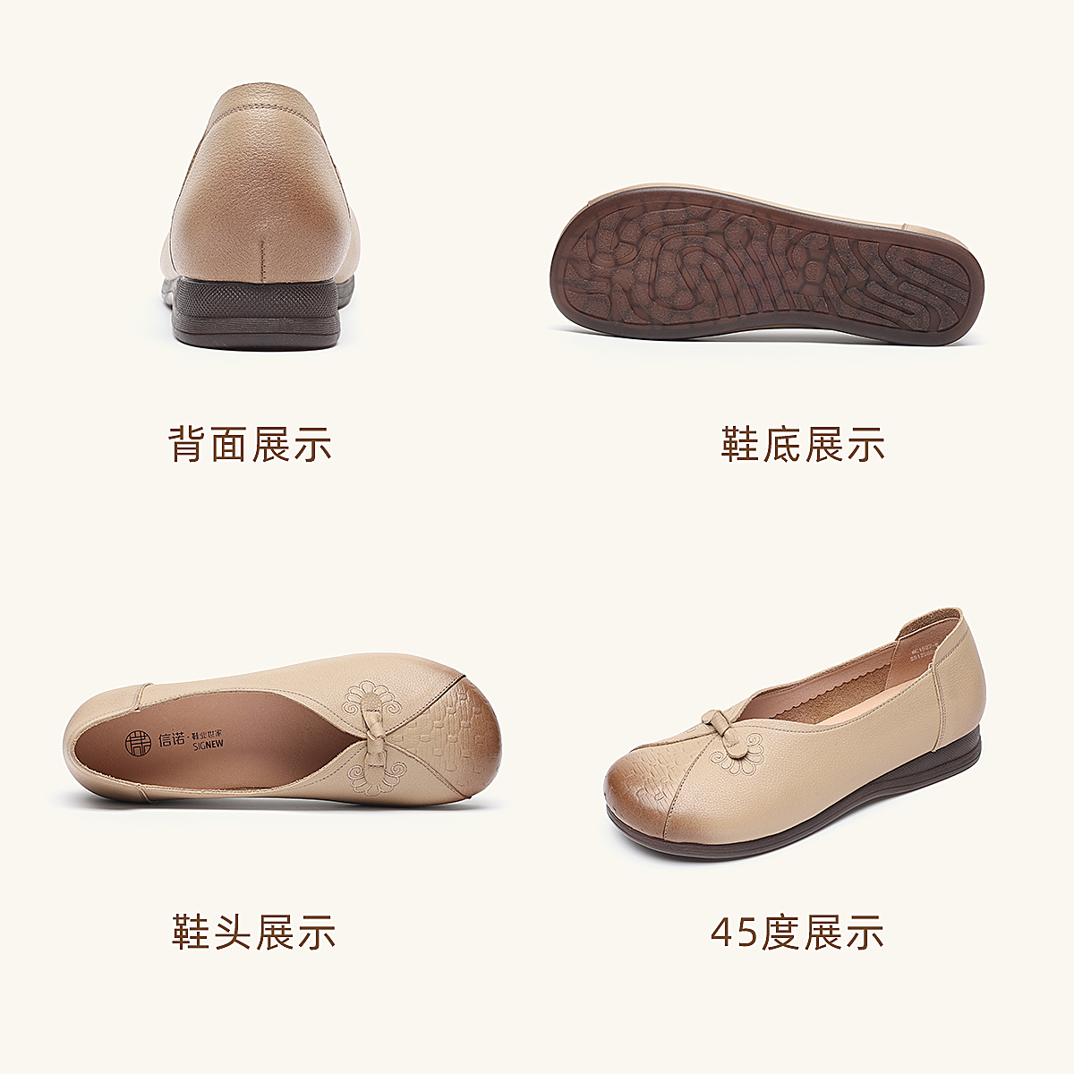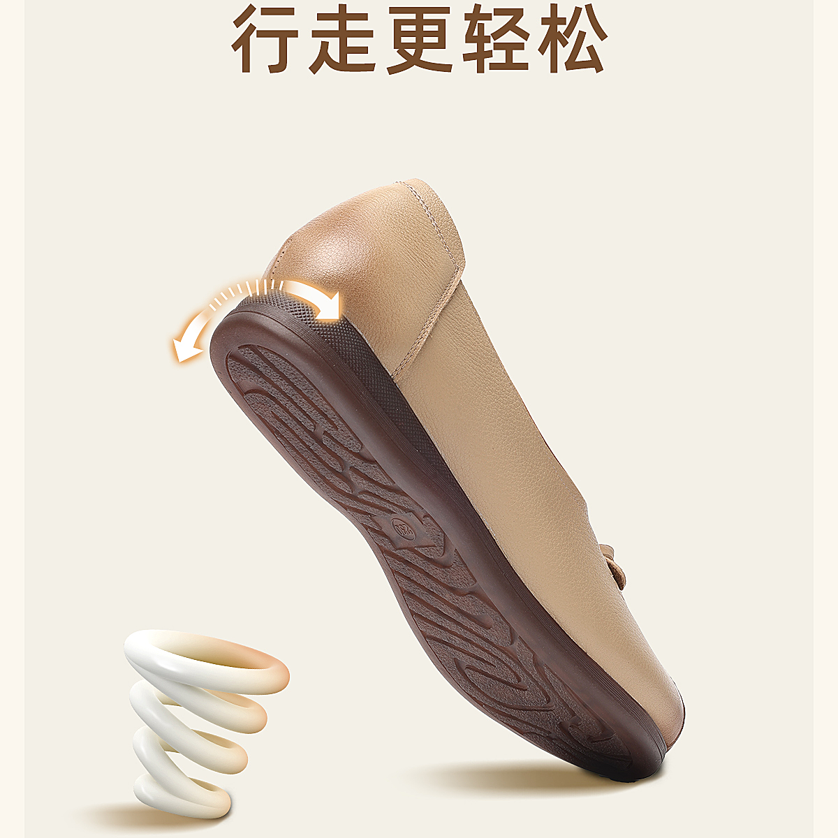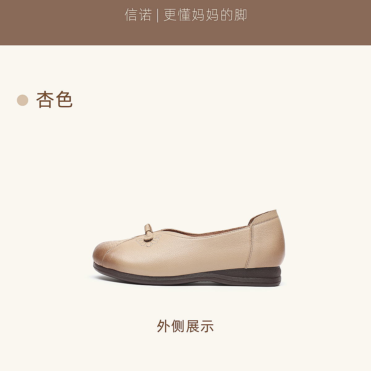 真皮妈妈鞋女休闲风平底浅口单鞋舒适软底一脚蹬奶奶鞋6C1527-5