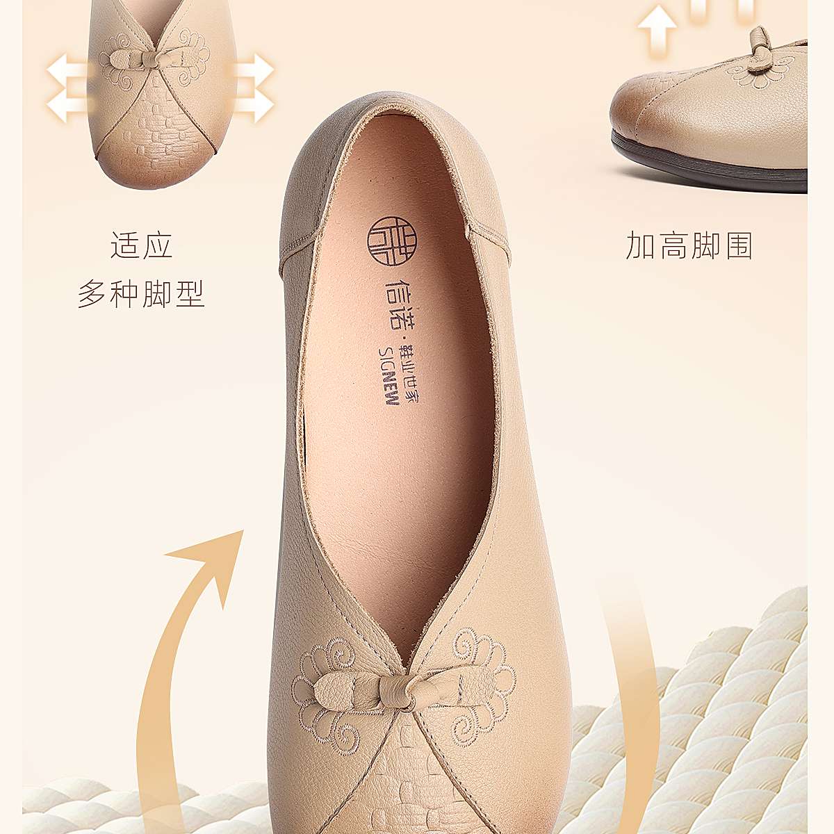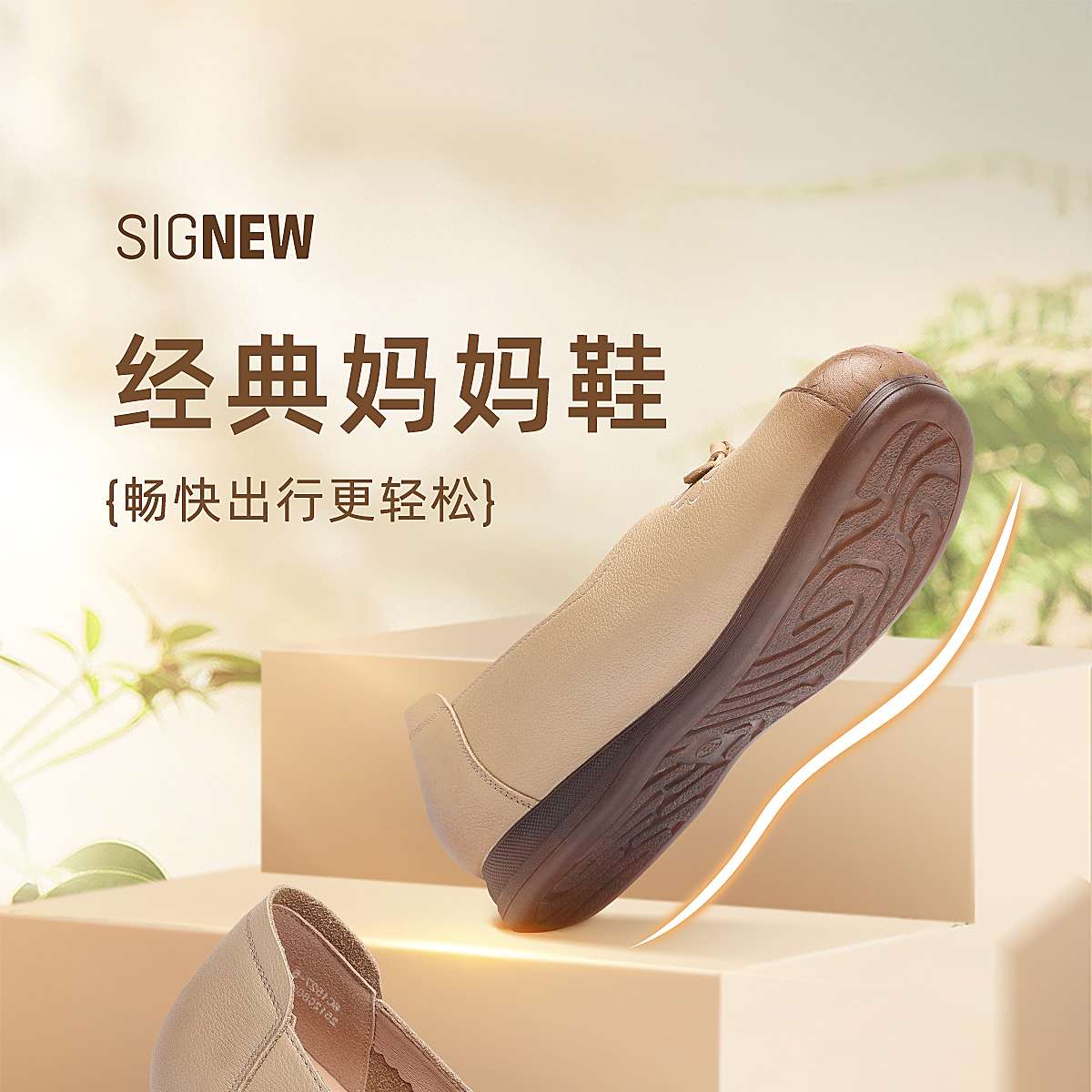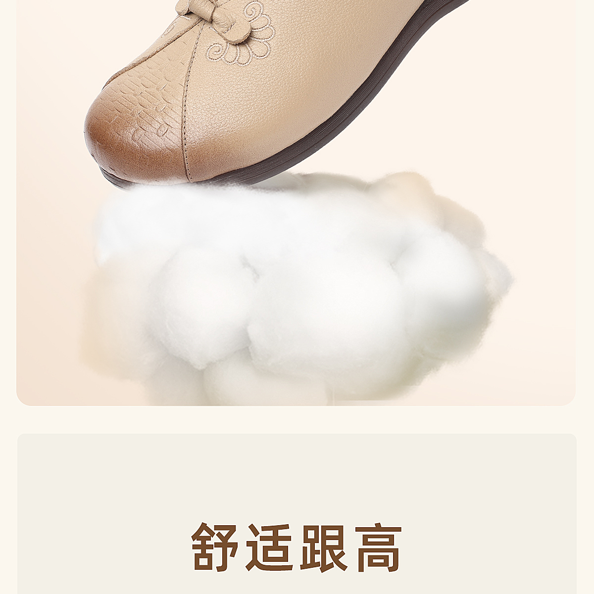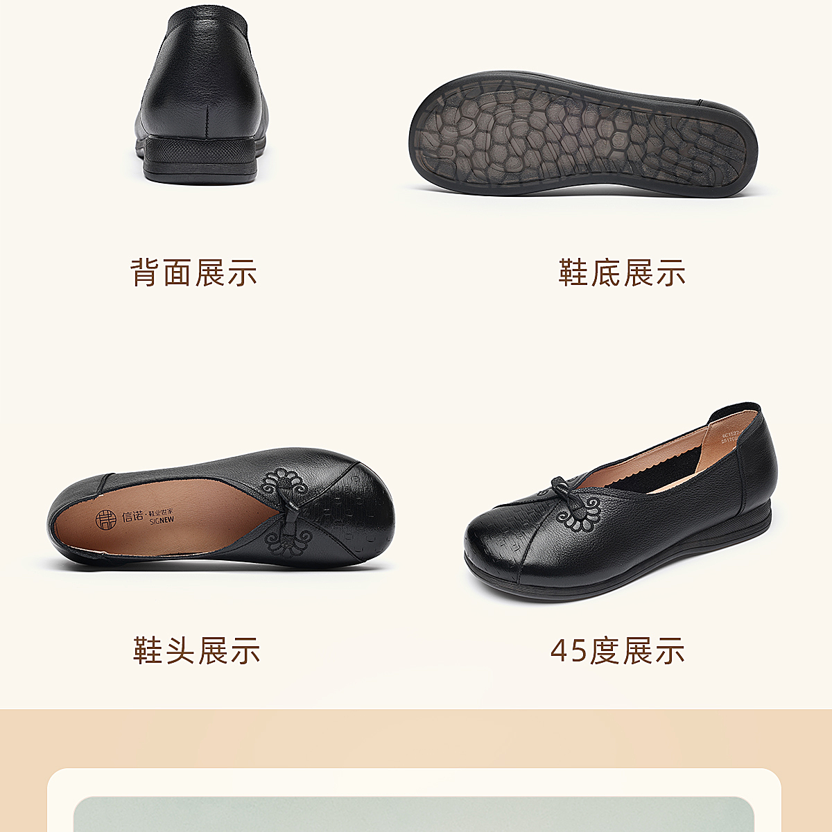 真皮妈妈鞋女休闲风平底浅口单鞋舒适软底一脚蹬奶奶鞋6C1527-5