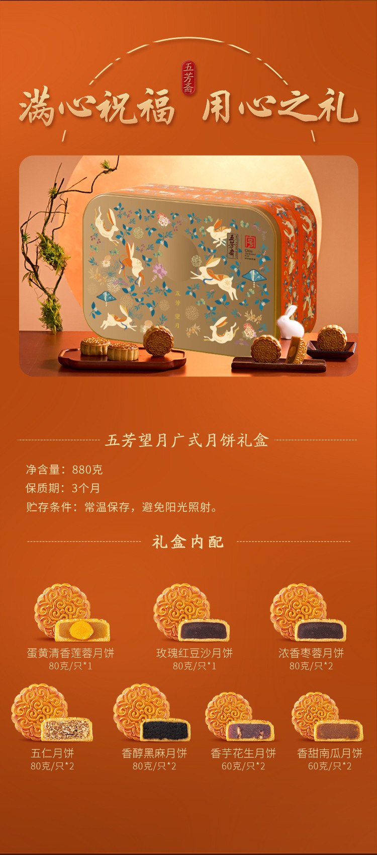 五芳斋五芳望月月饼礼盒880g【包邮直发】