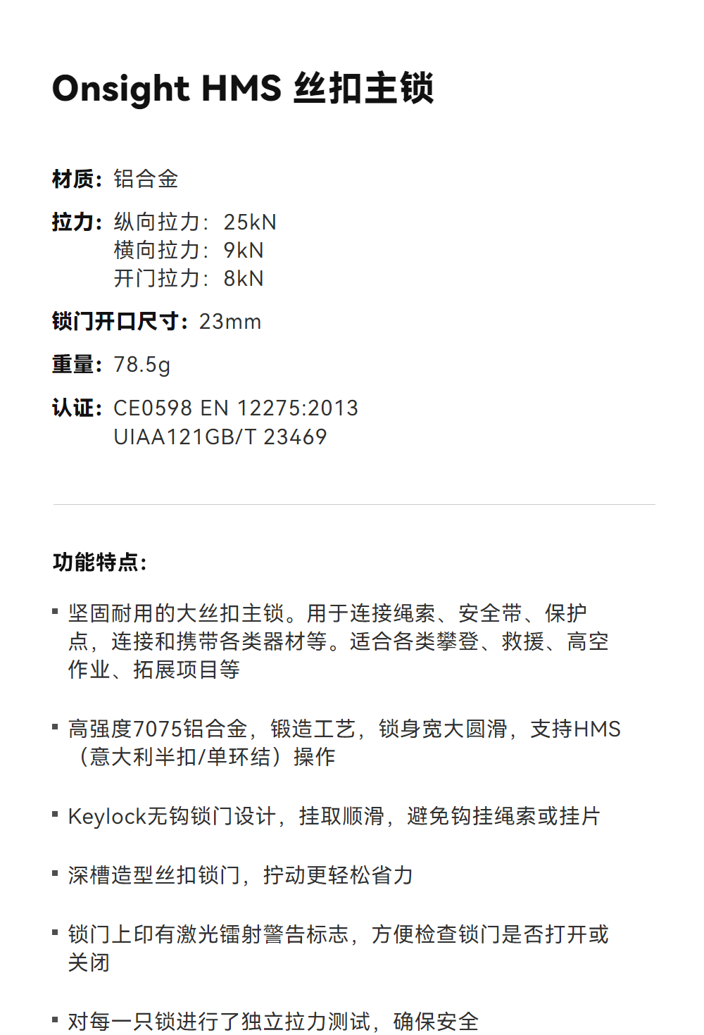 KAILAS凯乐石 Onsight HMS 丝扣主锁 EC206