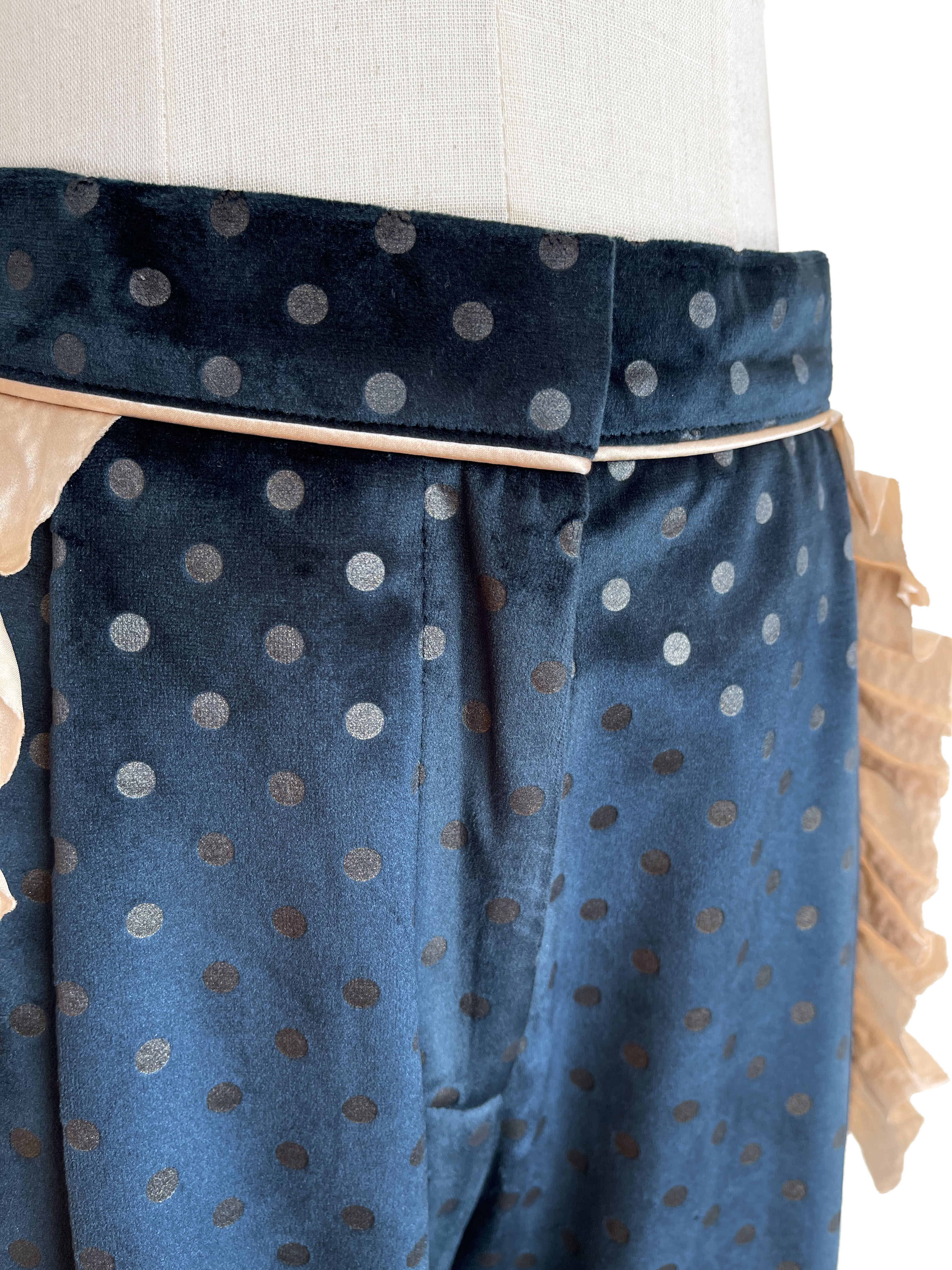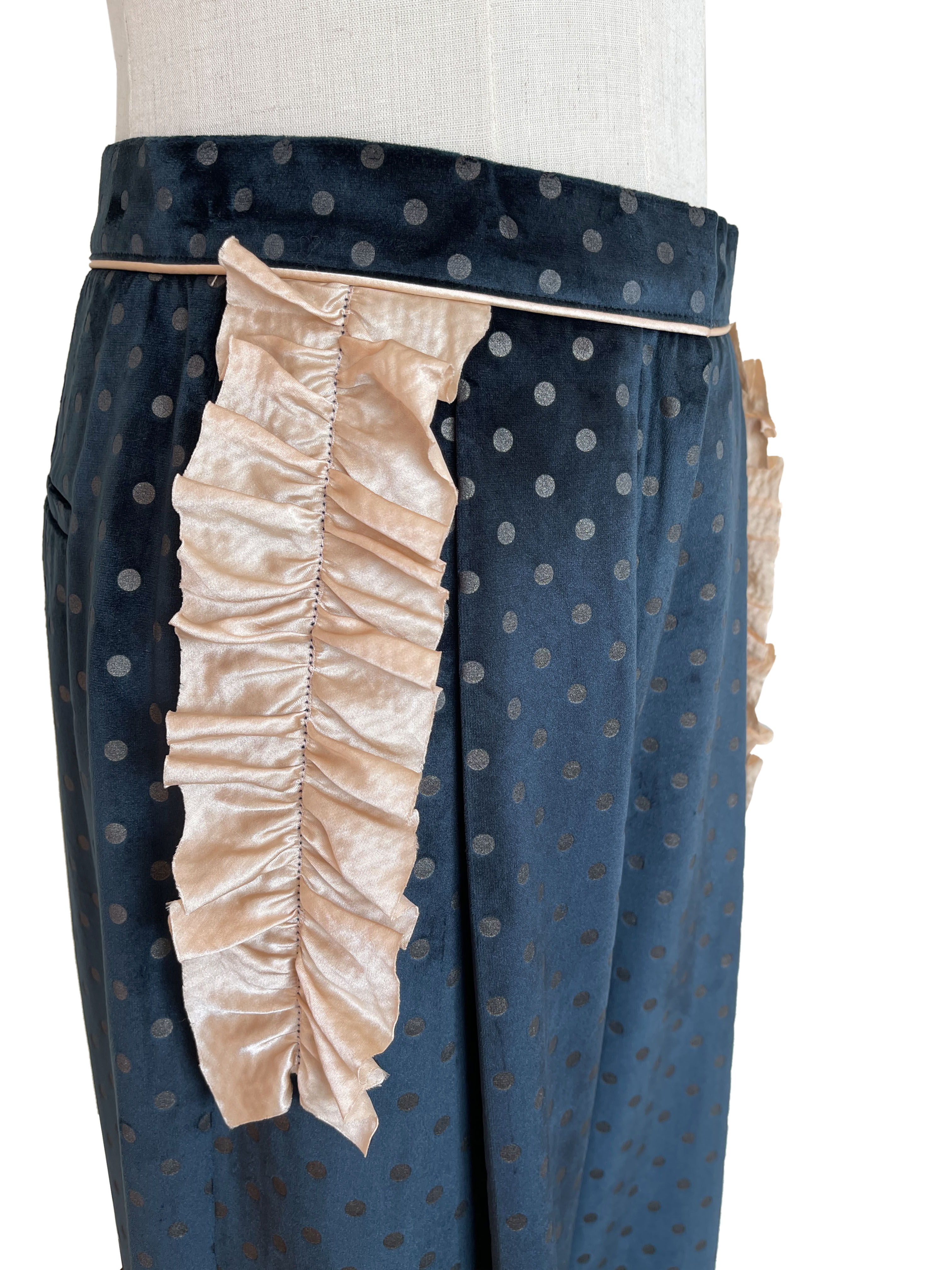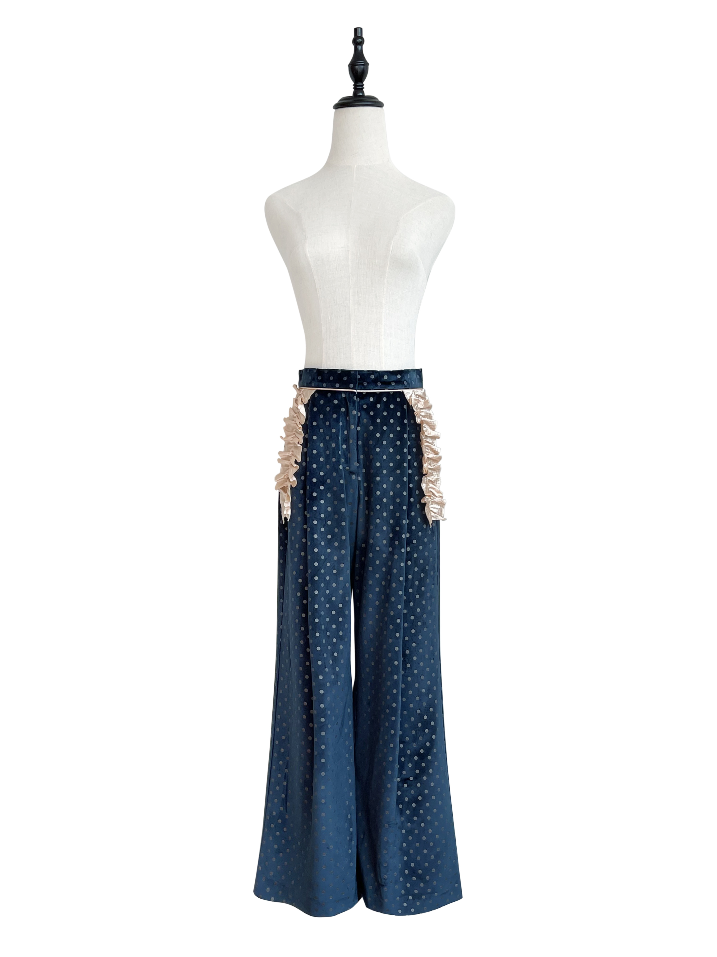 TYNVIE 花边袋口阔腿裤 - 蓝丝绒