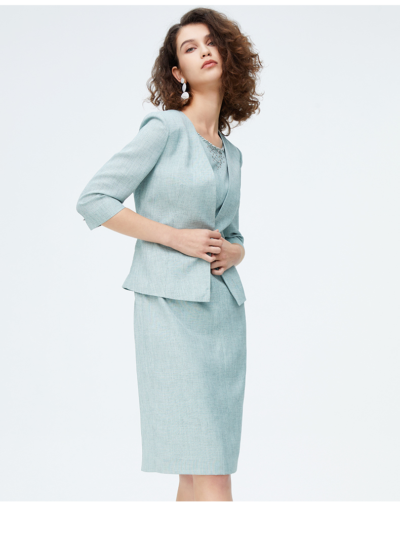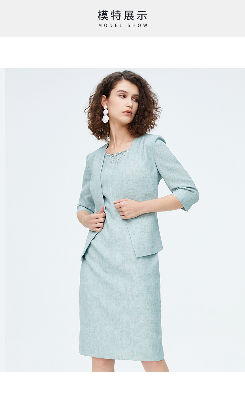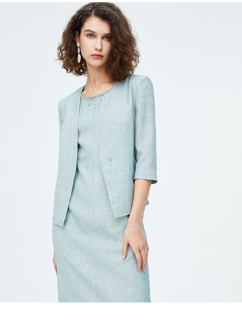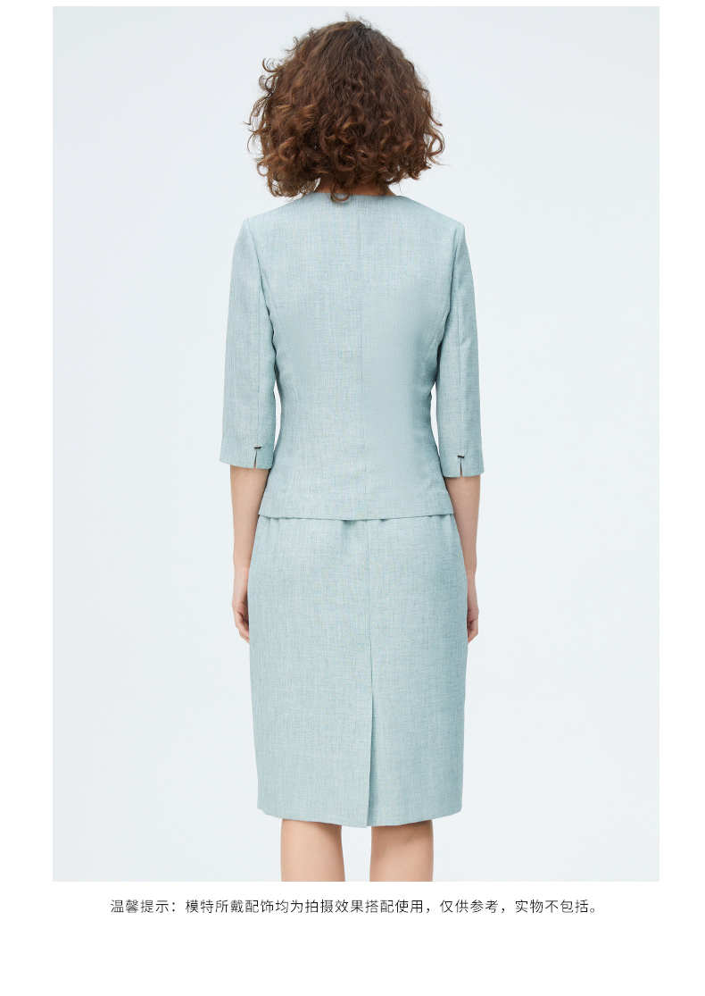 皮尔卡丹女装春季新款简约淑女青色西服上衣P4219U4055G1