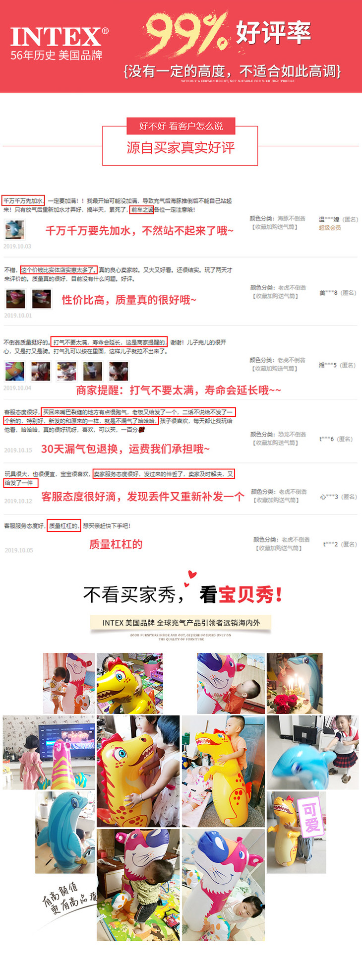 「INTEX不倒翁充气 灵活摇摆」儿童充气动物不倒翁玩具 拳击袋锻炼身体 发泄情绪