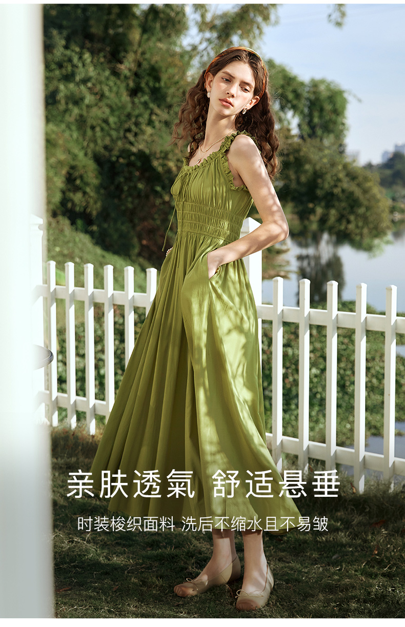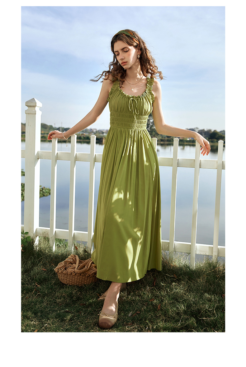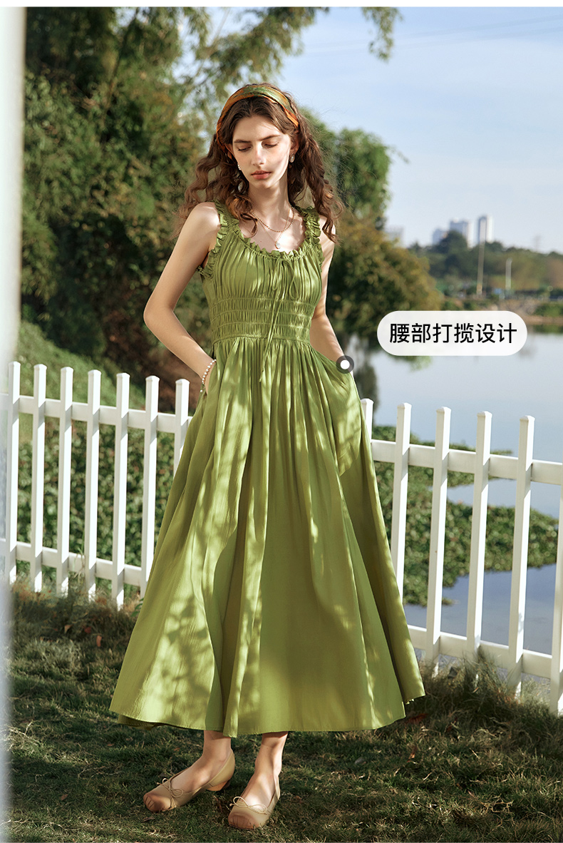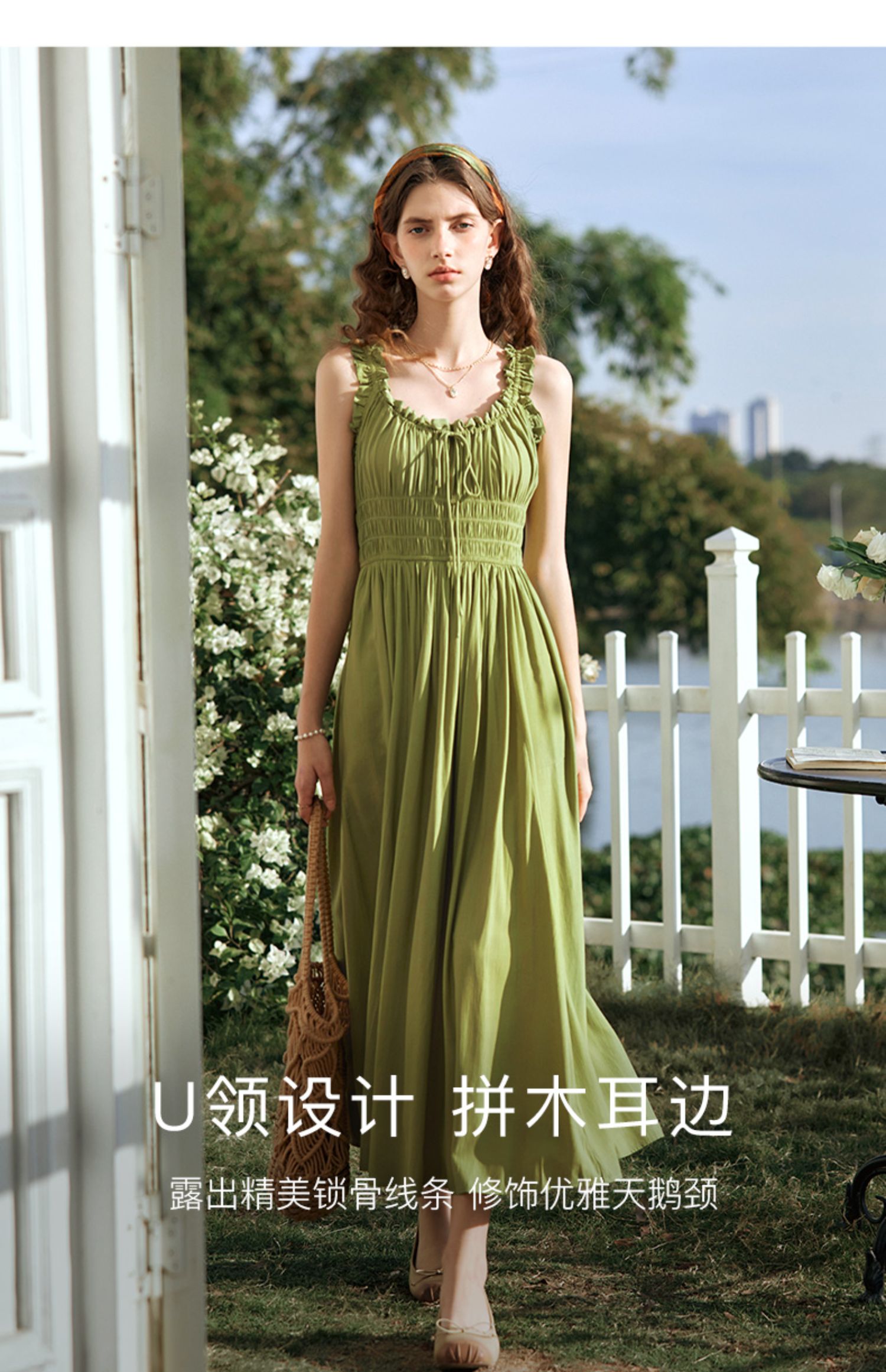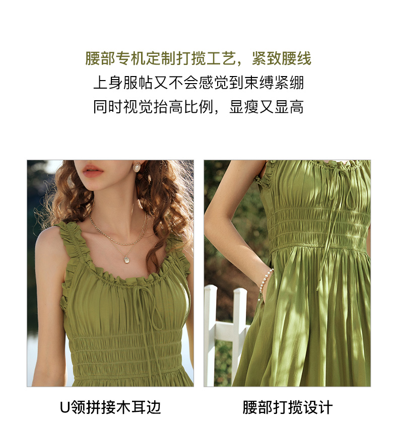 OLrain欧芮儿法式连衣裙女早春2024年新款U领收腰显瘦无袖长裙
