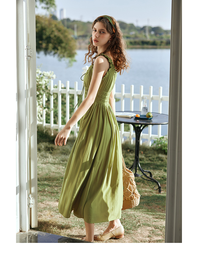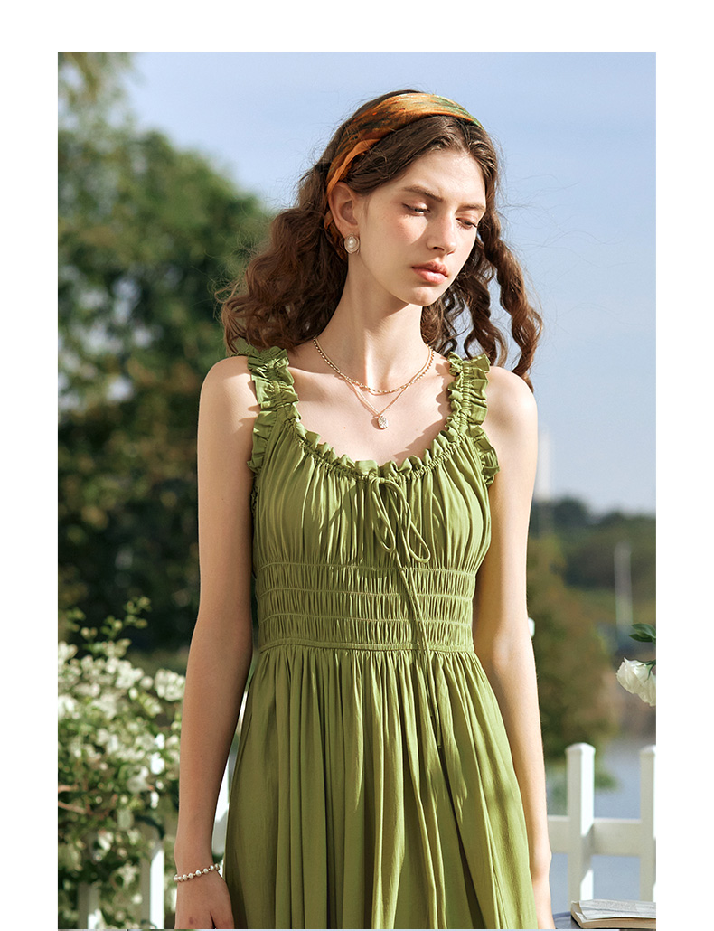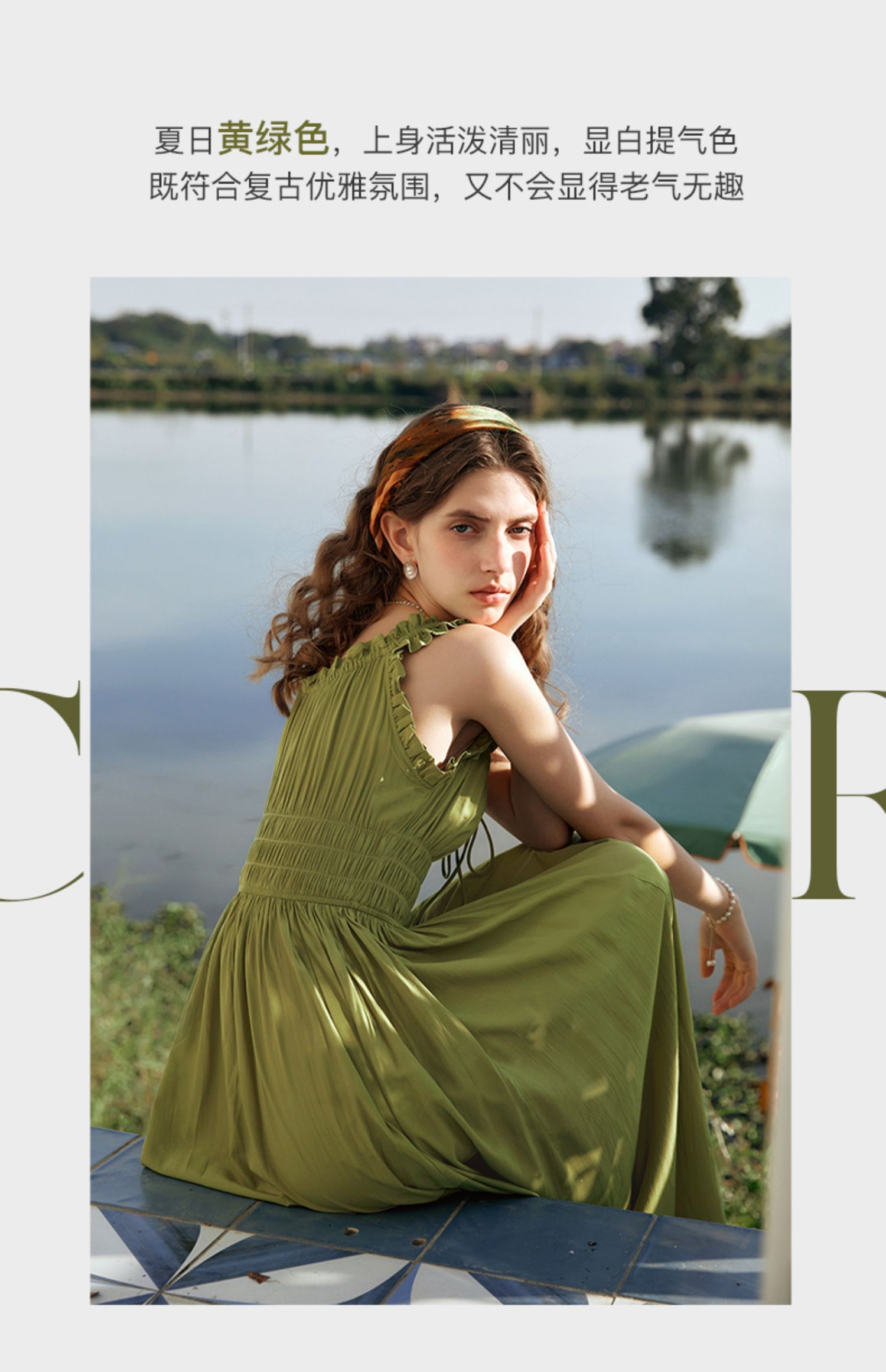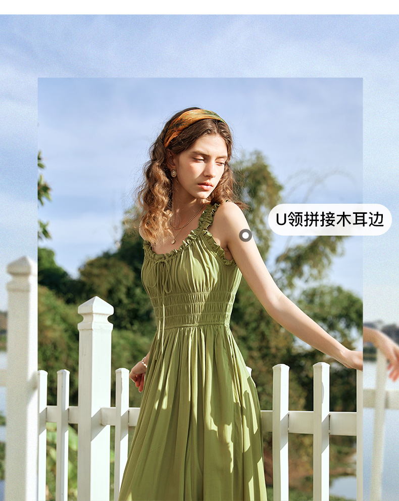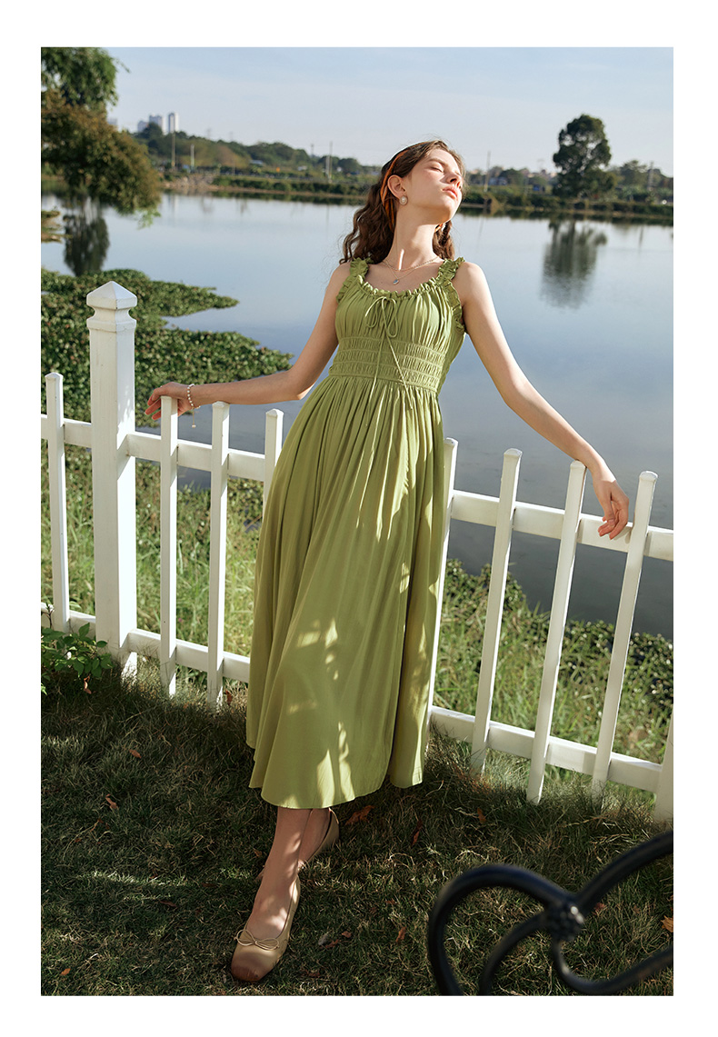 OLrain欧芮儿法式连衣裙女早春2024年新款U领收腰显瘦无袖长裙