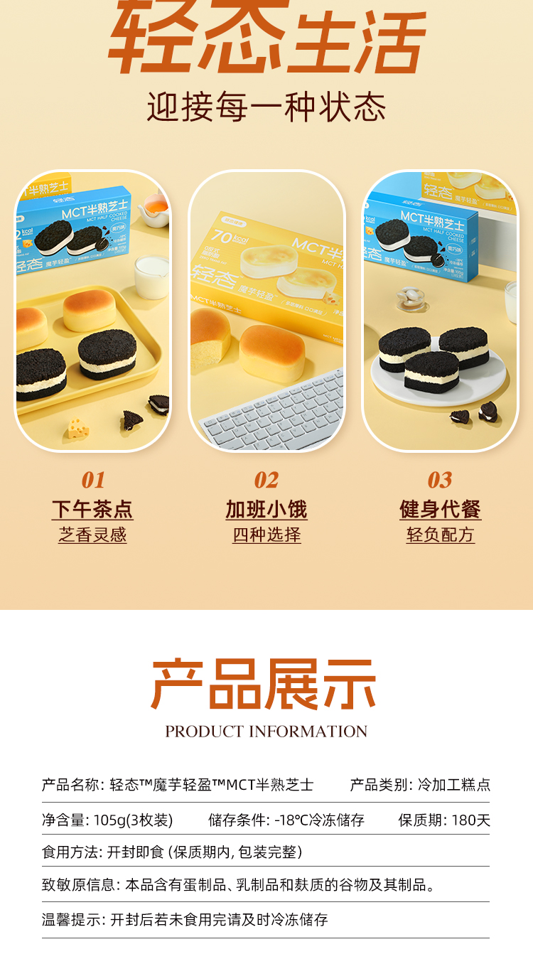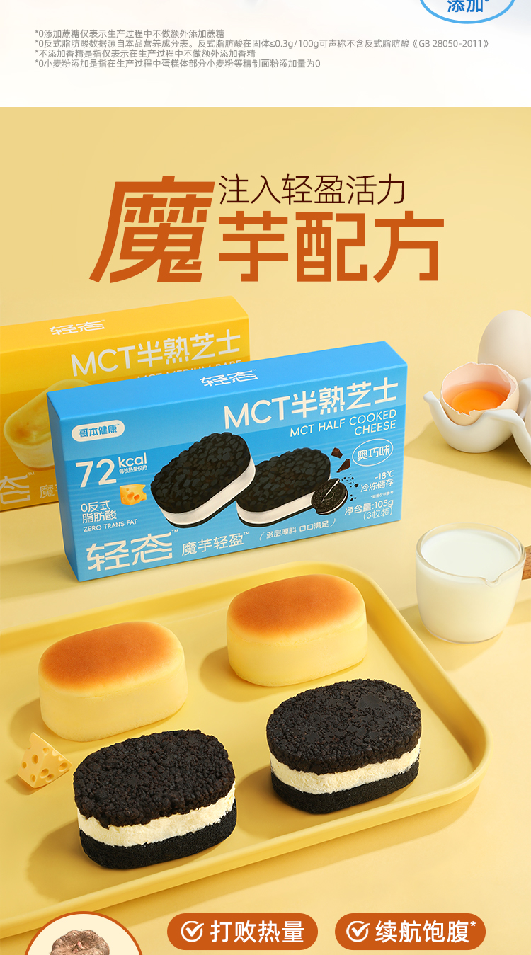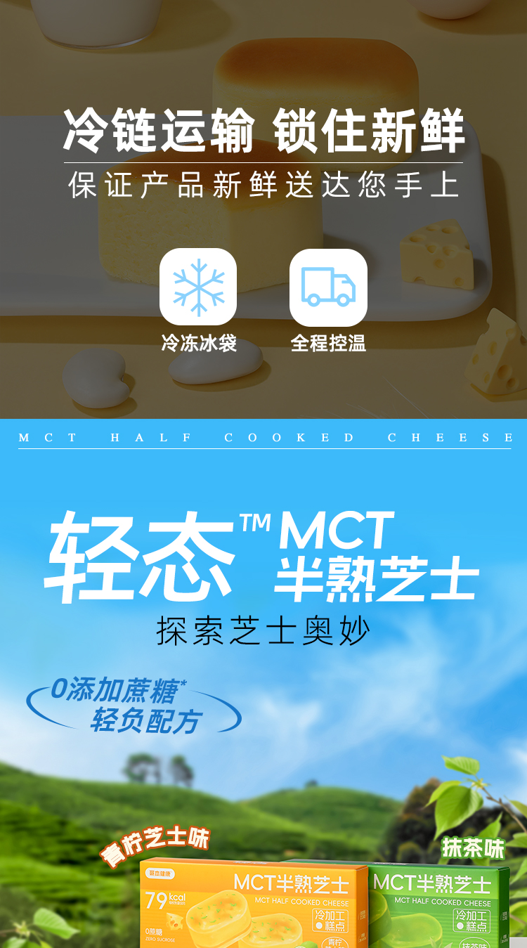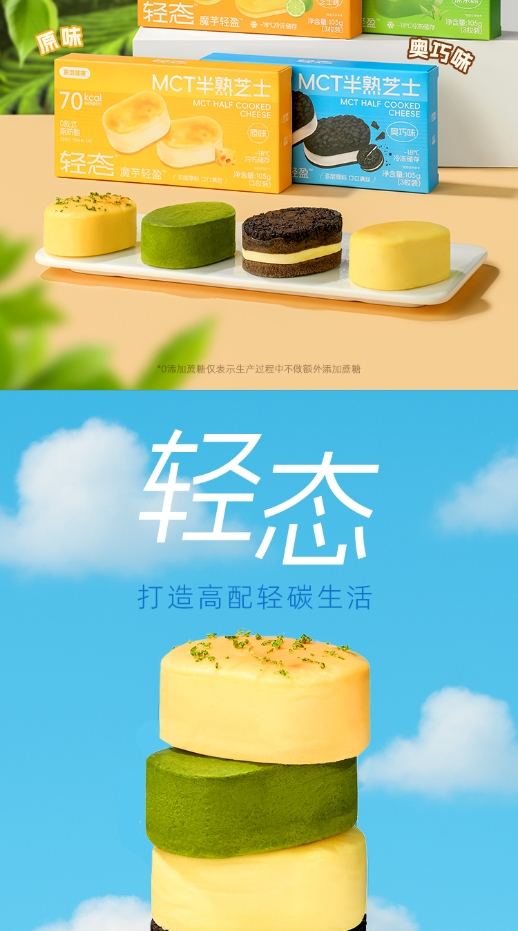 【❄️双12史低价】【💘加送1盒】【冷链产品不支持无理由退货】哥本™轻态™魔芋轻盈™MCT半熟芝士(原味/奥巧味/抹茶味/青柠芝士味)105克(35克*3枚)/盒