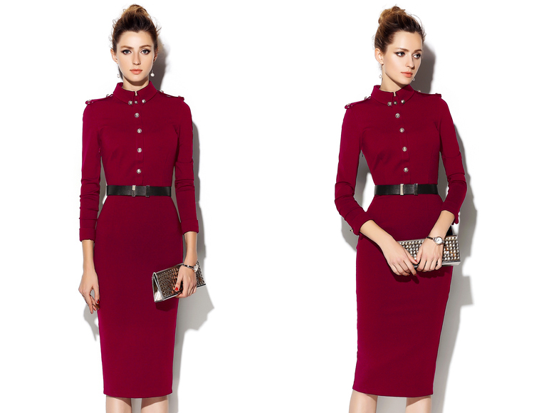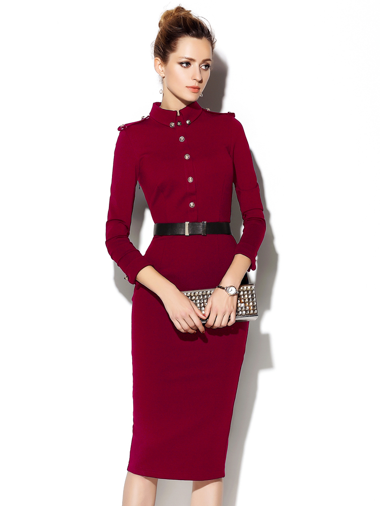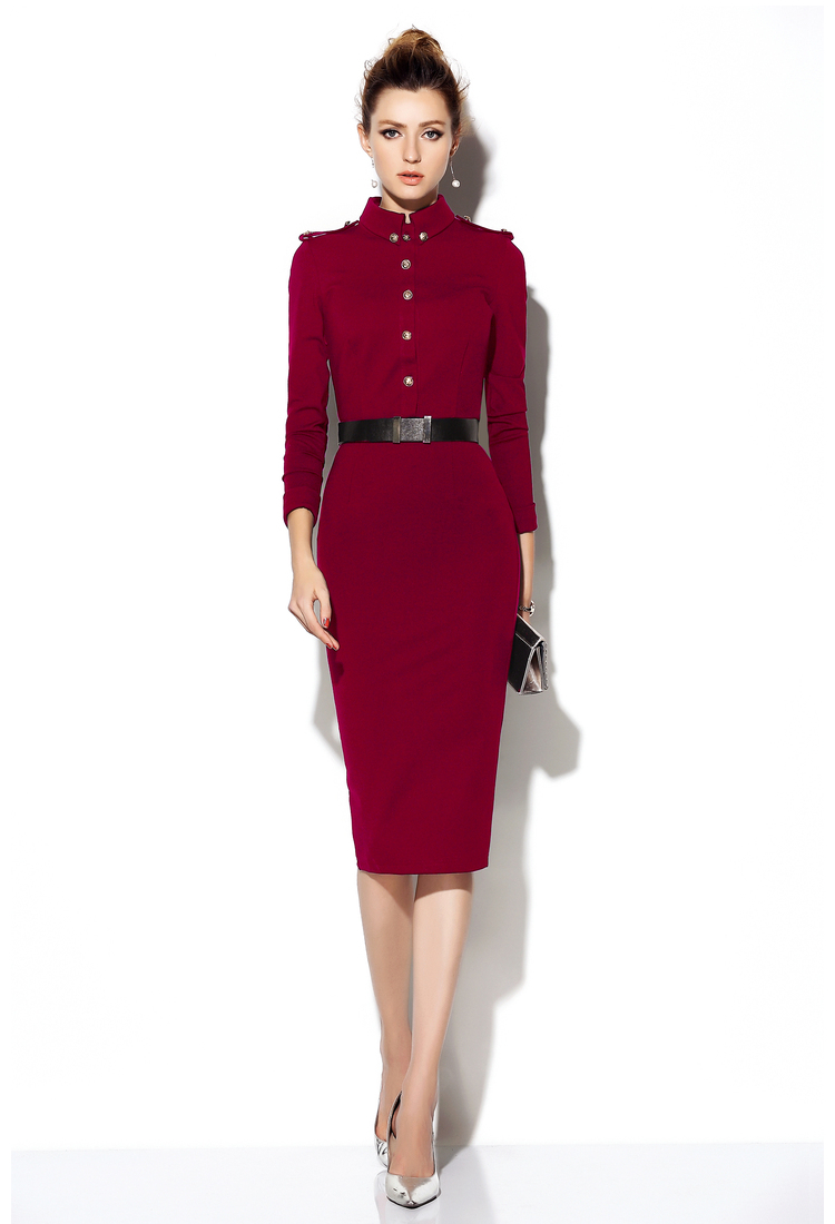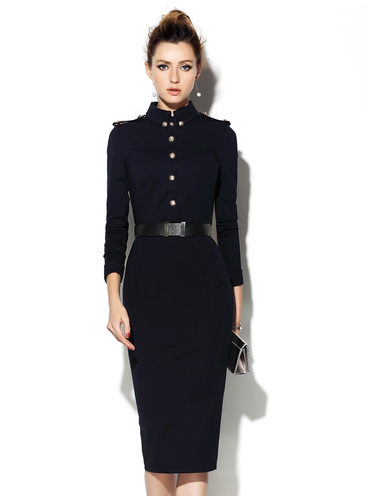 J7381515颈袖添香女气质名媛军装御姐风收腰显瘦紧身包臀连衣裙J7381515