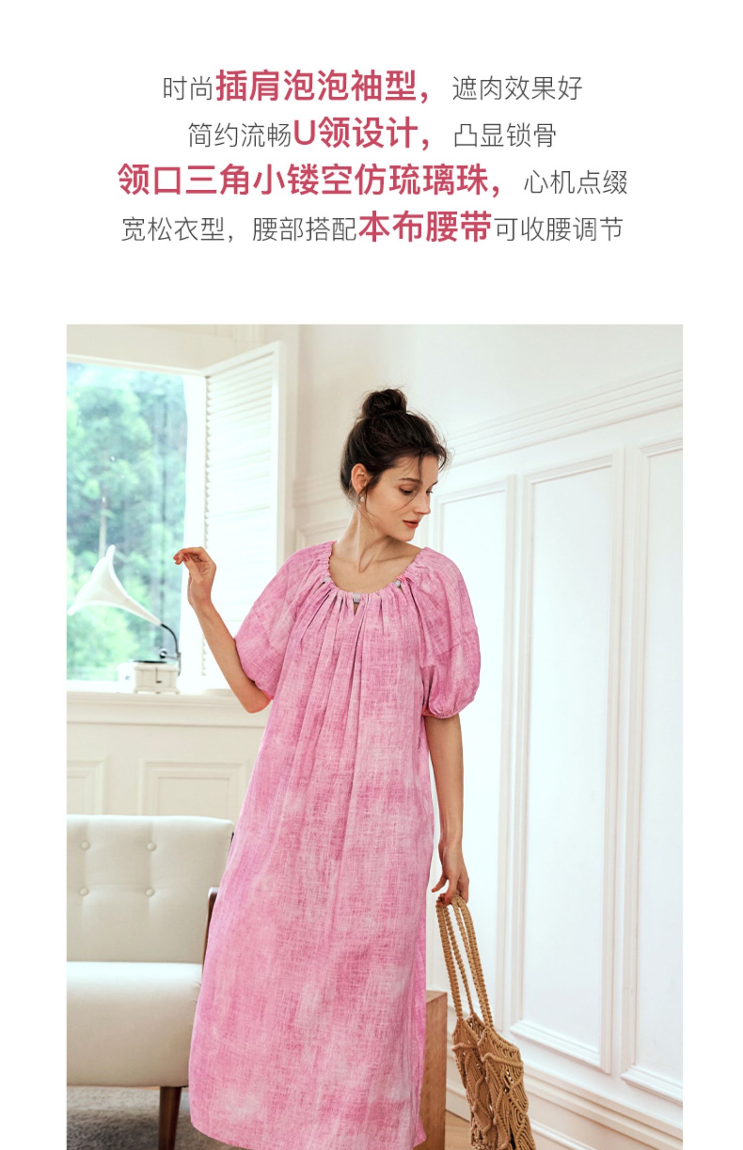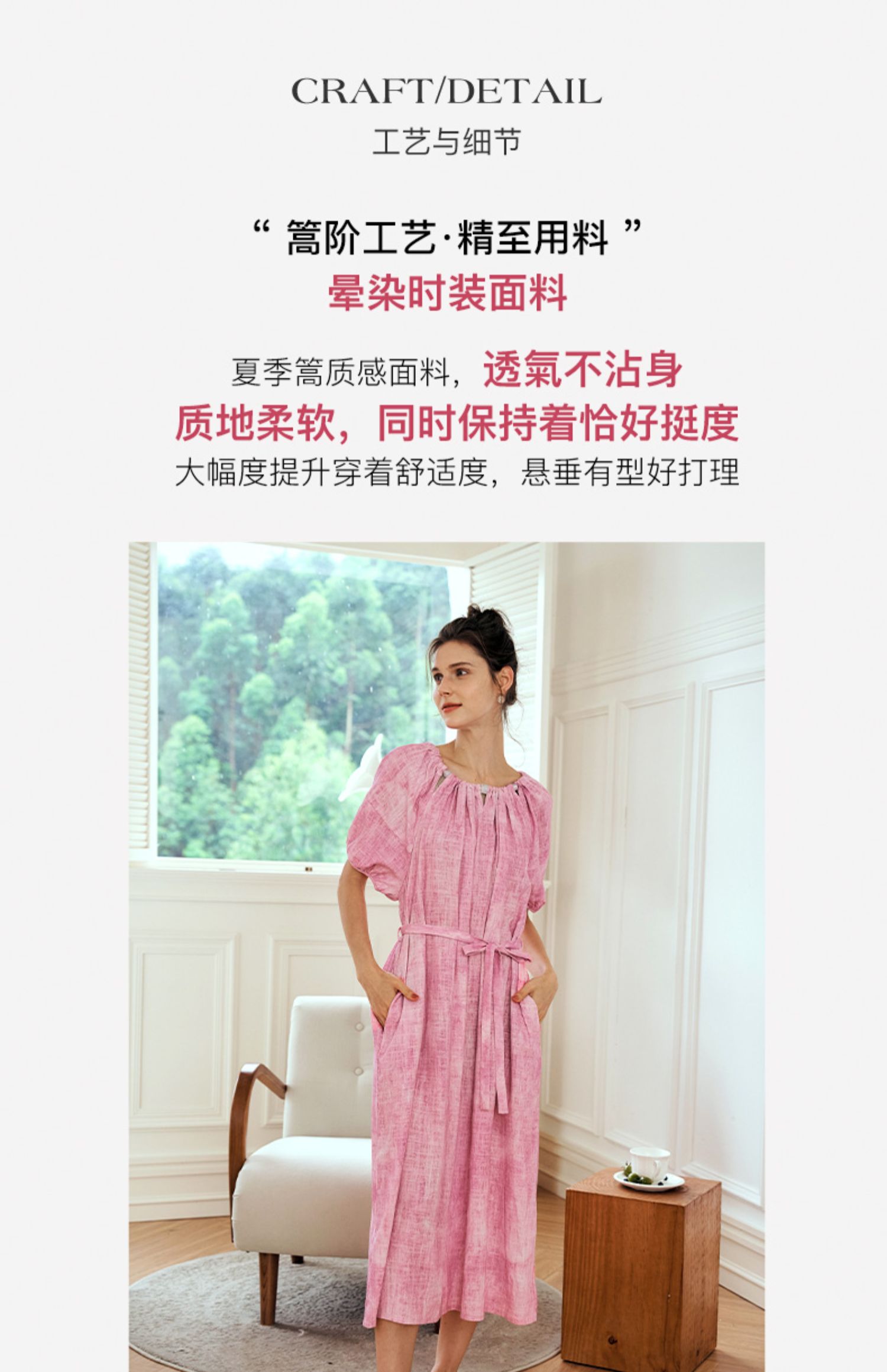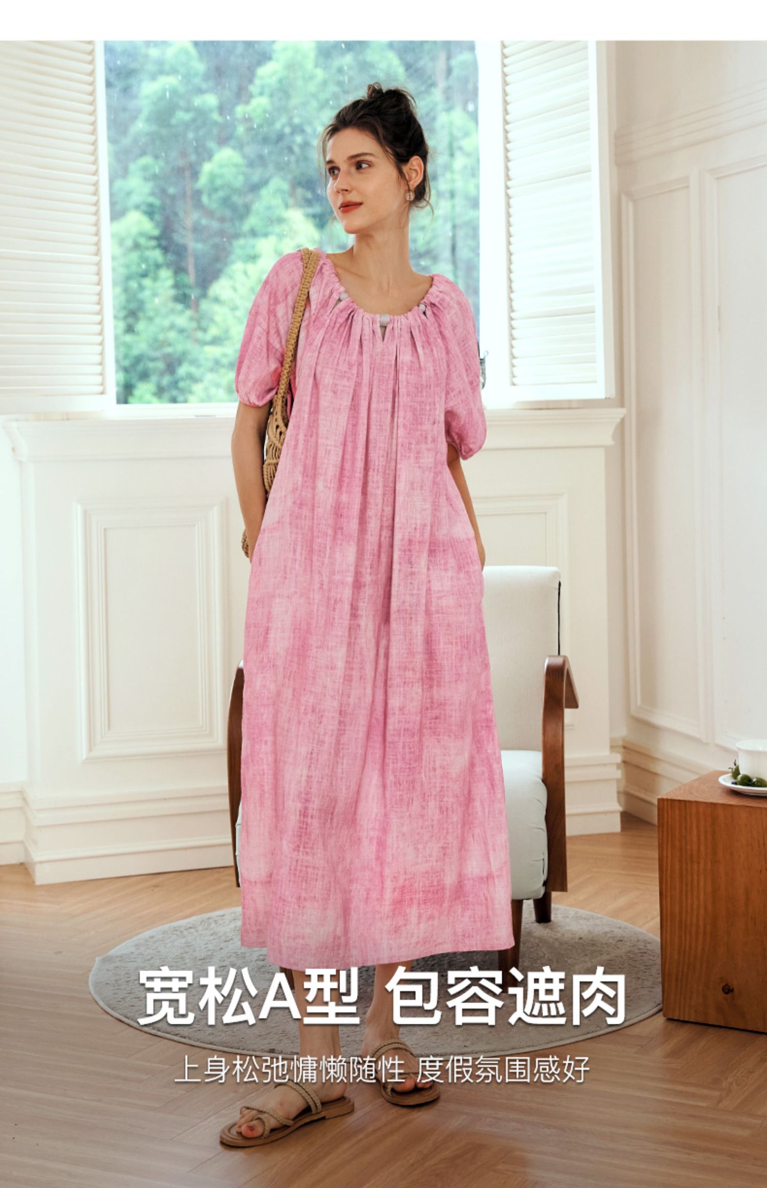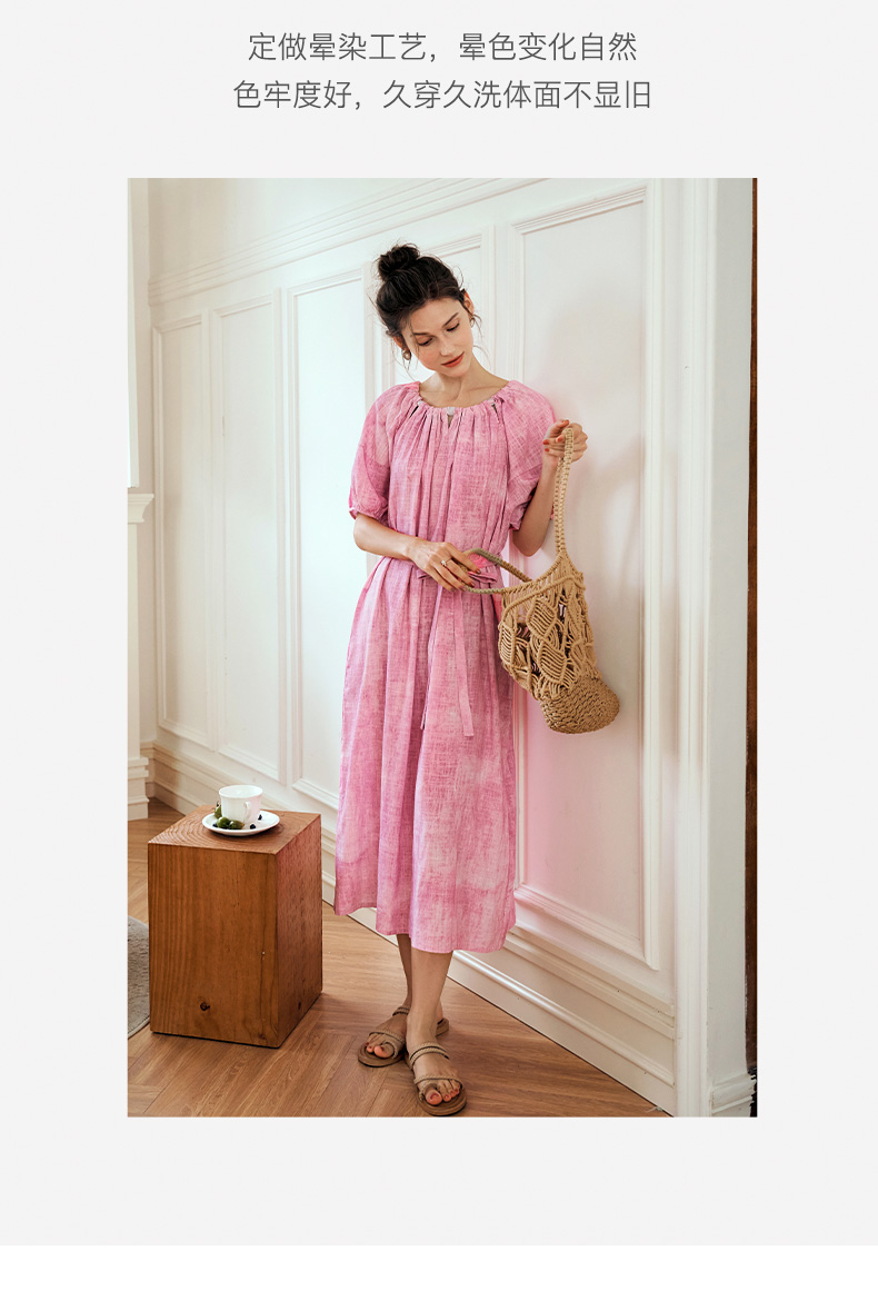 OLrain欧芮儿法式连衣裙女夏季2024年新款慵懒晕染宽松泡泡袖裙子