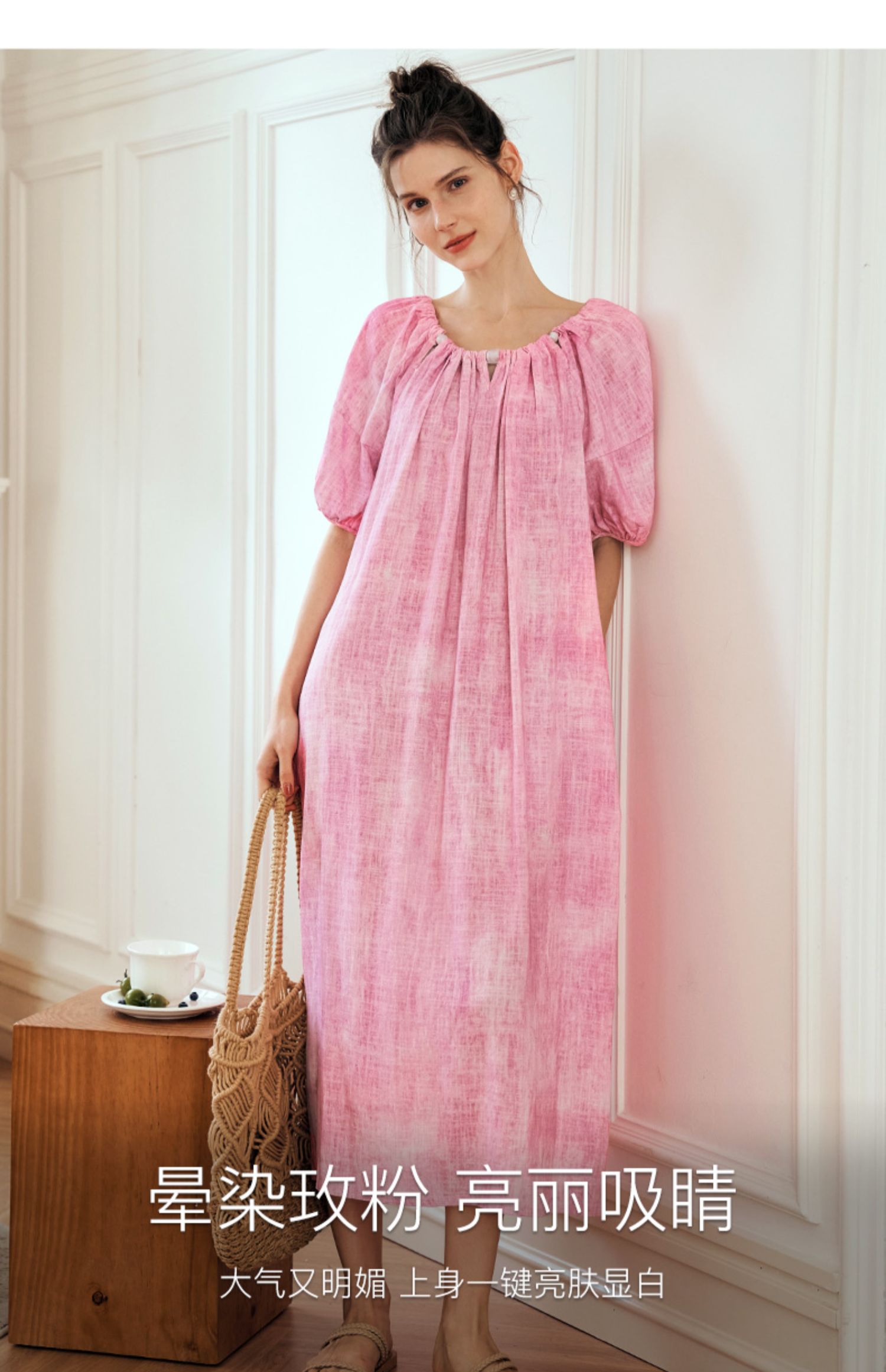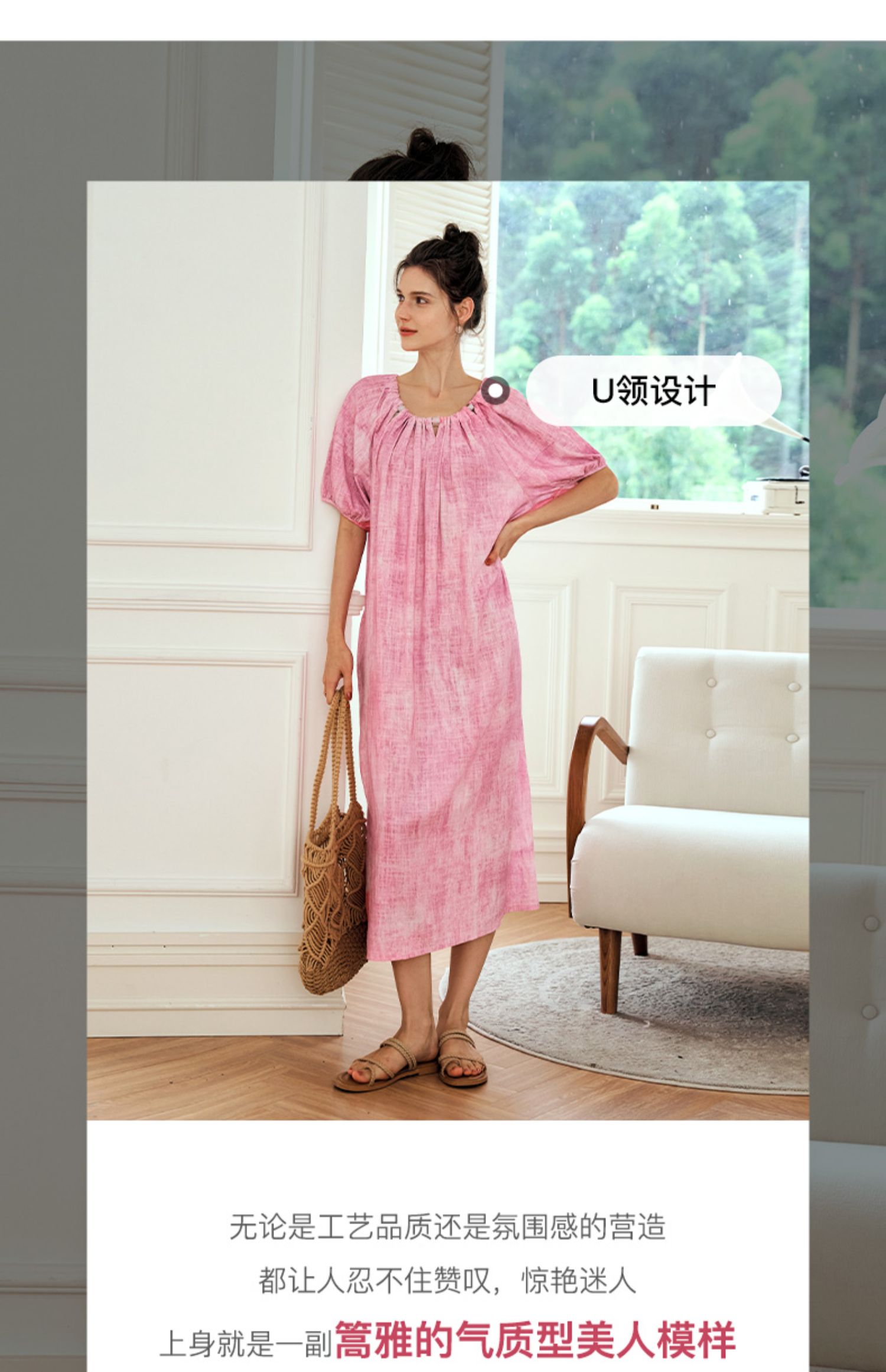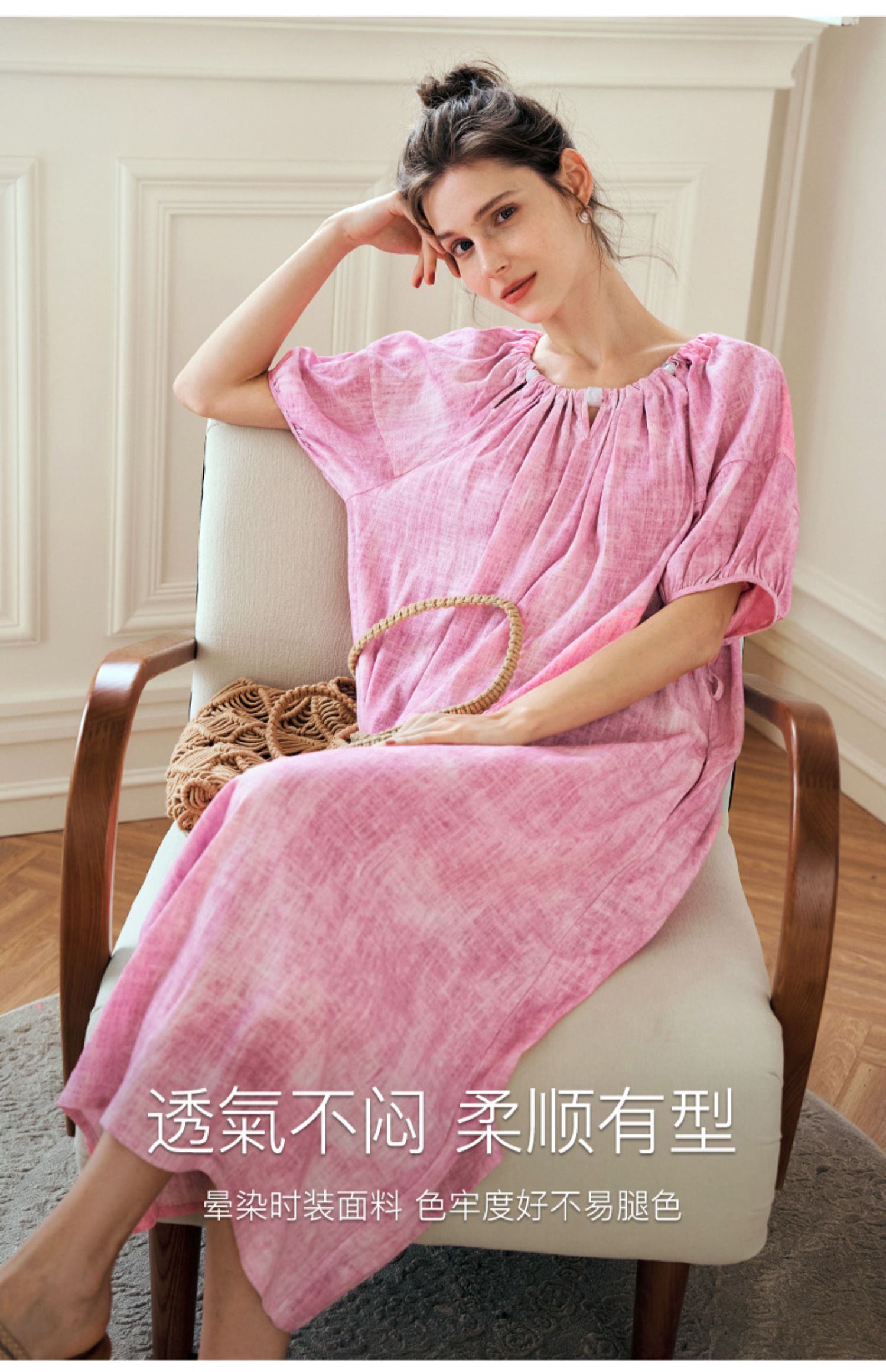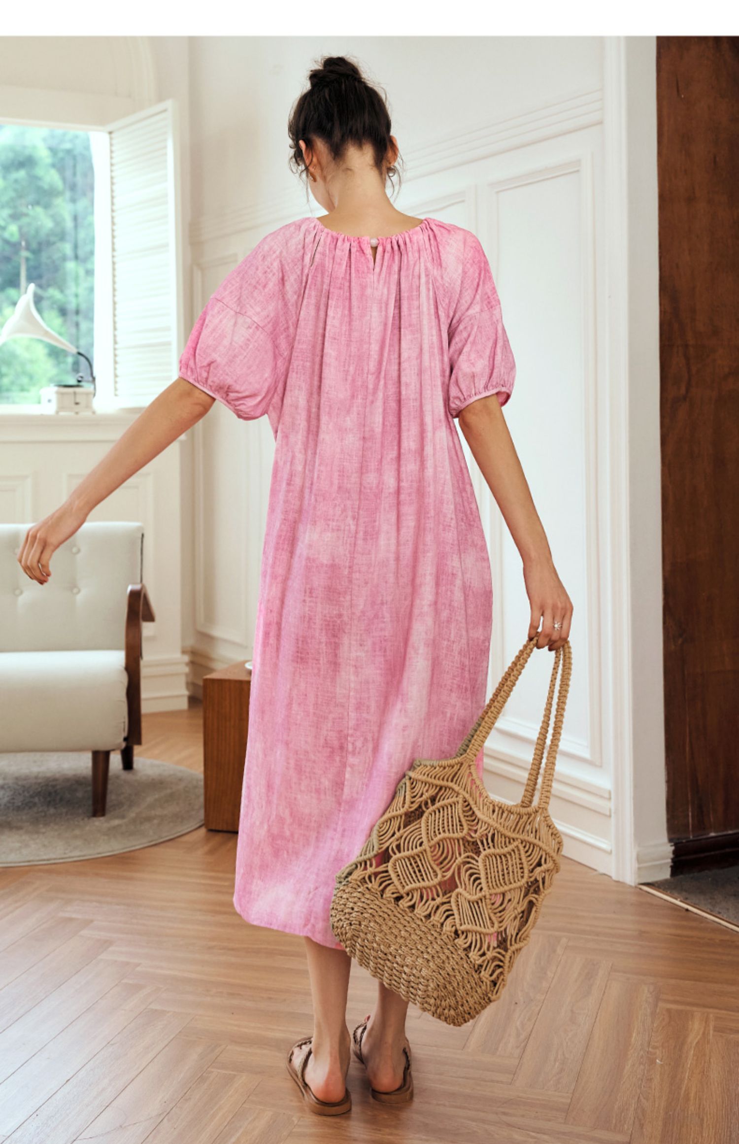 OLrain欧芮儿法式连衣裙女夏季2024年新款慵懒晕染宽松泡泡袖裙子