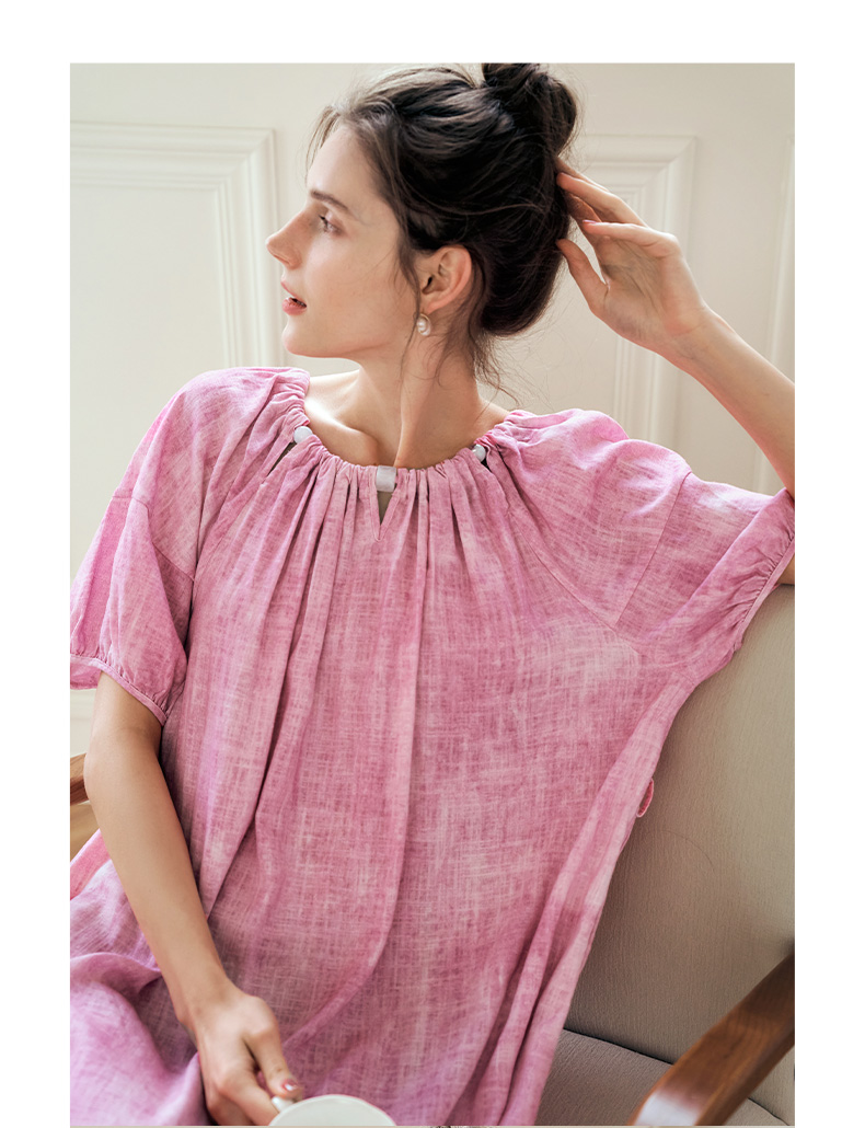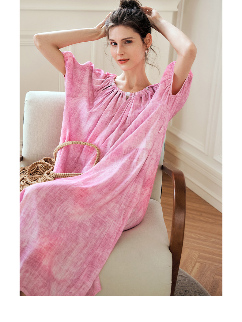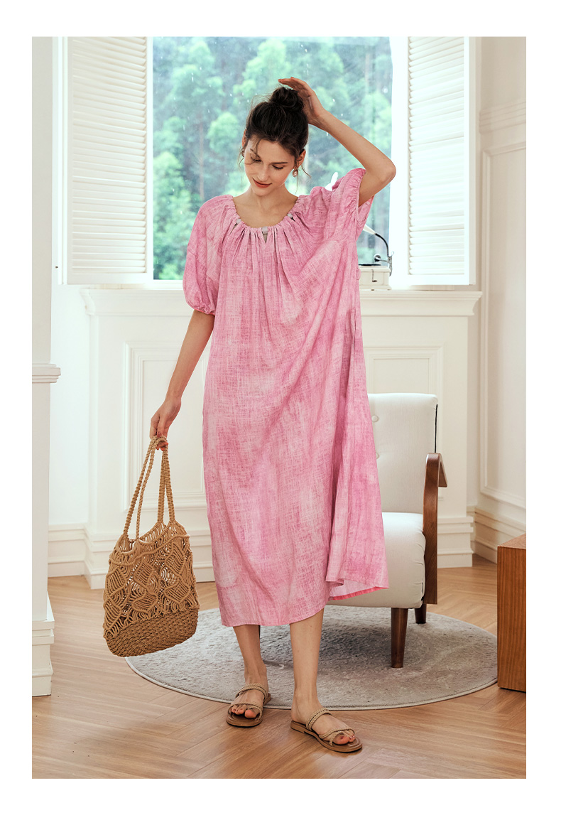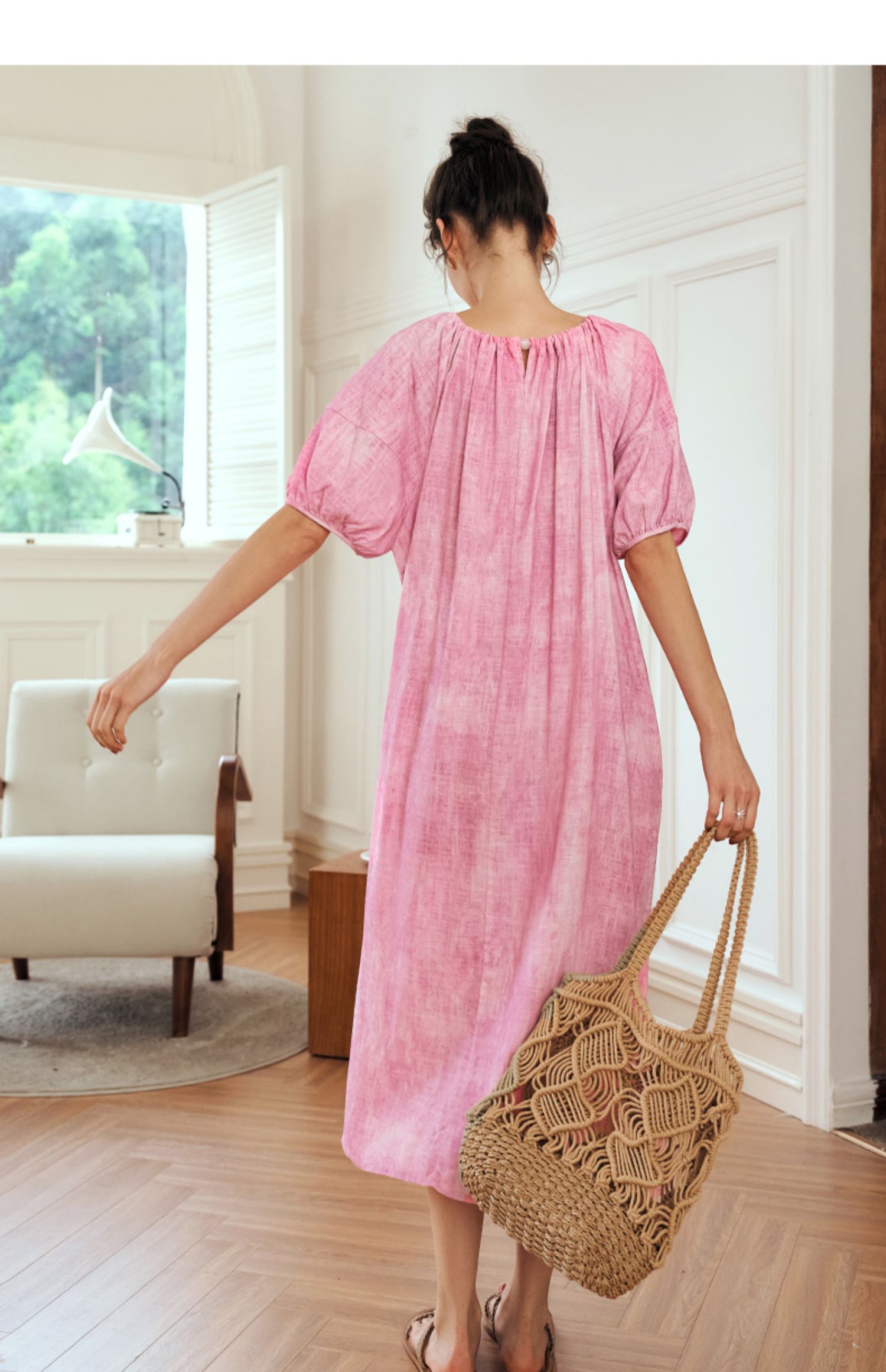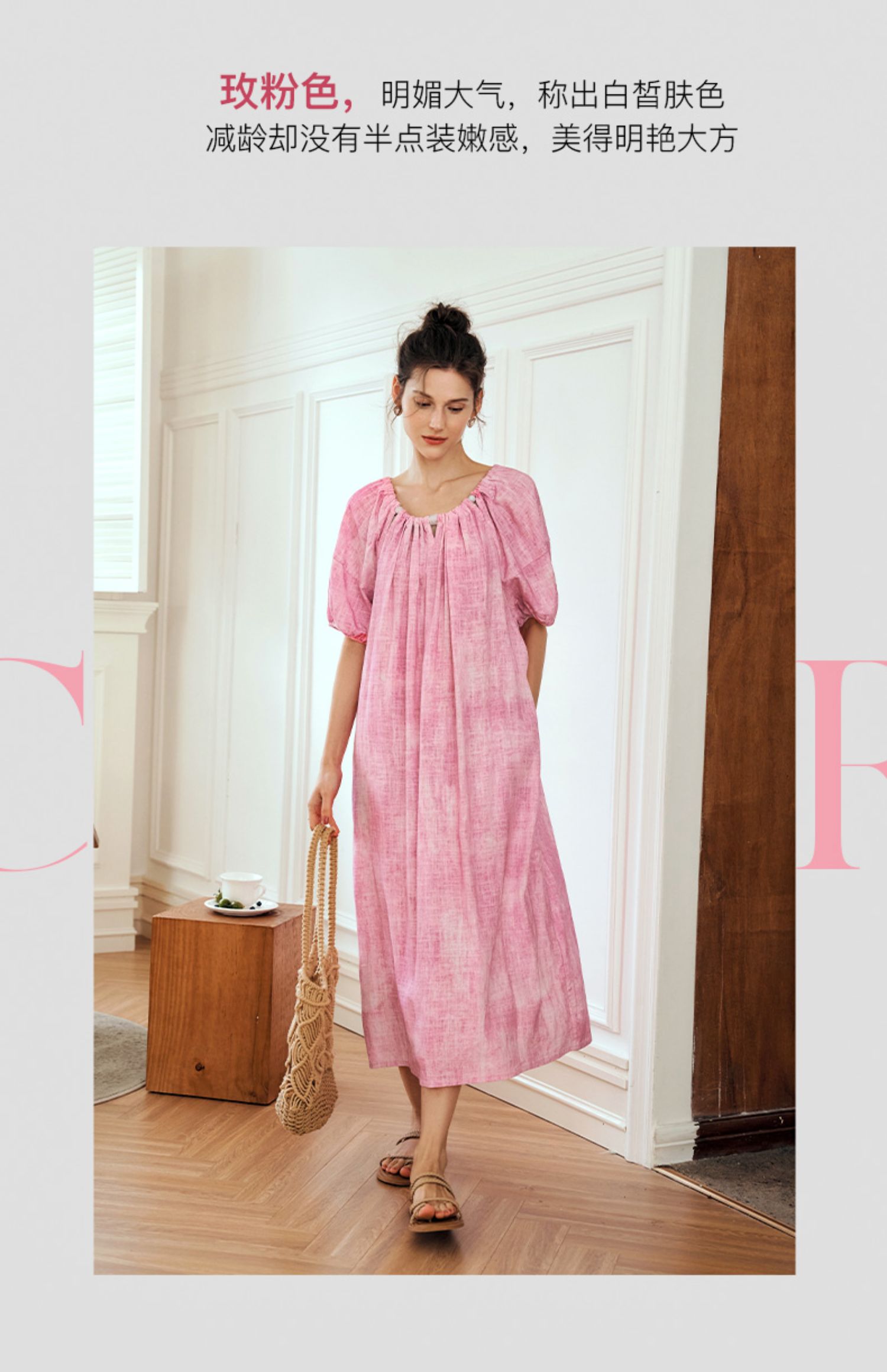 OLrain欧芮儿法式连衣裙女夏季2024年新款慵懒晕染宽松泡泡袖裙子
