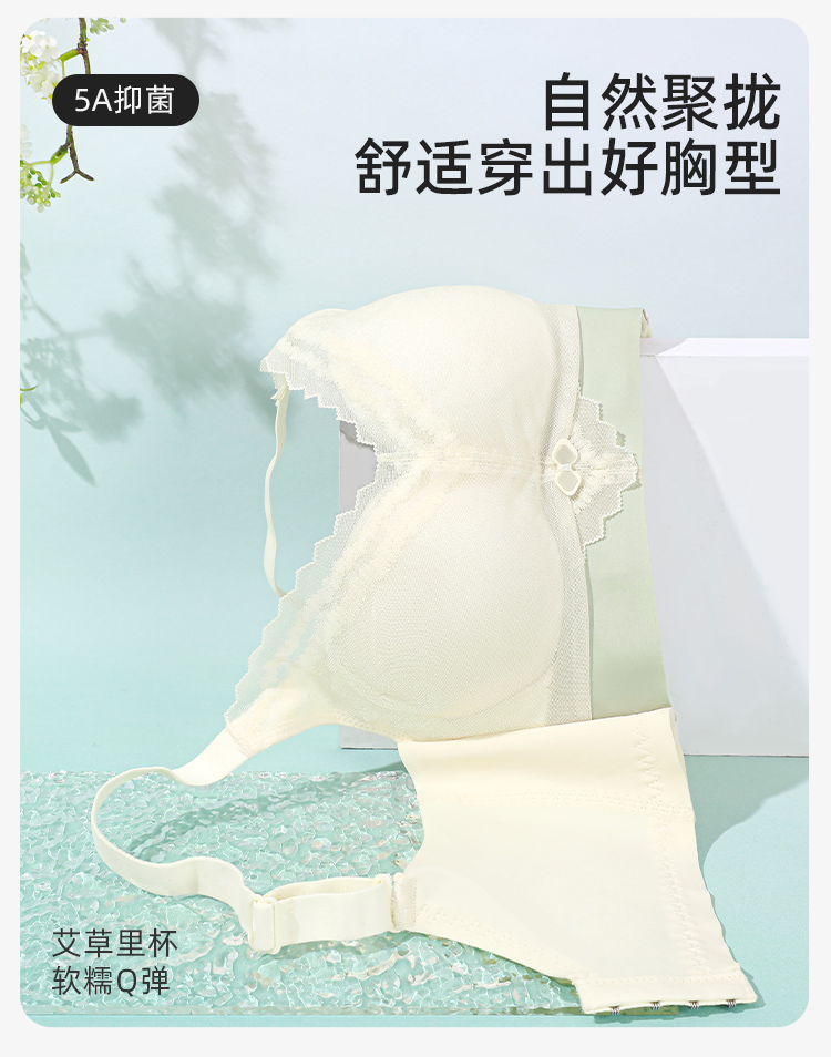 【无侧骨无钢圈】熳洁儿 小胸专属舒适聚拢5A艾草抑菌里杯花卉蕾丝内衣承托侧收副乳调整文胸24261538
