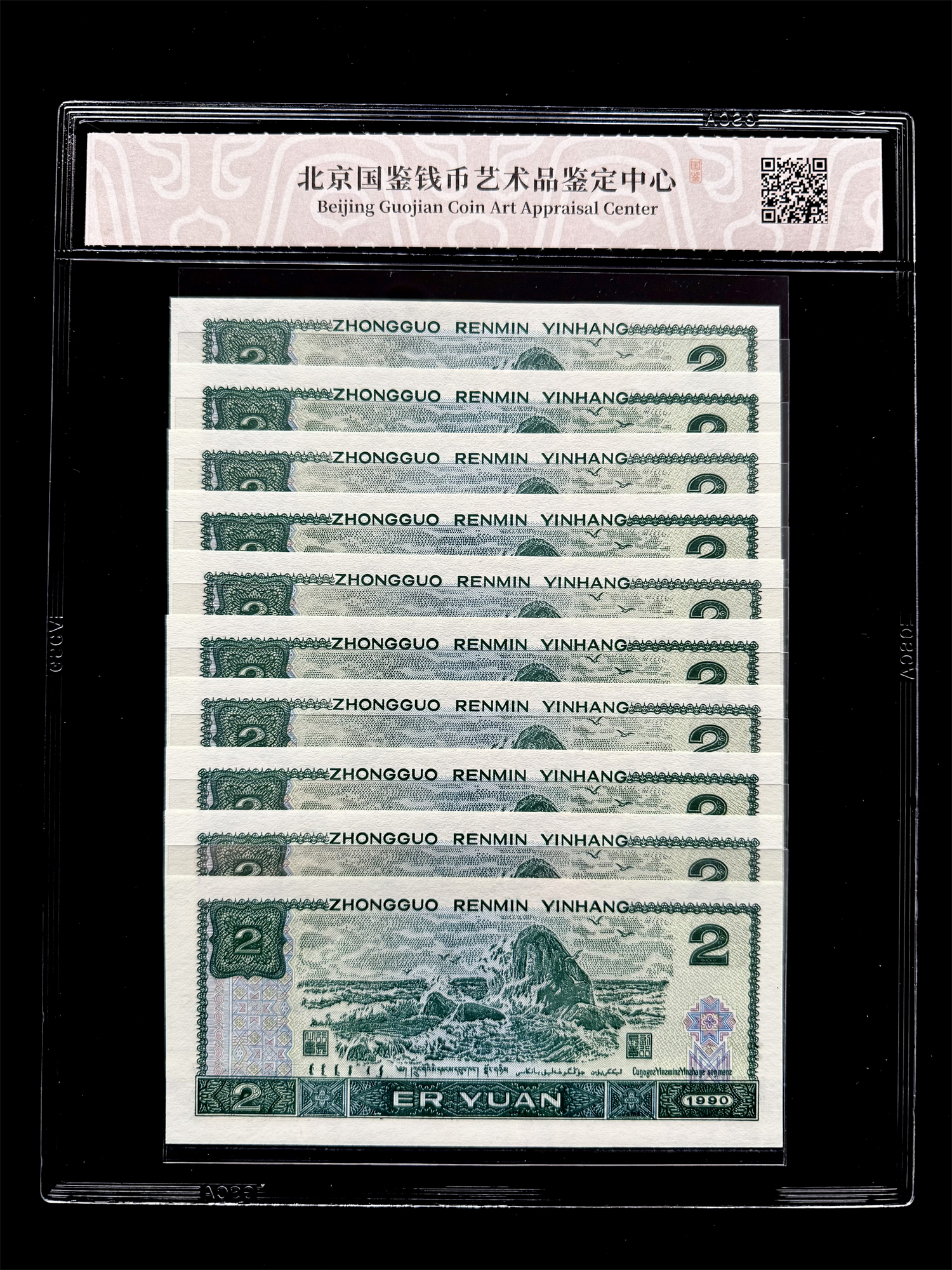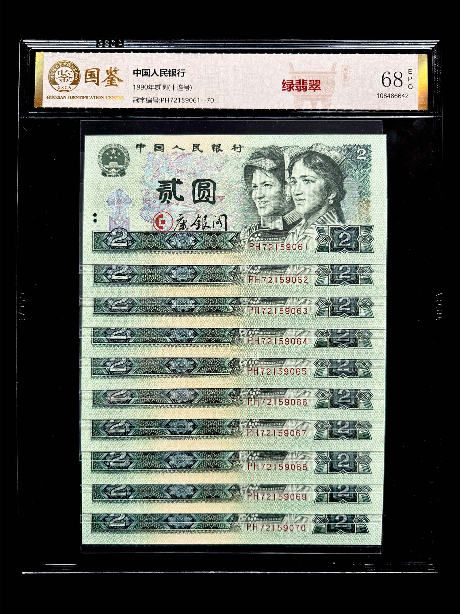 【藏品名称】四版币90版2元绿翡翠十连号
