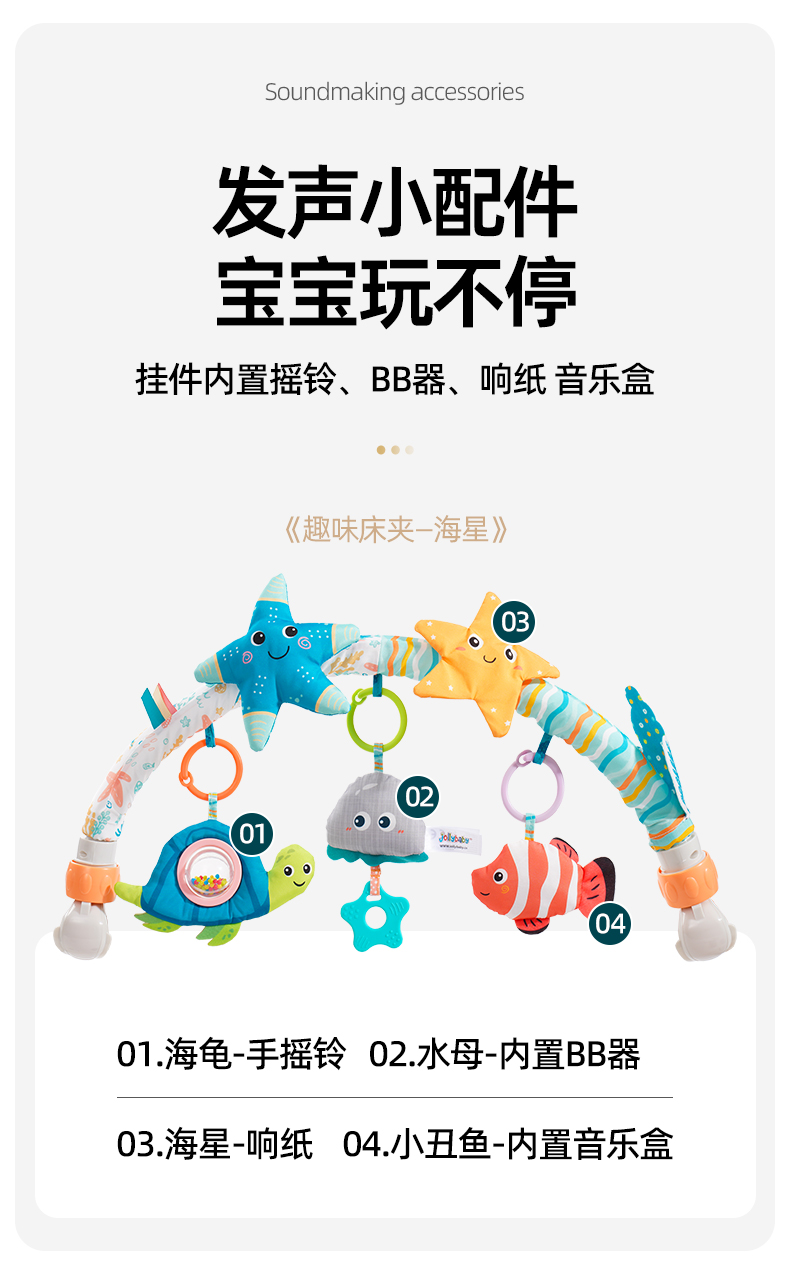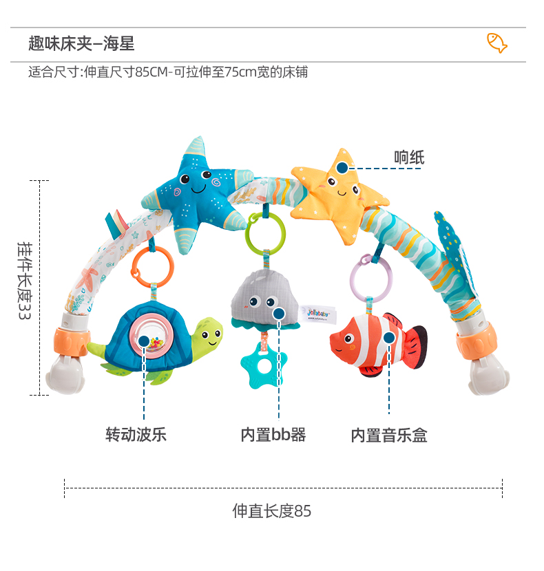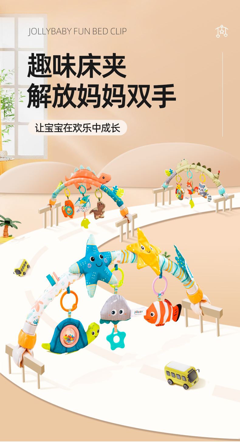 【品牌直供】jollybaby婴儿床摇铃挂件车载推车车夹玩具0-1岁