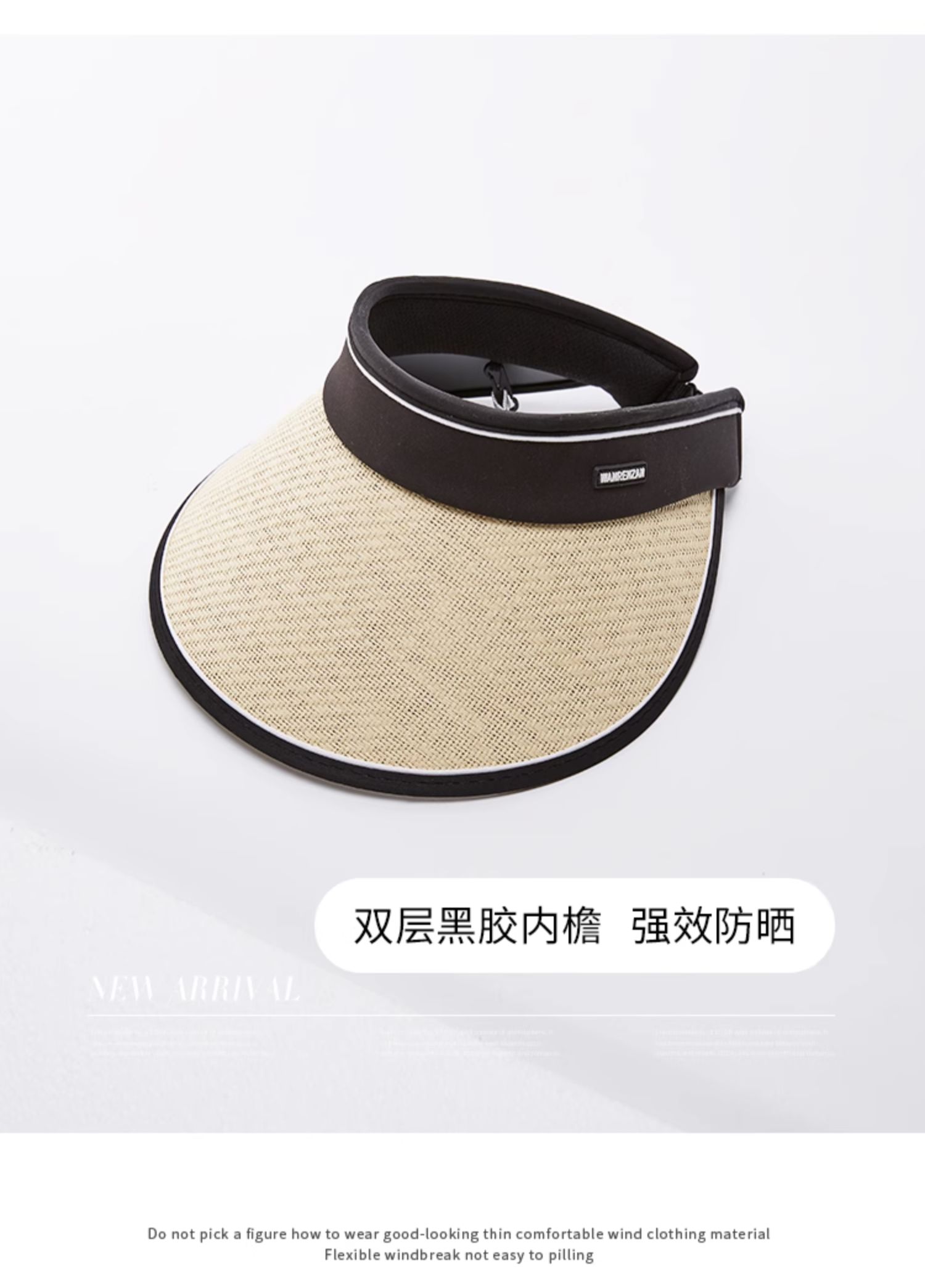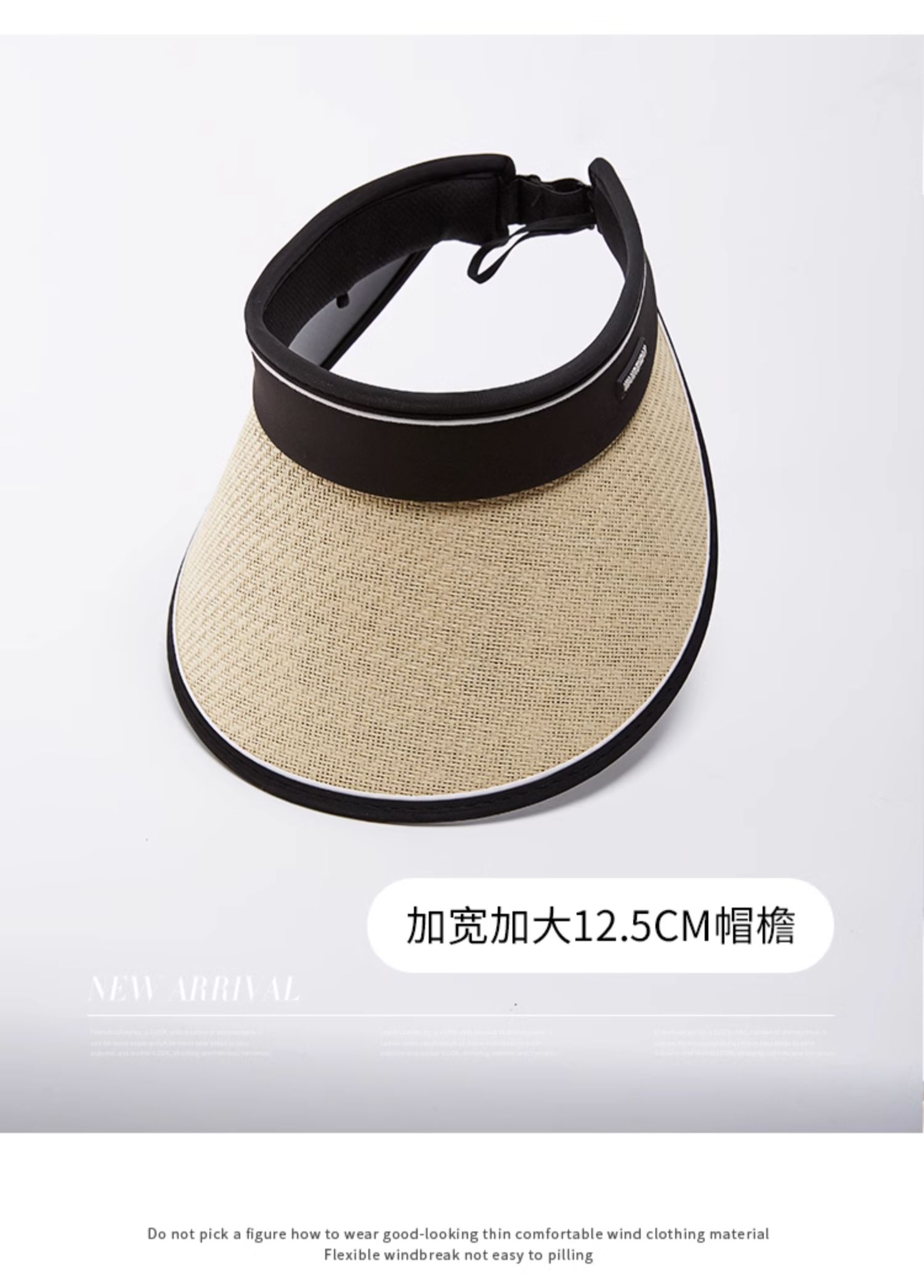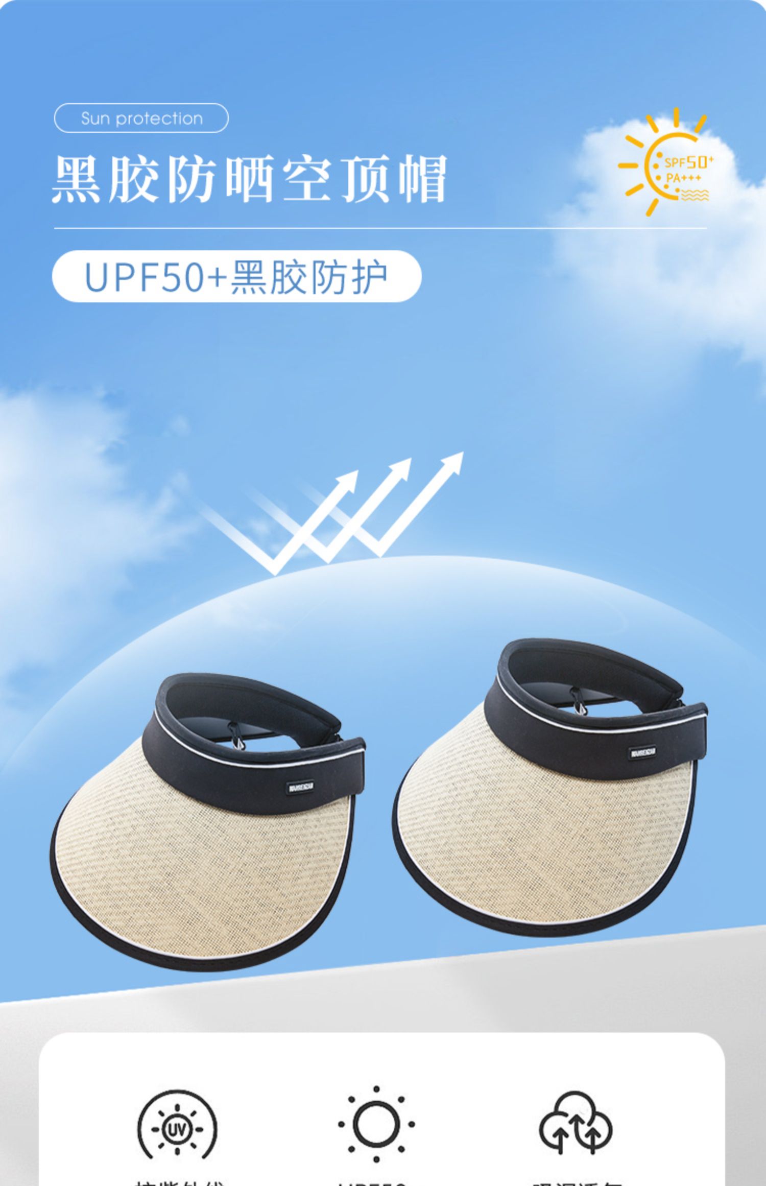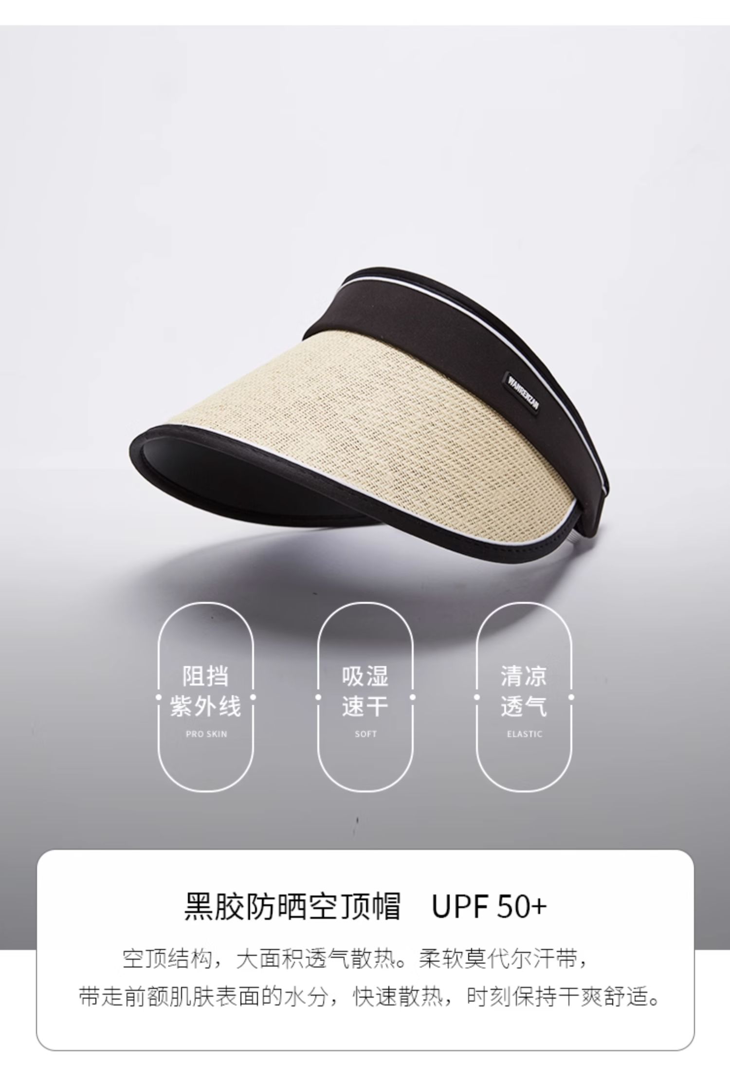 熙世界防紫外线遮阳防晒帽空顶帽子女夏季大檐空顶黑胶太阳帽草帽