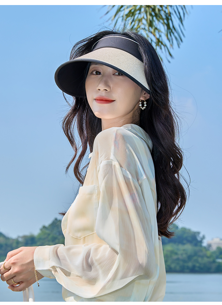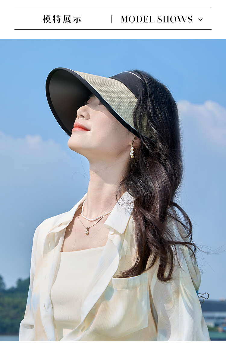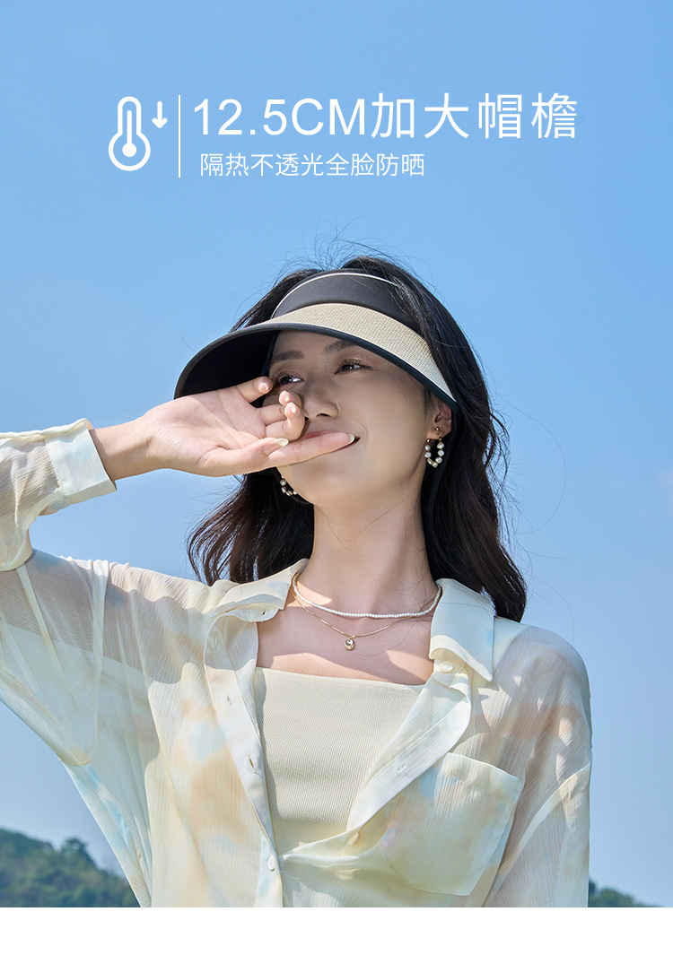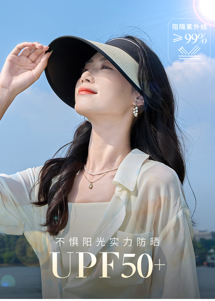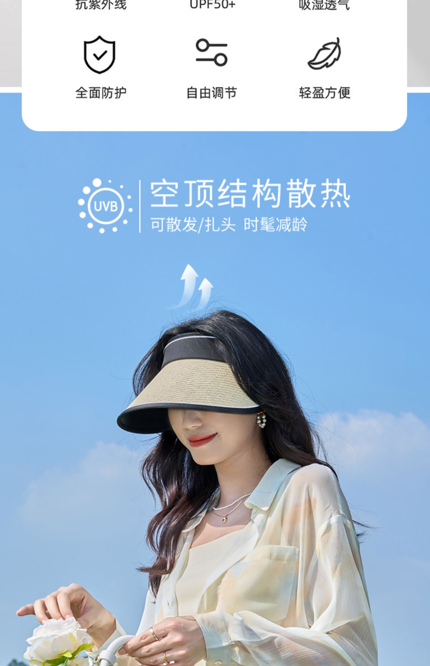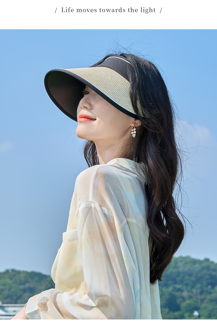 熙世界防紫外线遮阳防晒帽空顶帽子女夏季大檐空顶黑胶太阳帽草帽