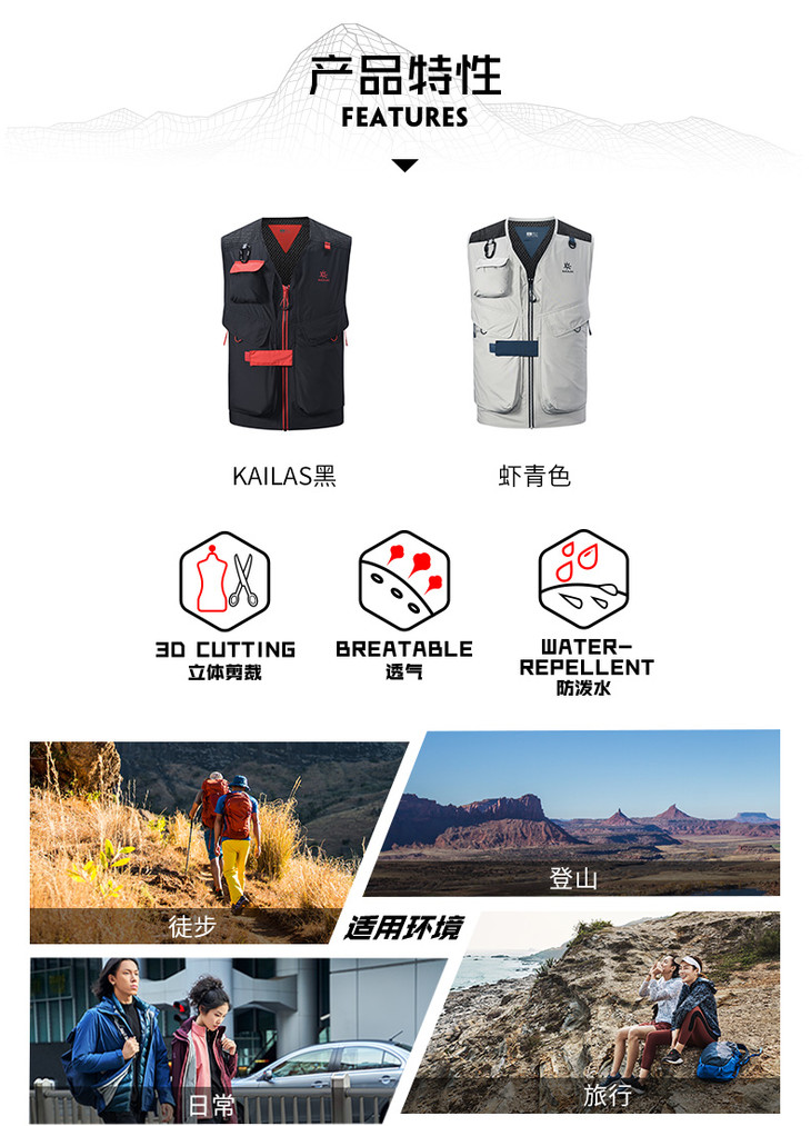 凯乐石KAILAS 男款徒步旅行马甲 KG206110