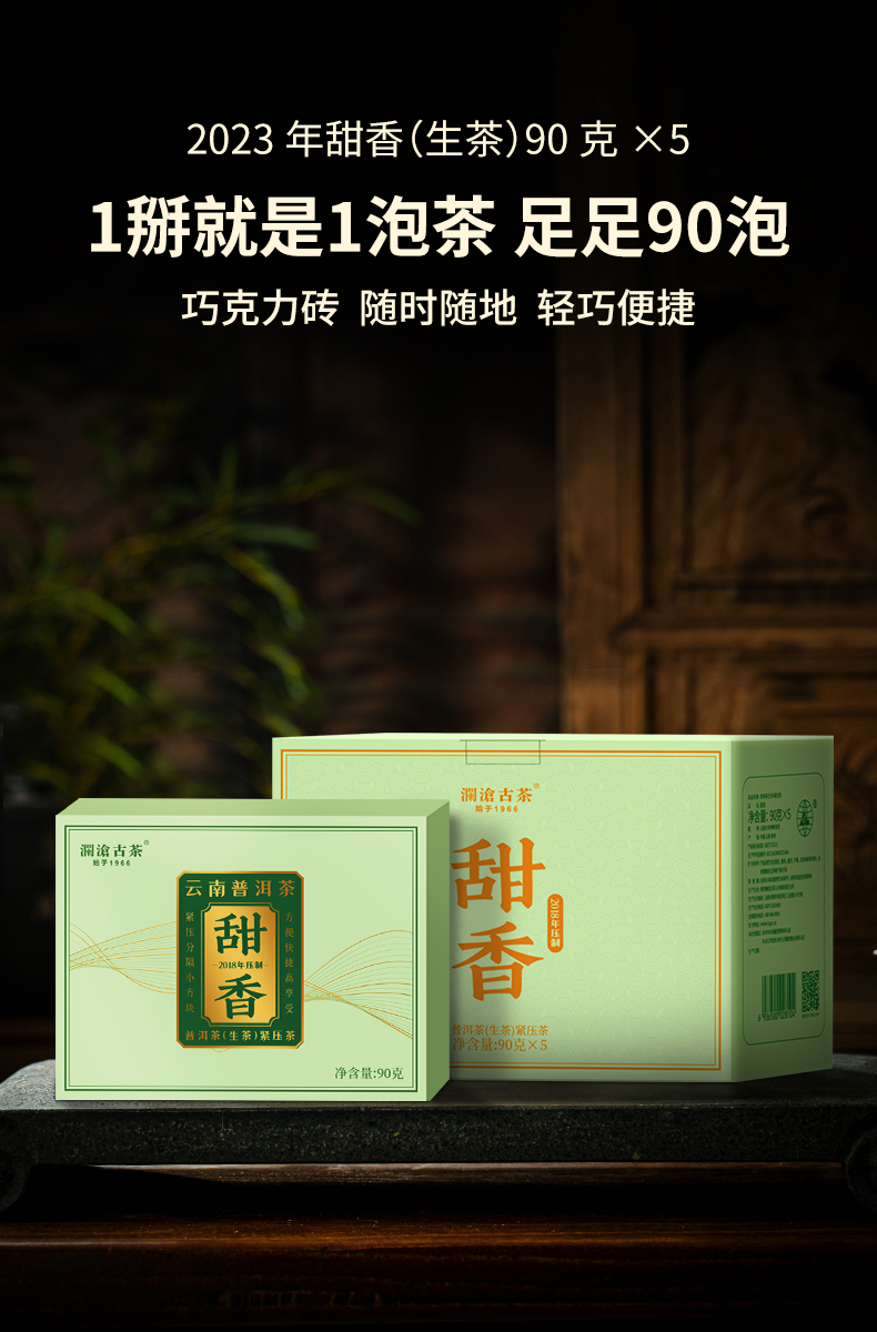 澜沧古茶2023年甜香云南普洱生茶巧克力砖90g(一盒拍5片)