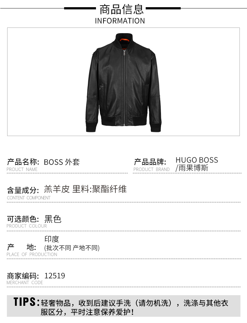【新品超惠秒】BOSS 男士新晋保暖防风防水户外休闲 羊羔皮皮衣夹克外套 12519