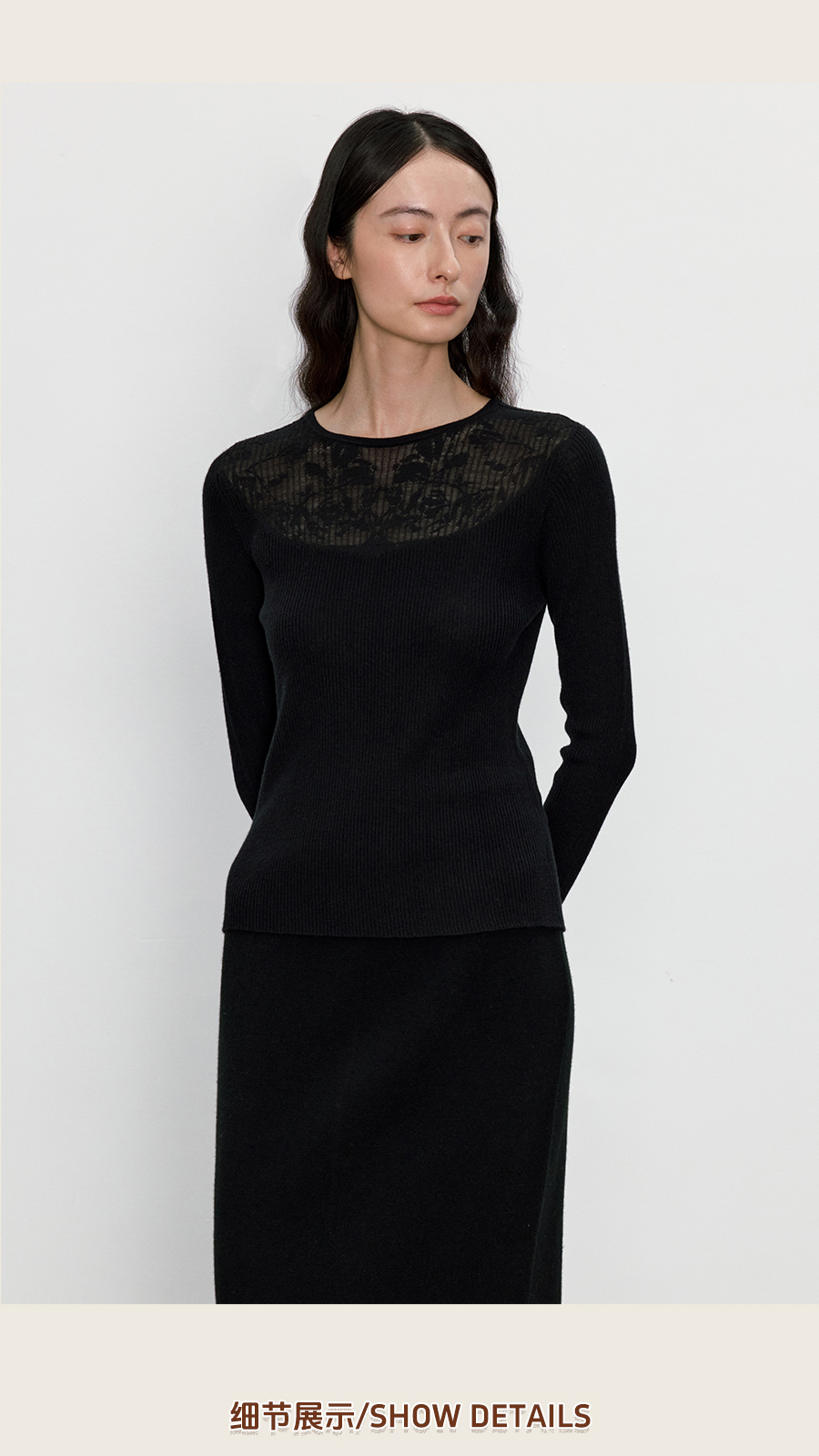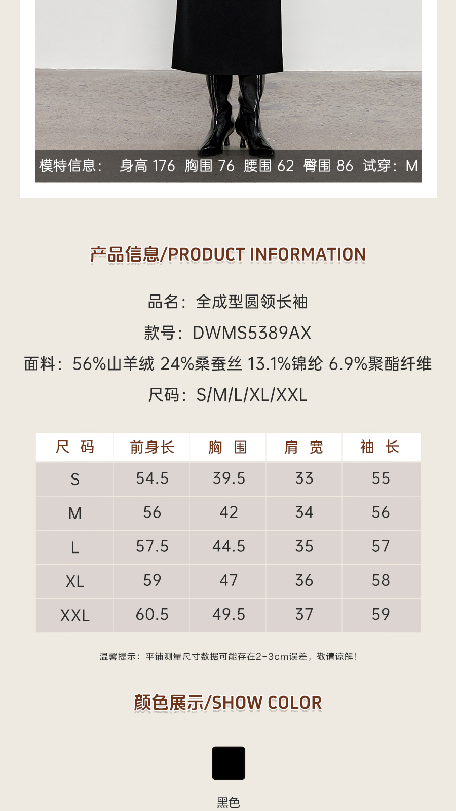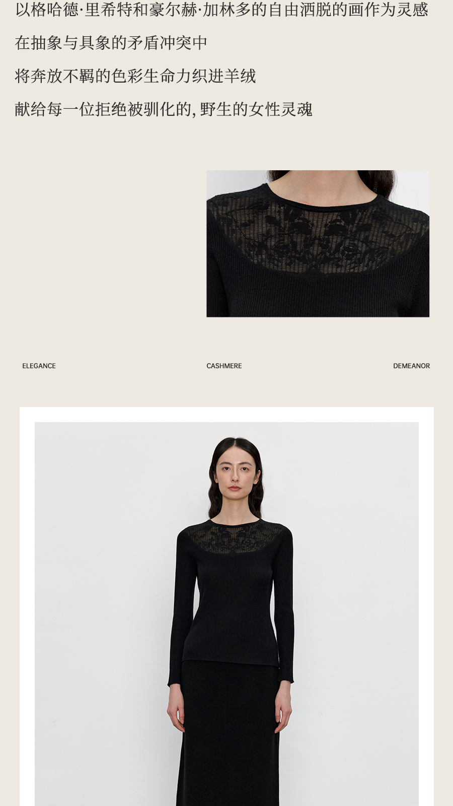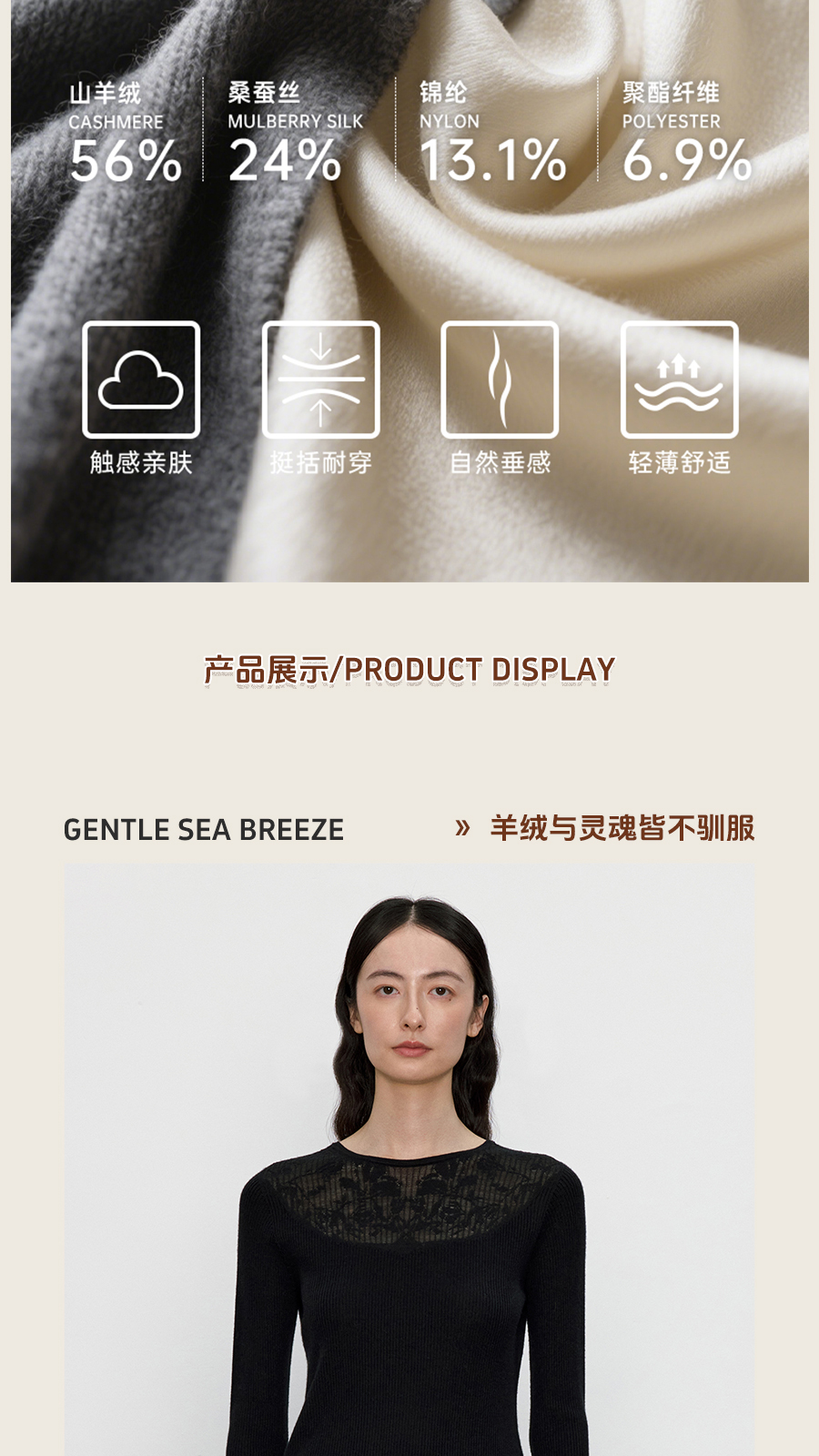 东黎 • 我不被驯化 暮色蔷薇 山羊绒桑蚕丝女士全成型圆领长袖 5389