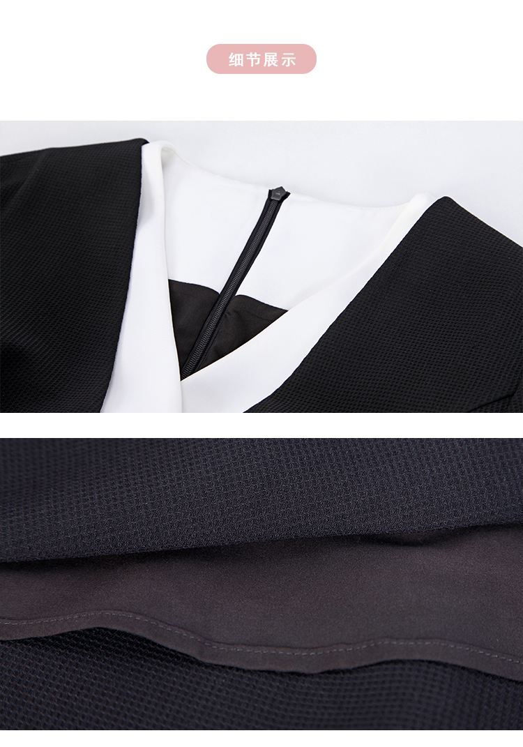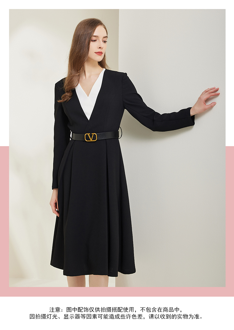 NG810斯尔丽瑟俪2023秋季新款时尚气质撞色拼接修身版连衣裙