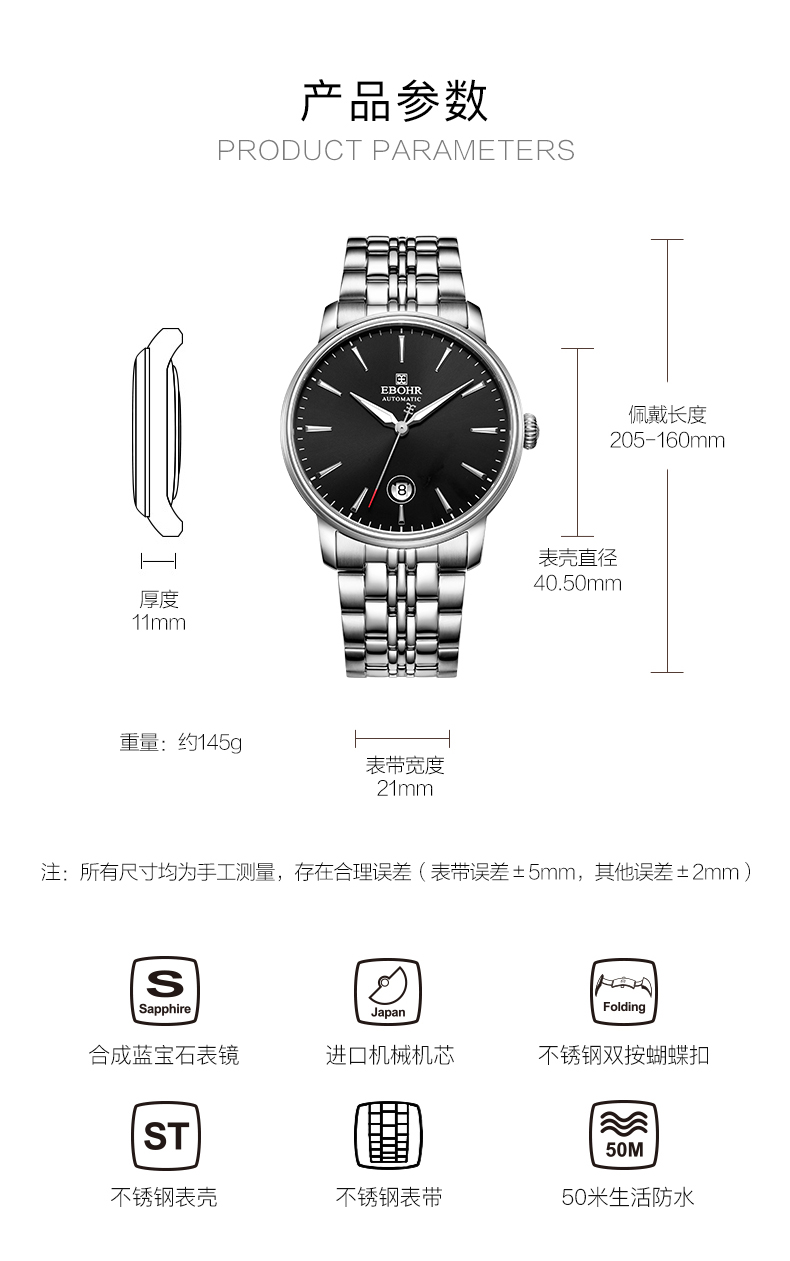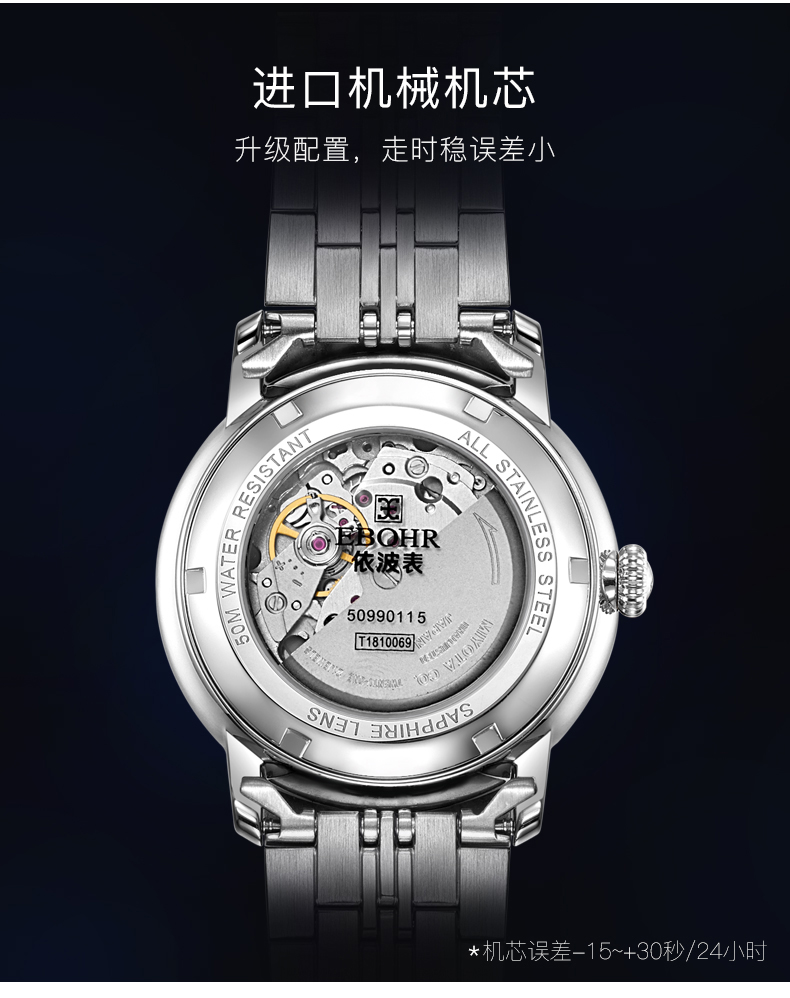依波表(EBOHR)大师系列官方正品男士自动机械防水腕表5099