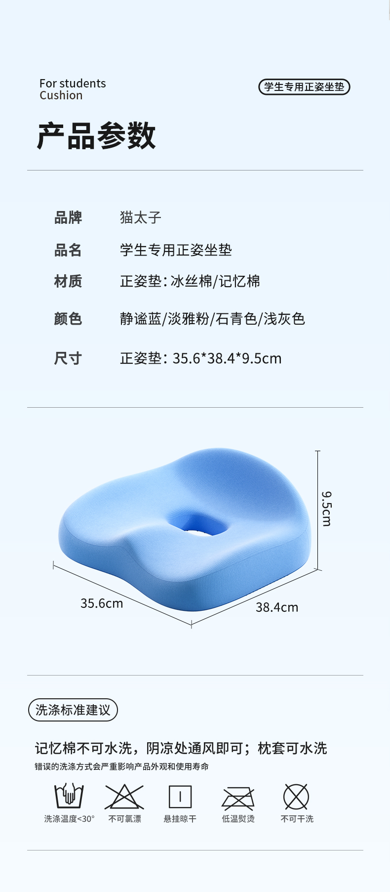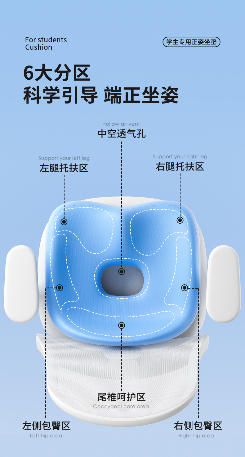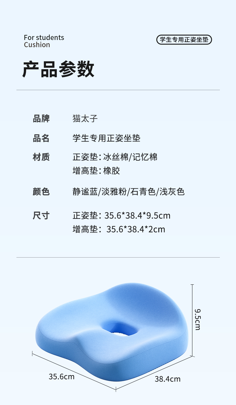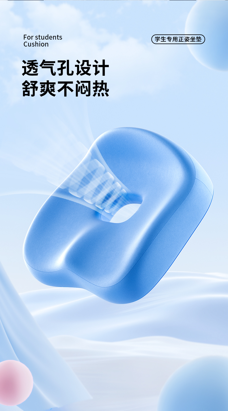 【云优选】猫太子学生坐垫办公室久坐神器儿童护腰椅子座垫美臀屁股垫
