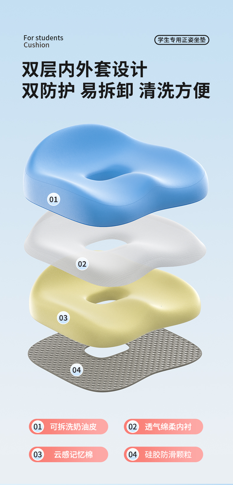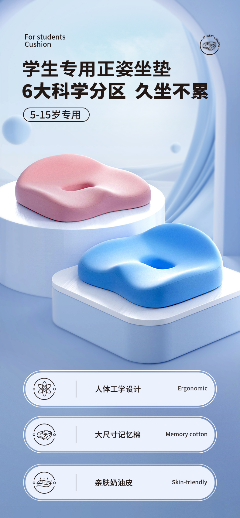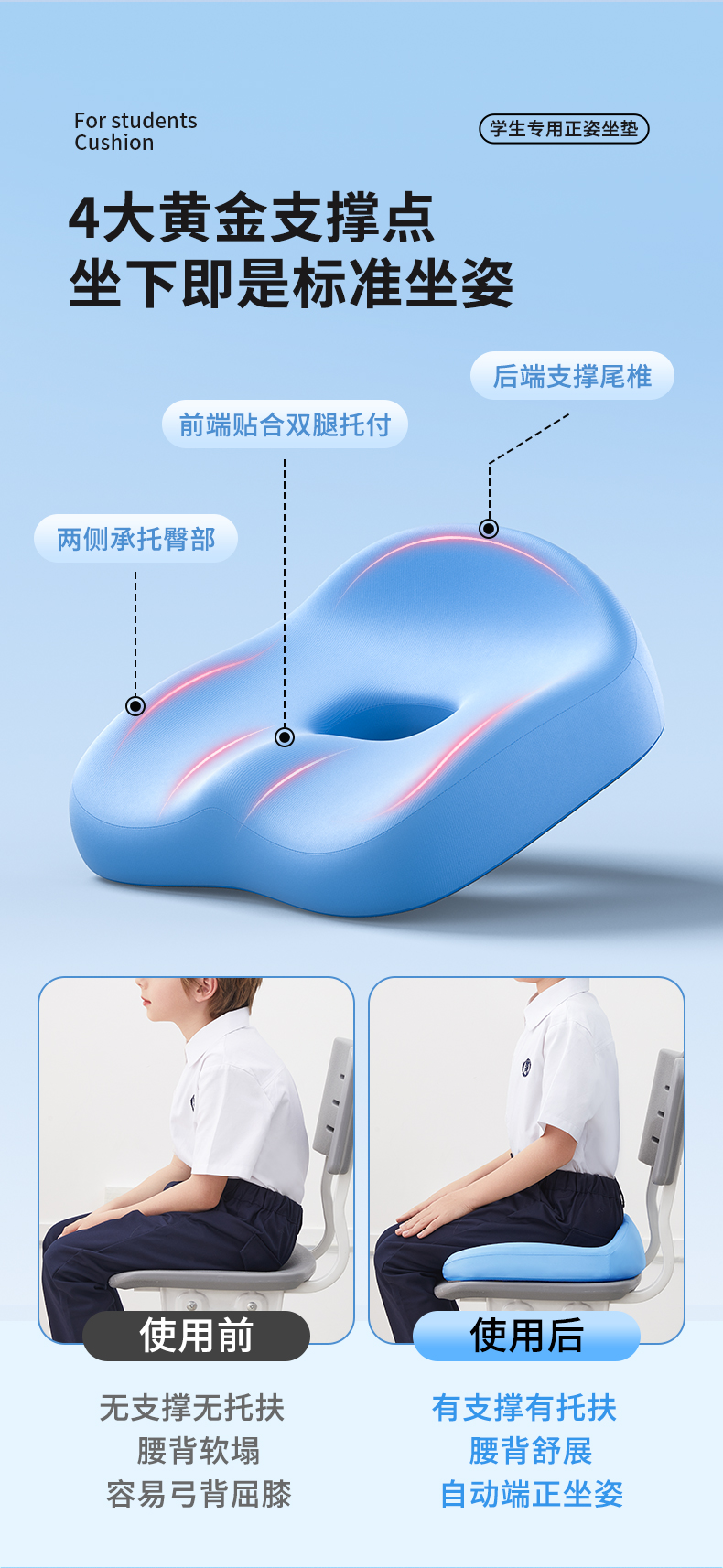 【云优选】猫太子学生坐垫办公室久坐神器儿童护腰椅子座垫美臀屁股垫
