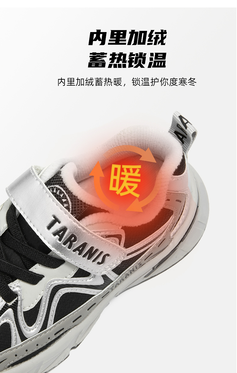 泰兰尼斯冬季2025新款小童加绒保暖运动鞋幼儿园时尚老爹鞋跑步鞋T01X5D7534