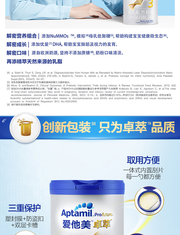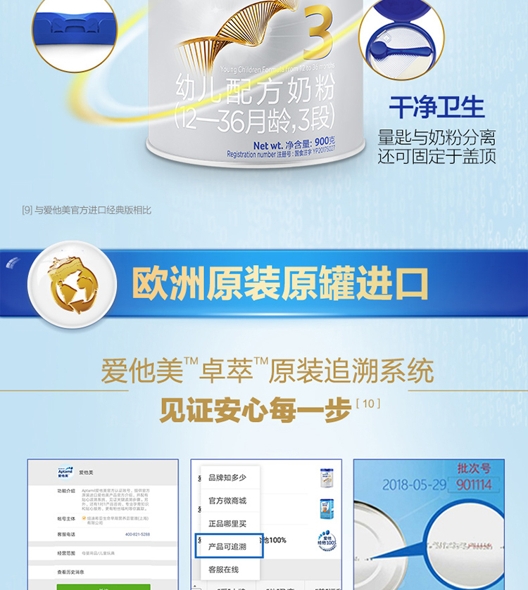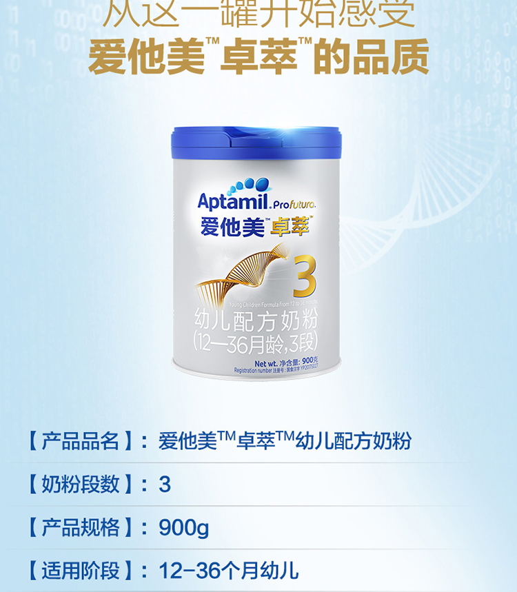 爱他美卓萃幼儿配方奶粉(12—36月龄,3段)900g